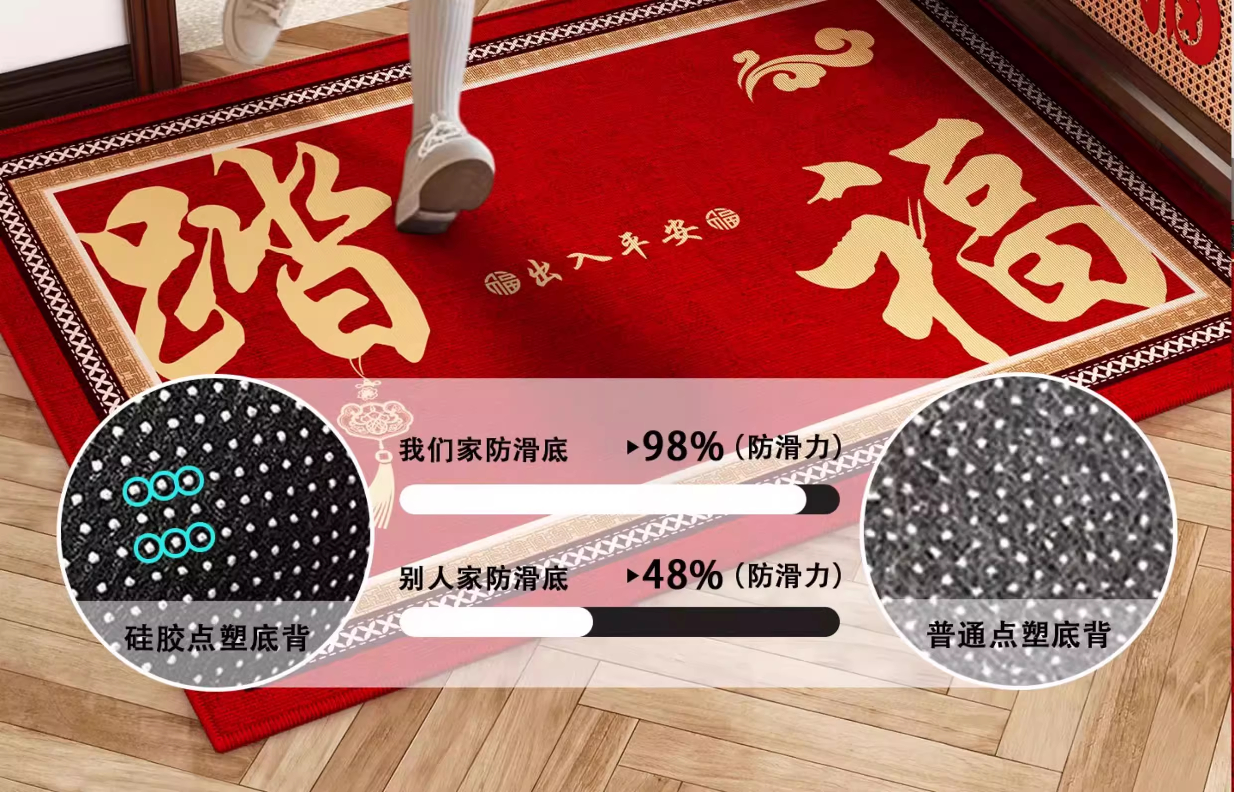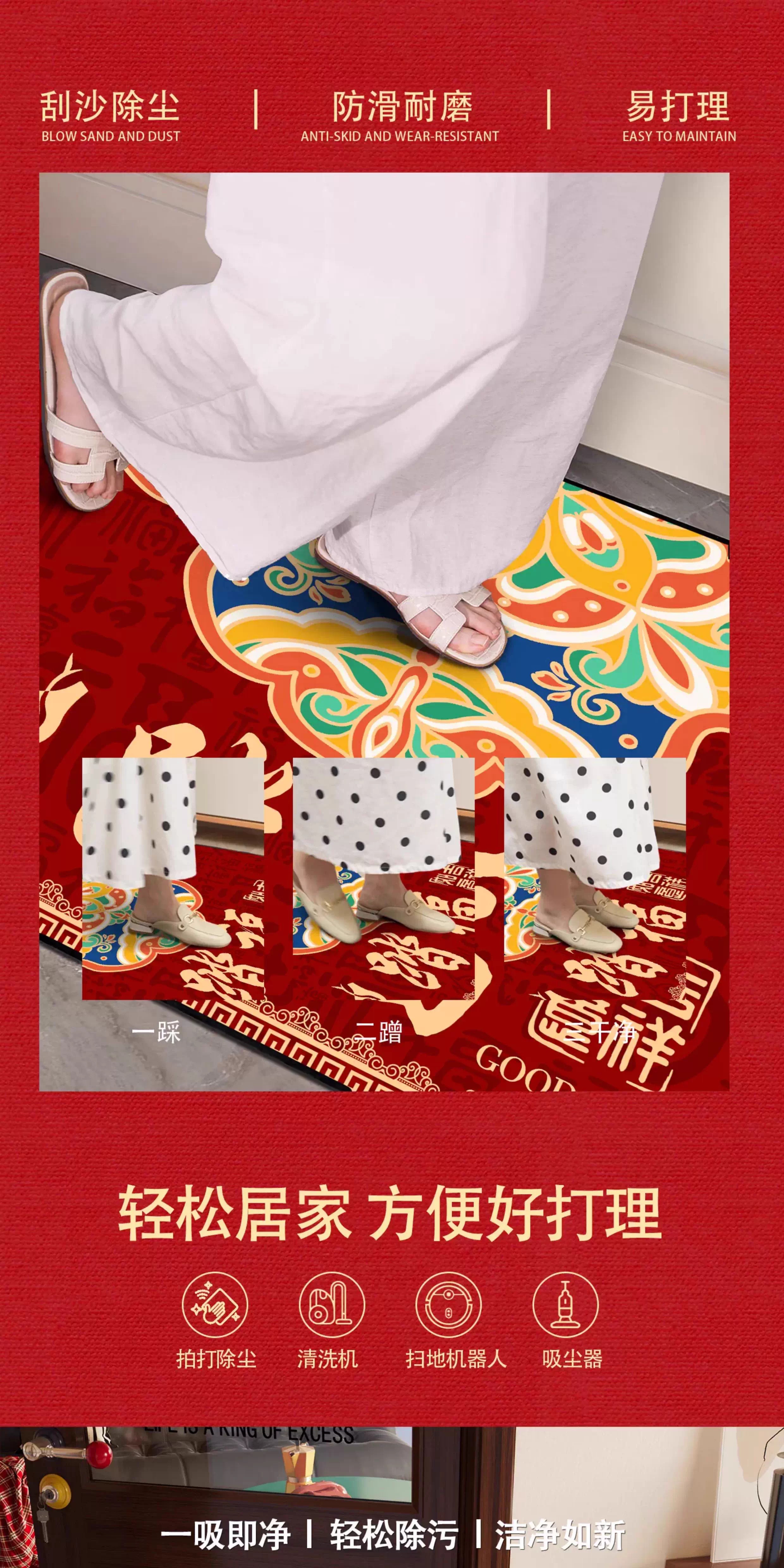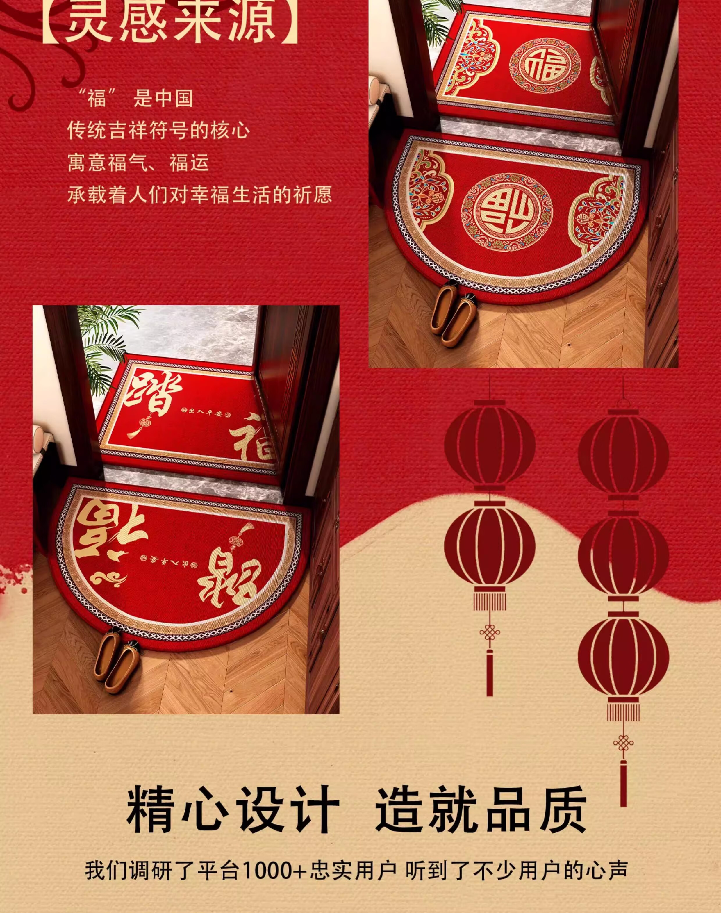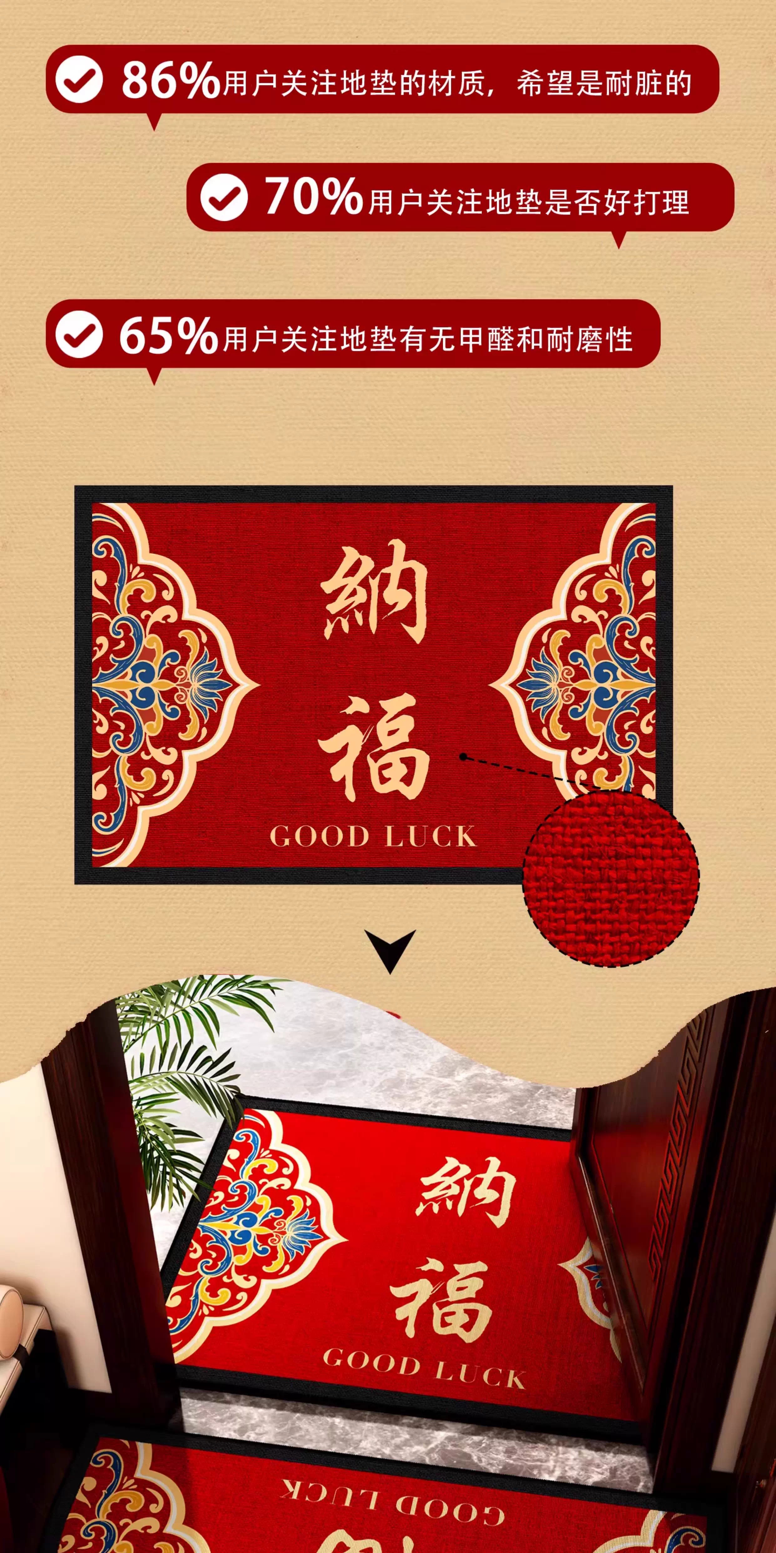 情更浓福禄平安新中式绿色入户门地垫半圆形进门喜庆乔迁门口脚垫地毯垫 G圆满F 40*60CM