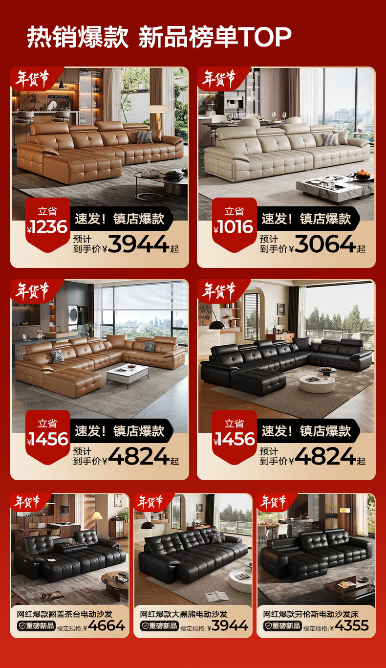 全友家居现代简约头层牛皮直排大象耳朵大户型真皮艺沙发客厅政府补贴