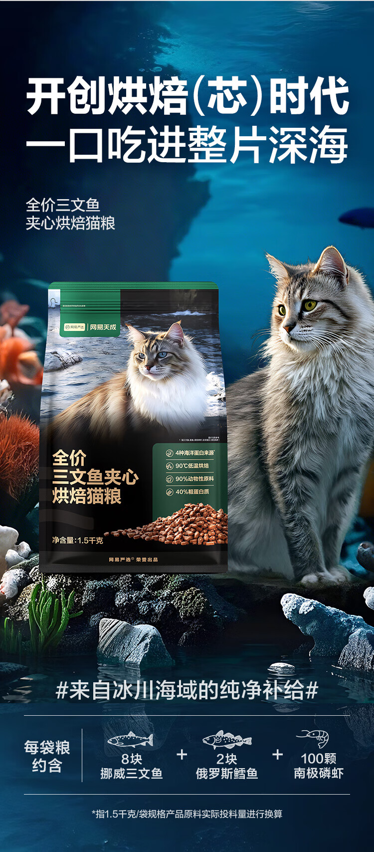 网易严选全价三文鱼烘焙猫粮 成幼猫主粮生骨肉冻干夹心亮毛顺滑50g*2试用