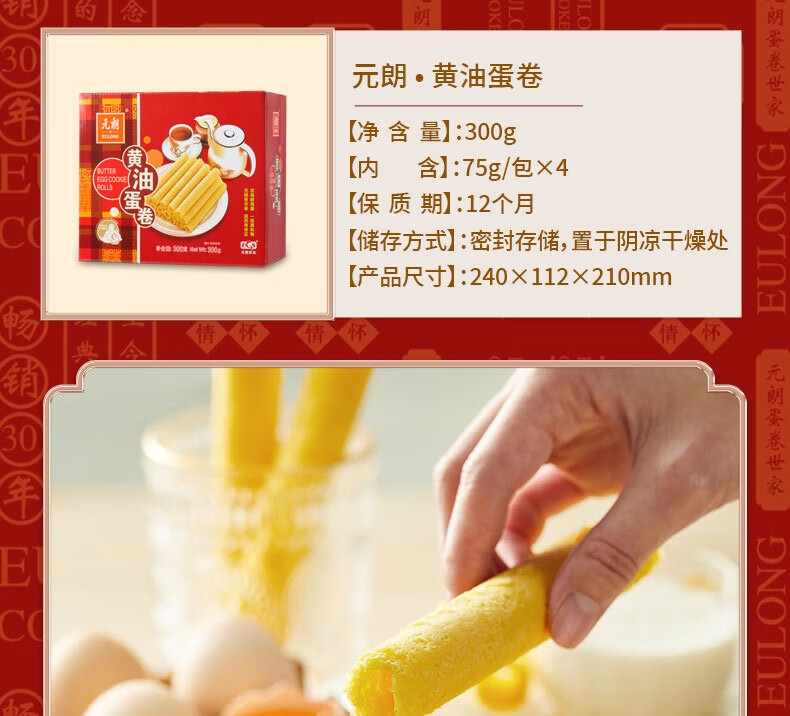 元朗黄油蛋卷300g饼干礼盒曲奇休闲特产零食品糕点 26年10月