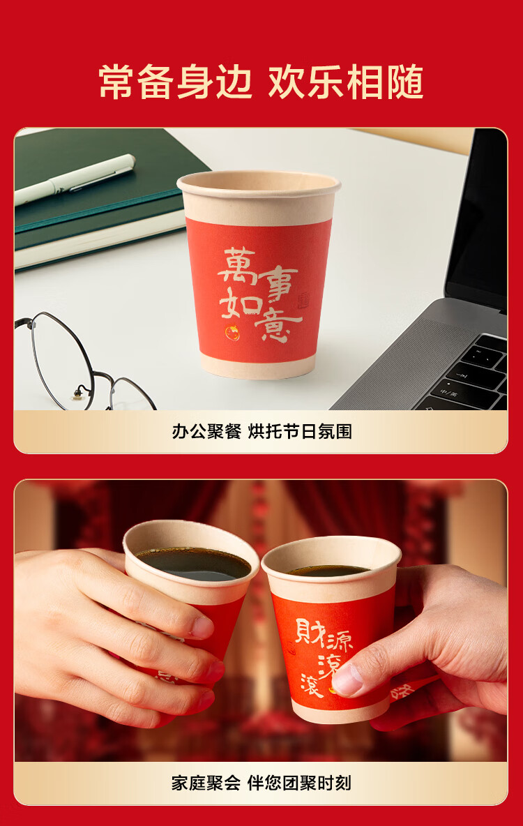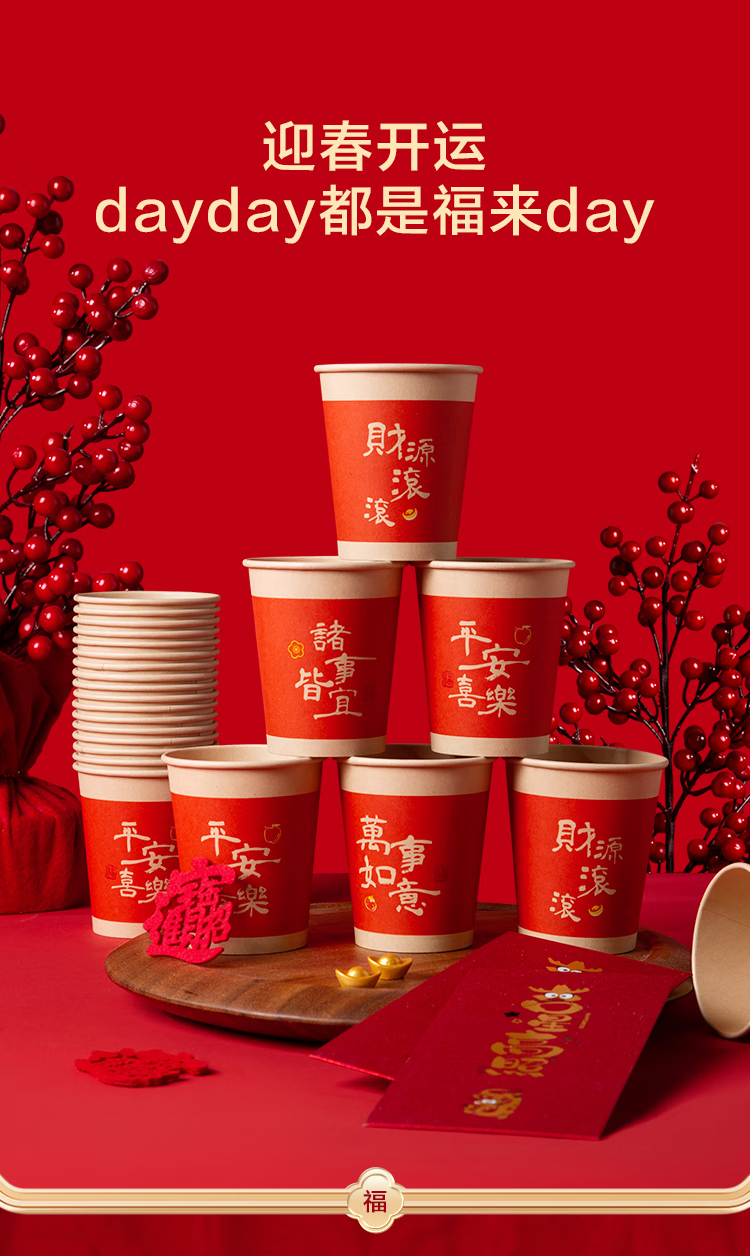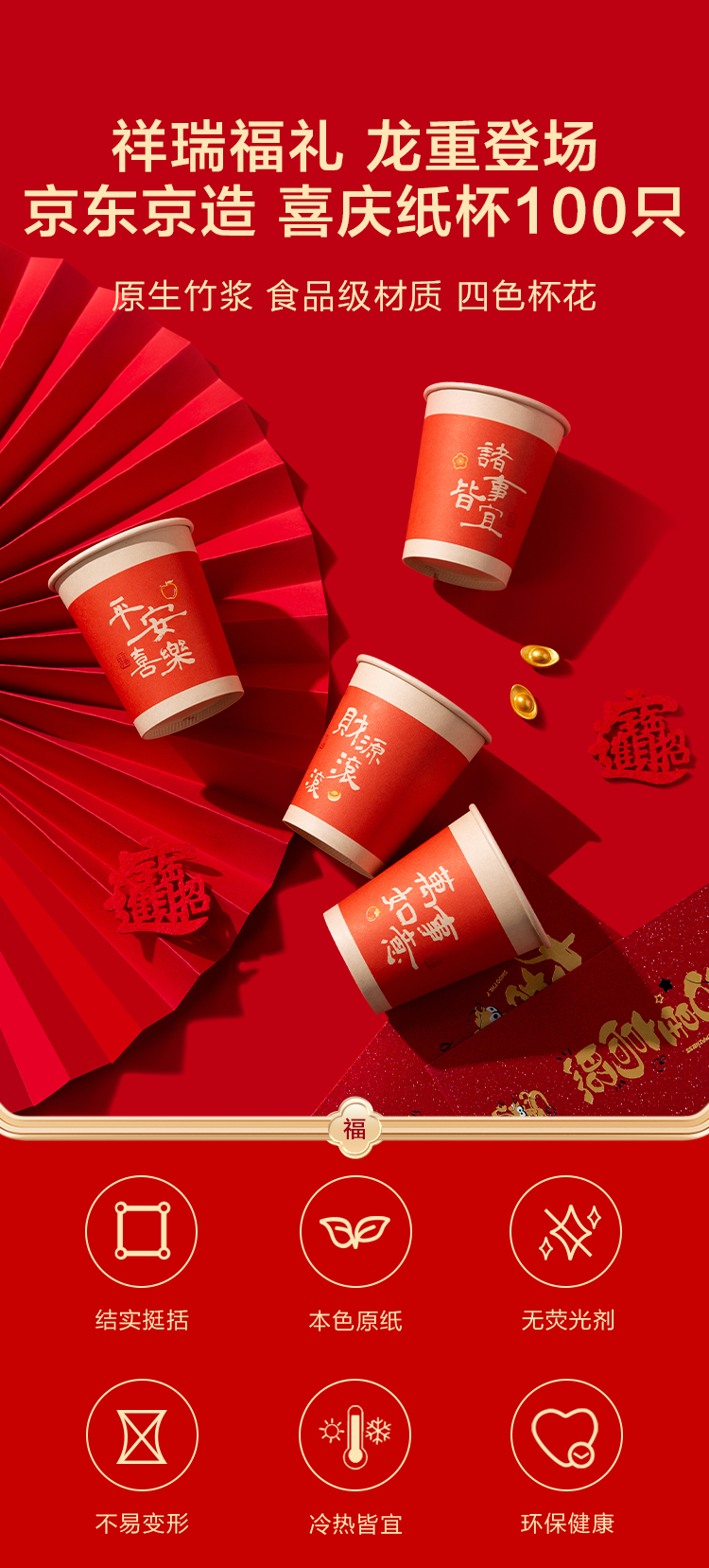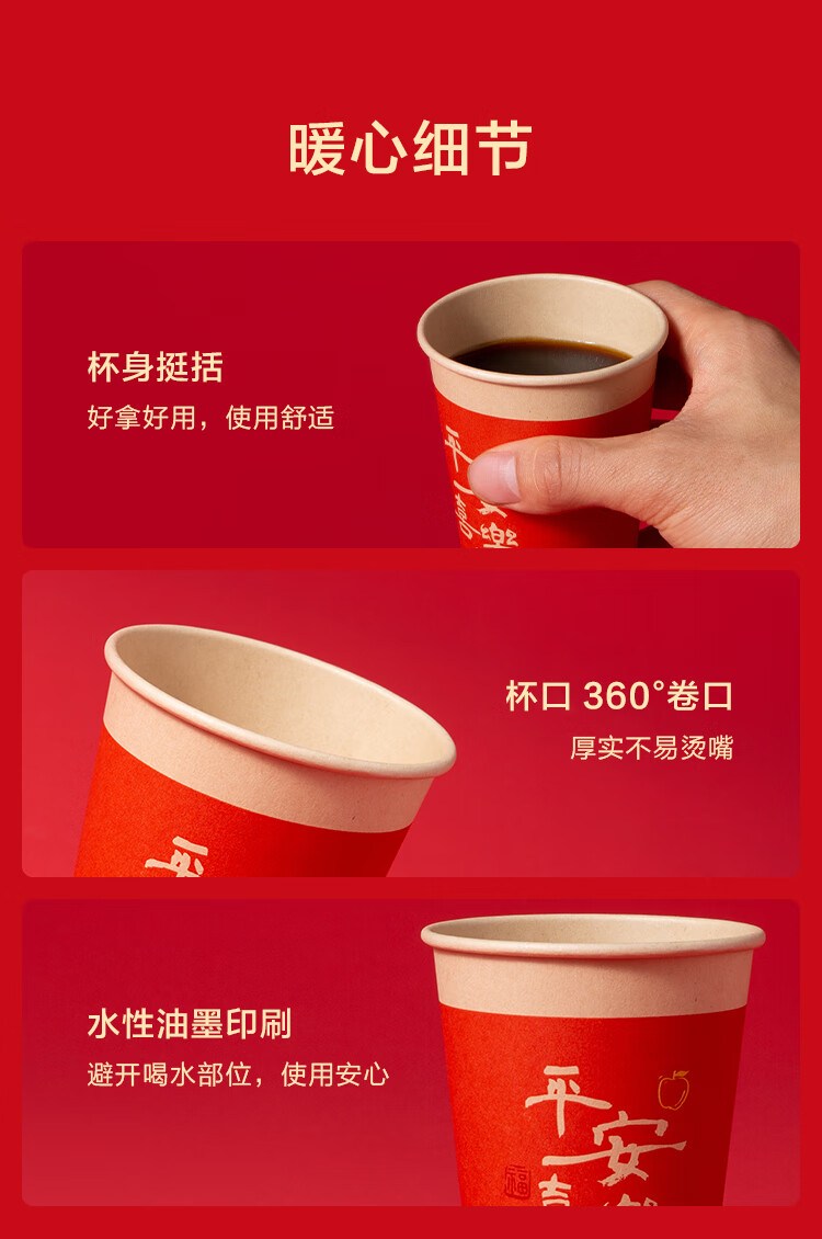 京东京造 纸杯一次性杯子 大号红色加厚食品级节日喜事水杯250ml【100只】