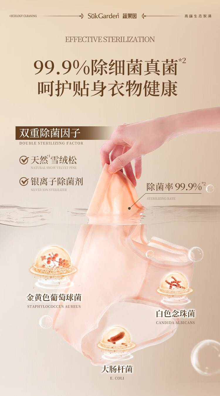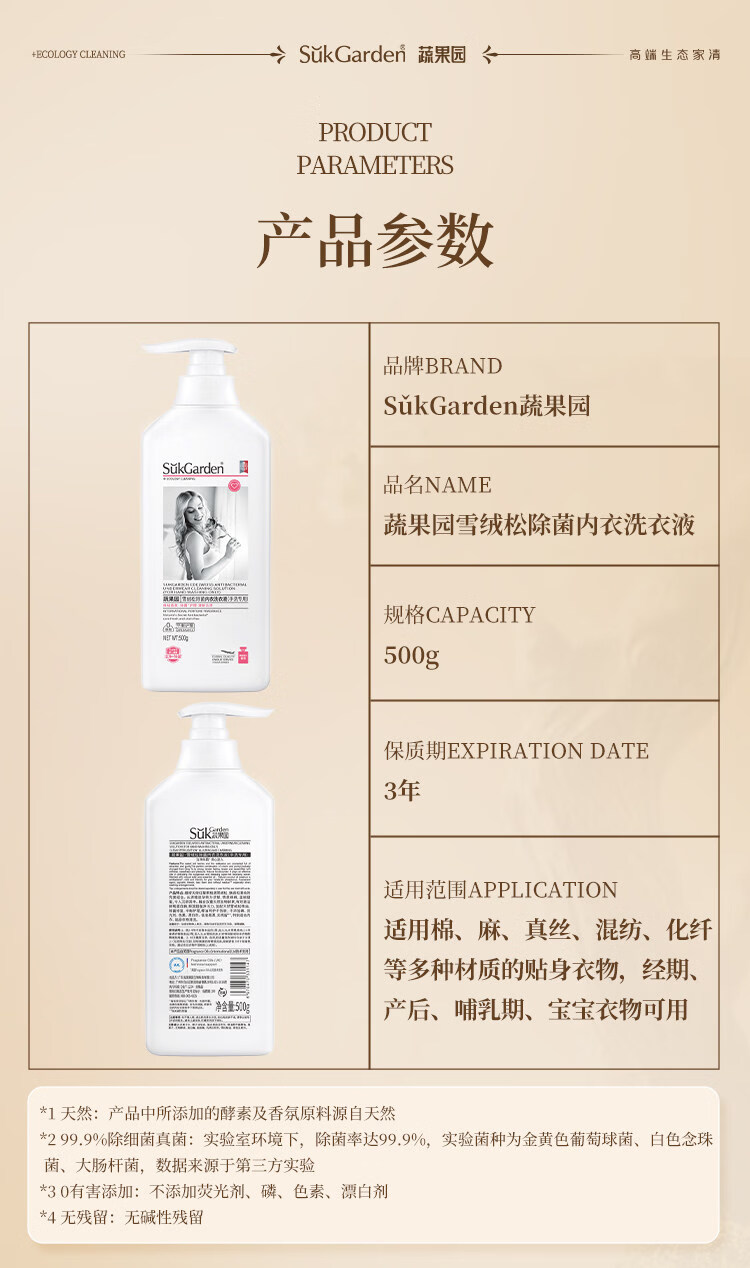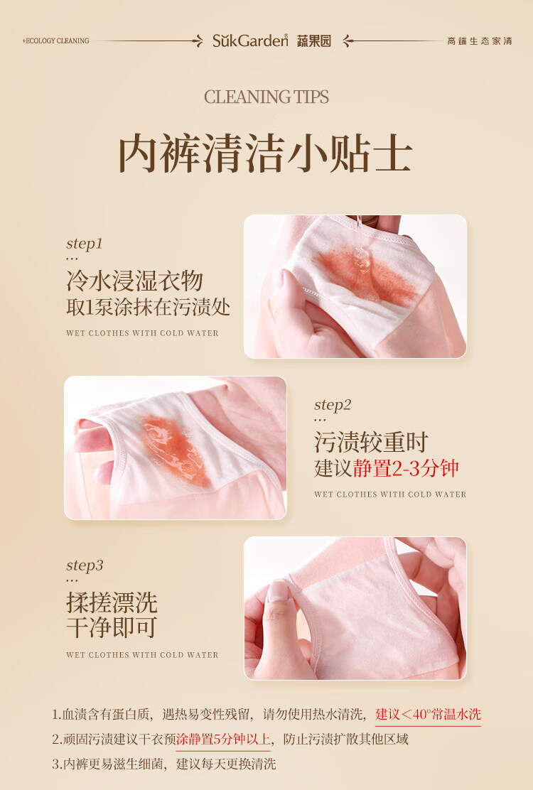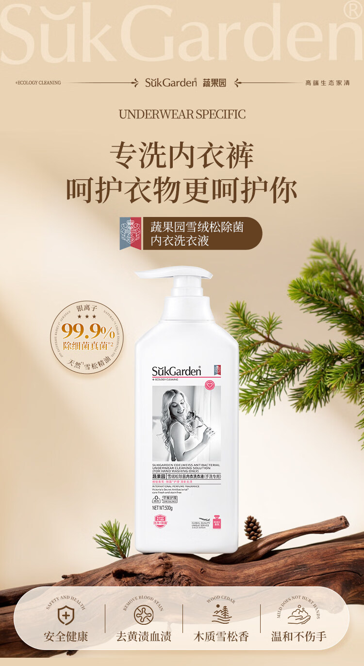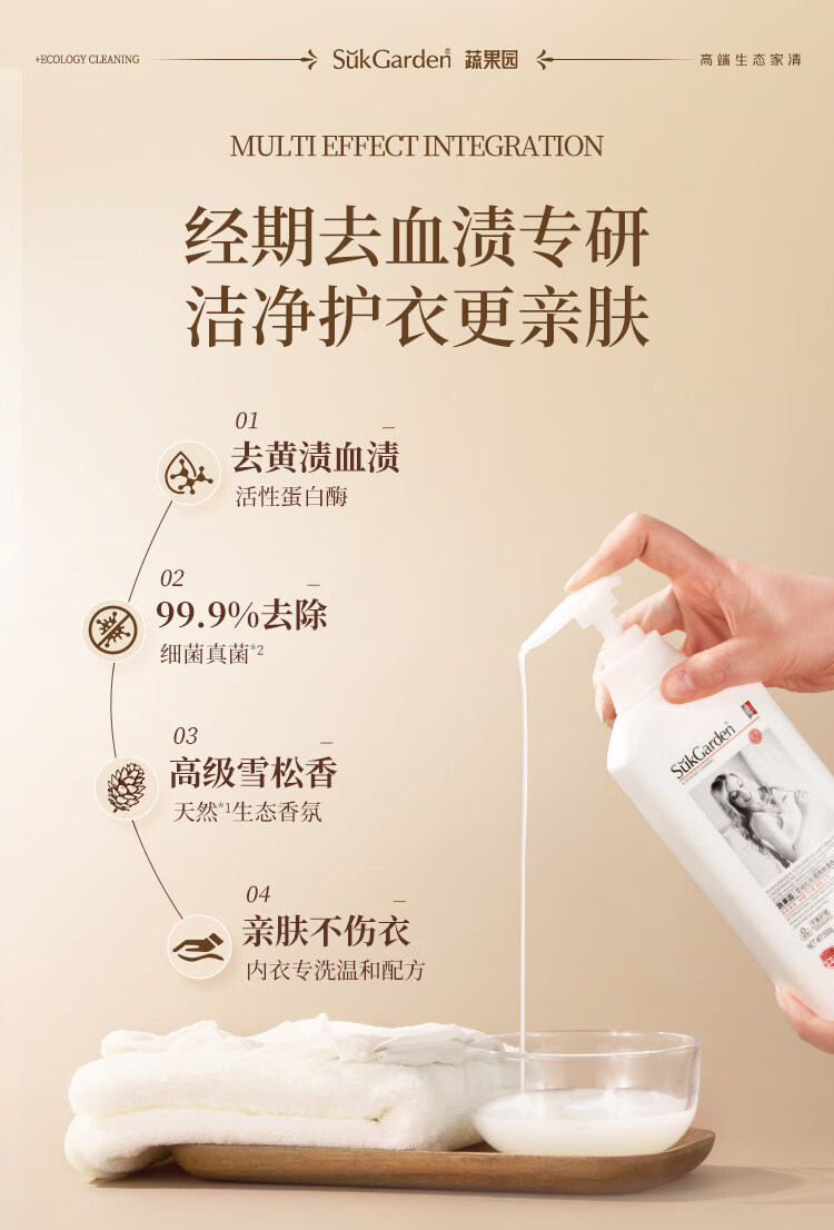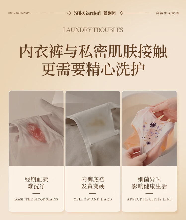蔬果园蛋白酶内衣洗衣液 手洗去血渍除菌抑菌99%内裤专用洗衣液清洗液 【活氧去渍】蛋白酶内衣洗500g