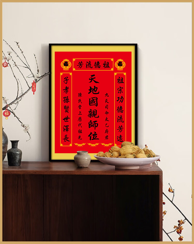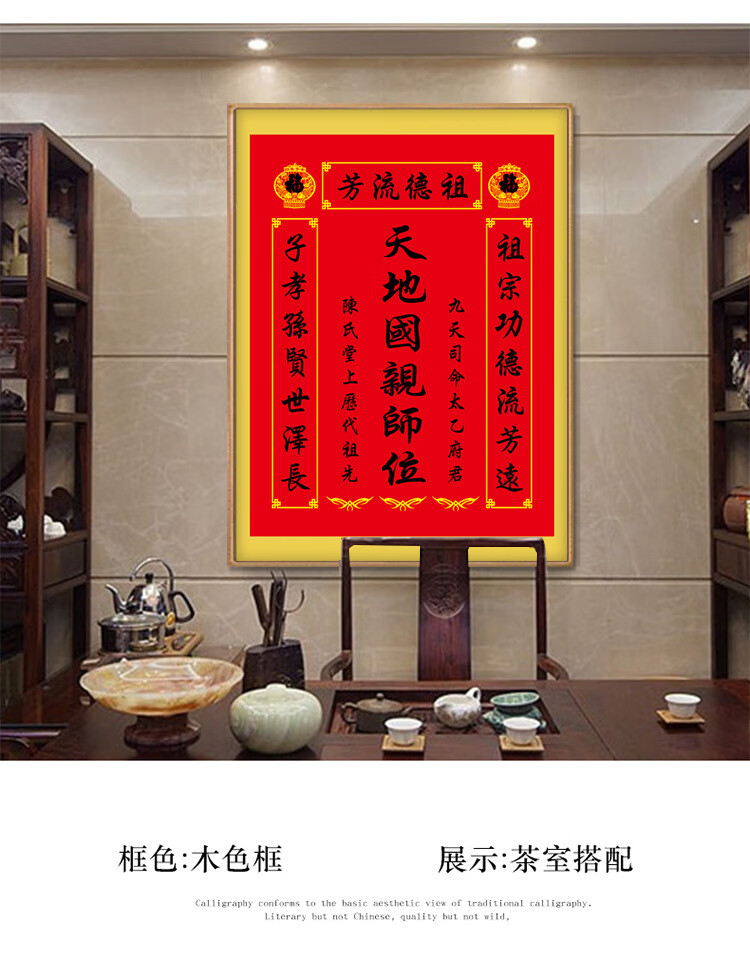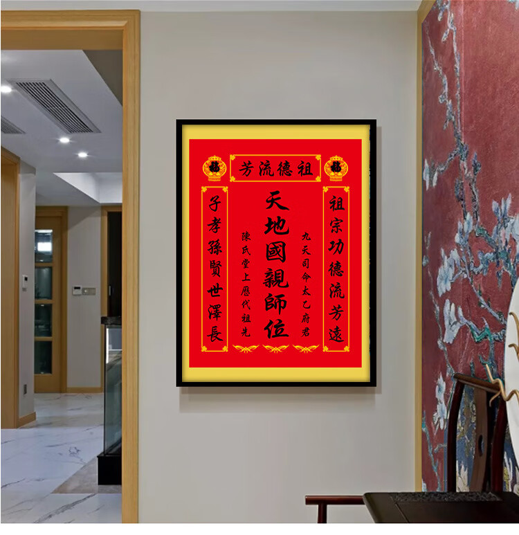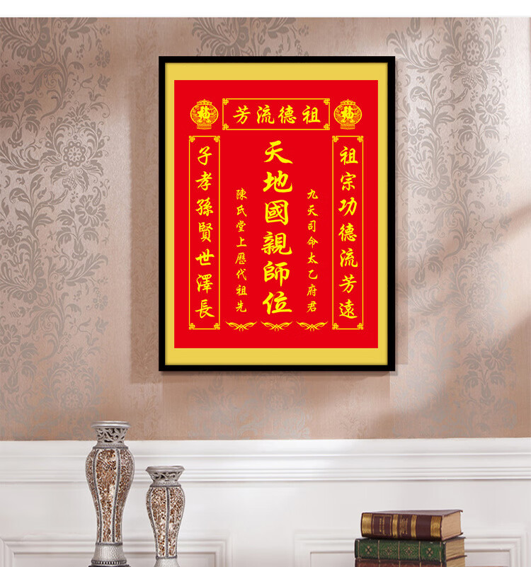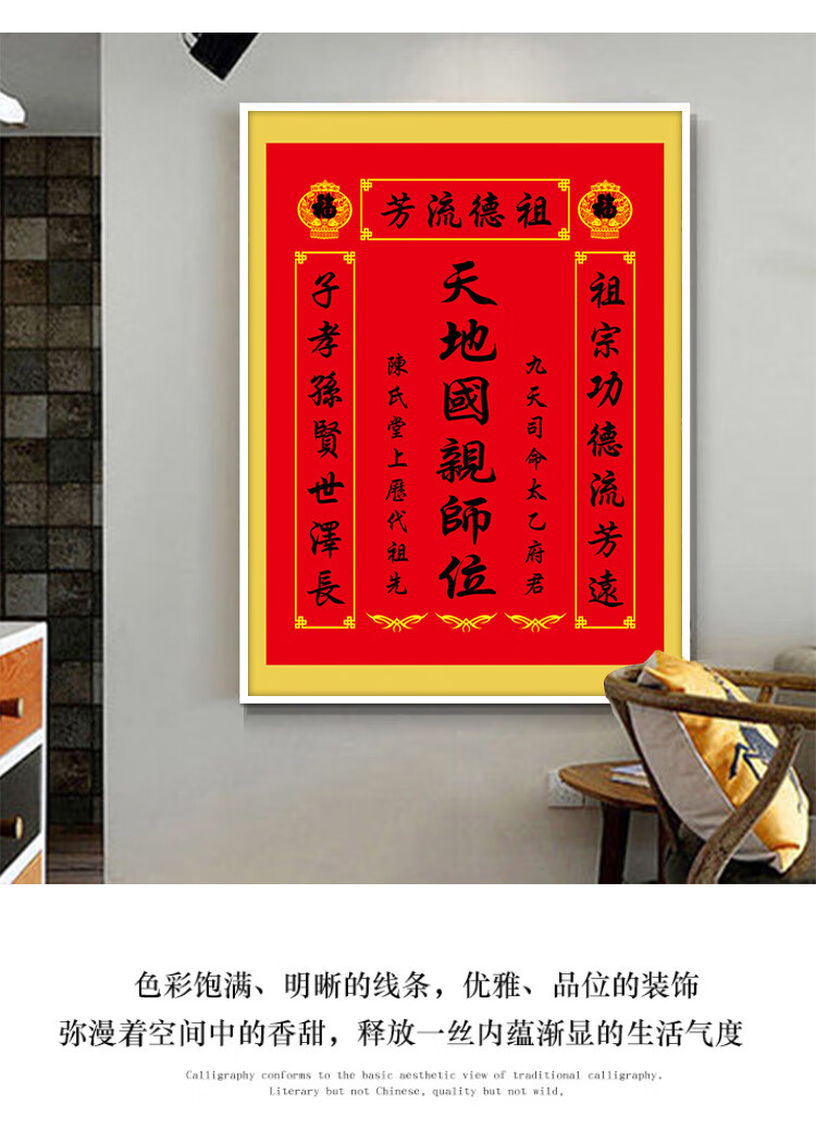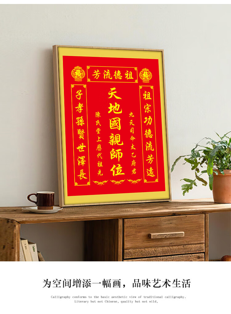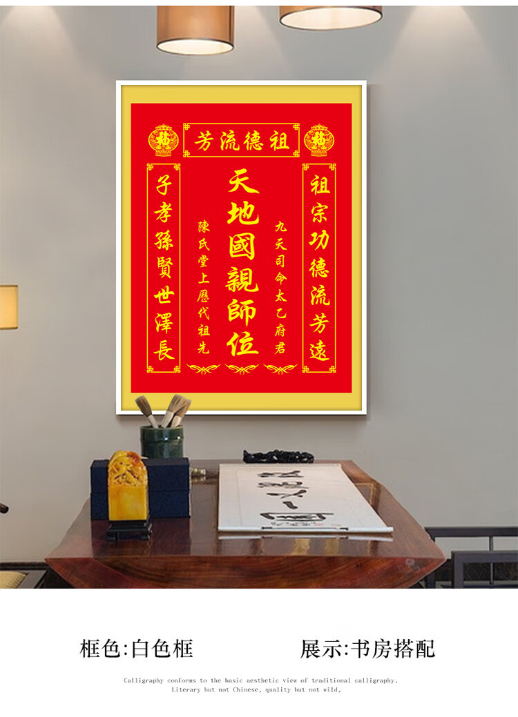 格绿美天地国亲师位天地君亲师位挂画中堂画香火祖宗牌位装饰画字画 LG441天地君亲师2(改姓氏) 含框尺寸30X40厘米