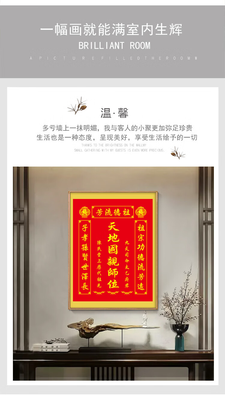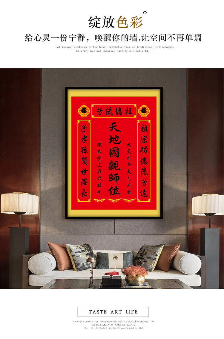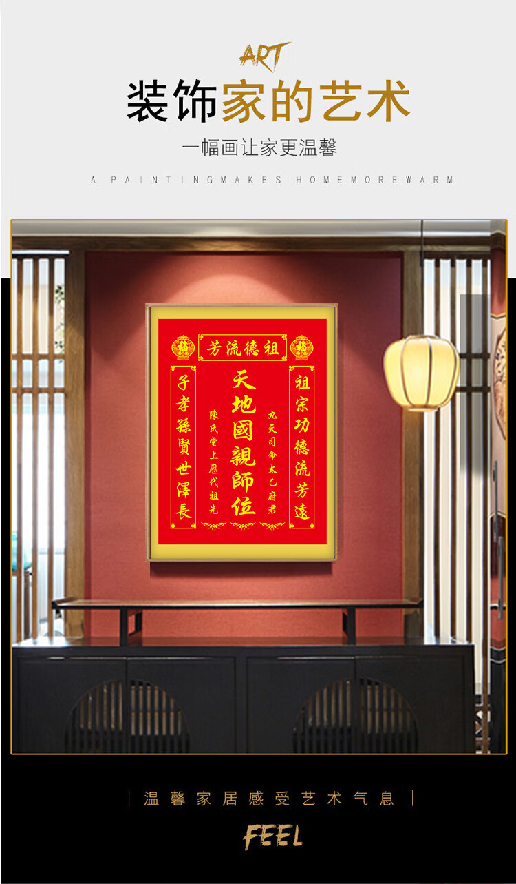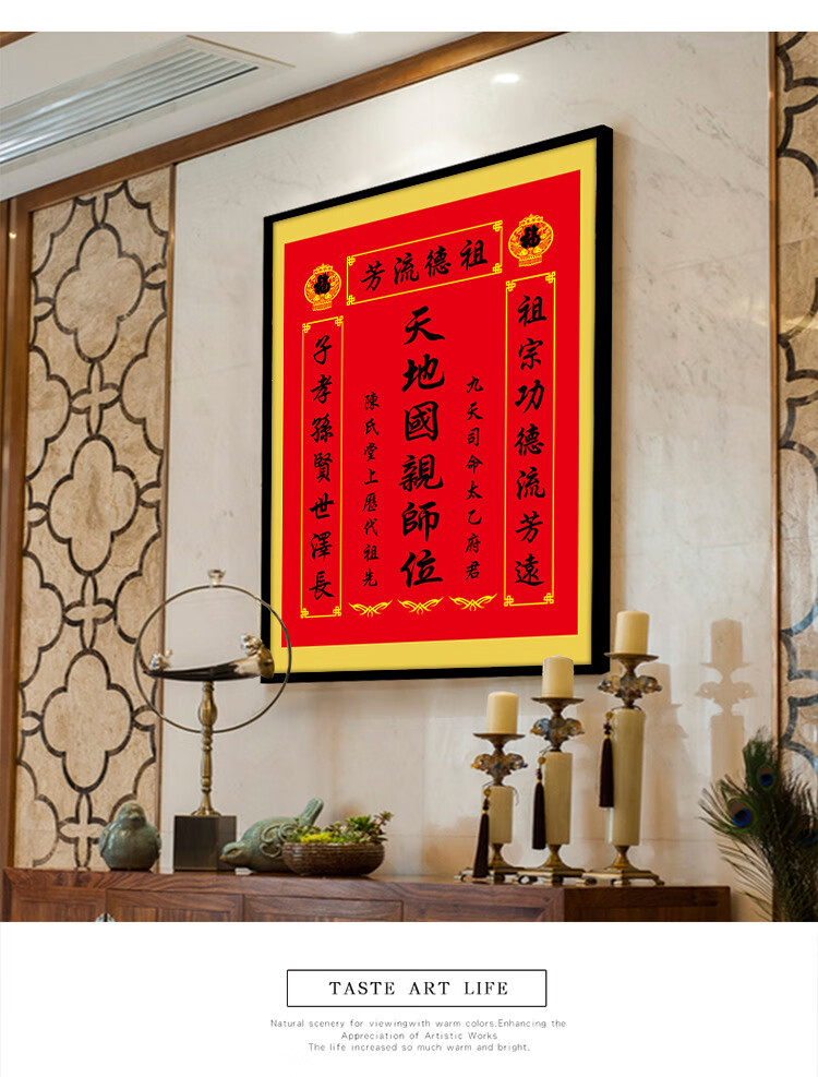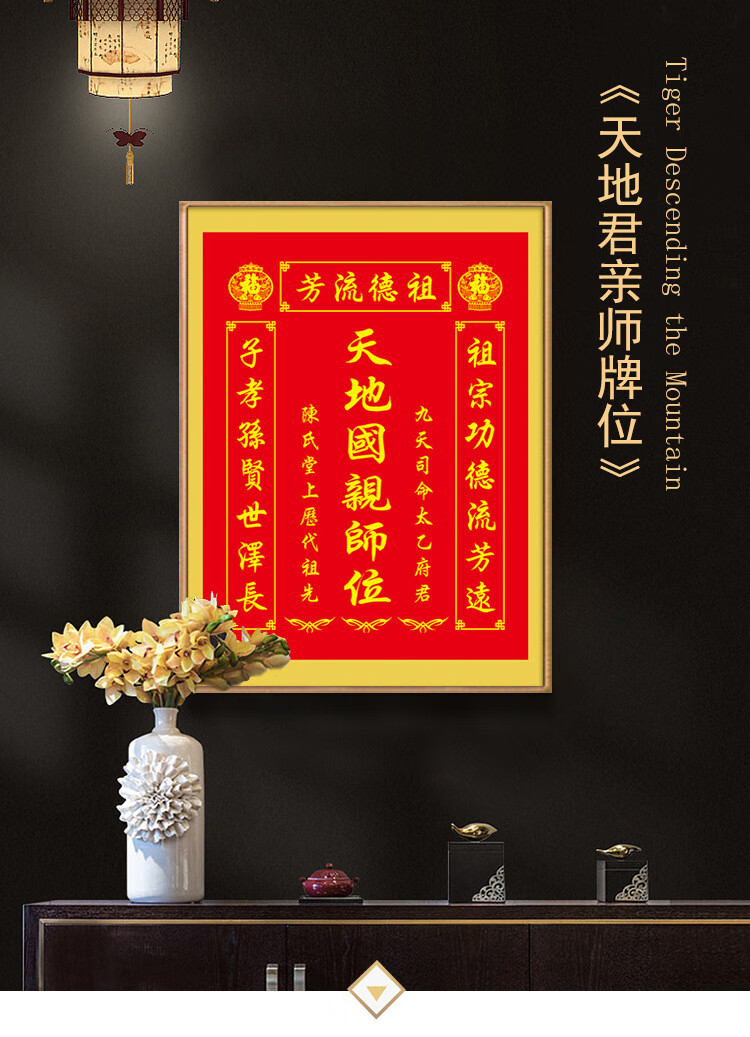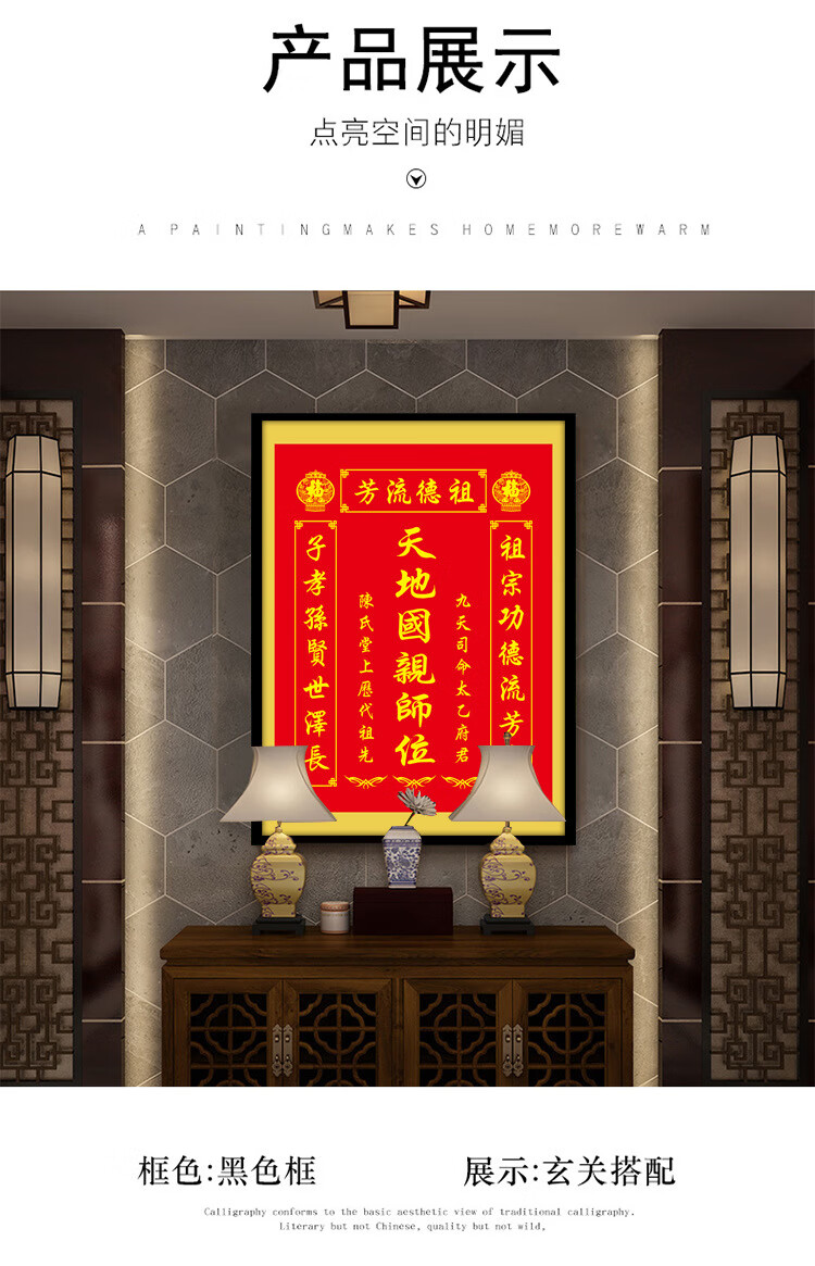 格绿美天地国亲师位天地君亲师位挂画中堂画香火祖宗牌位装饰画字画 LG441天地君亲师2(改姓氏) 含框尺寸30X40厘米
