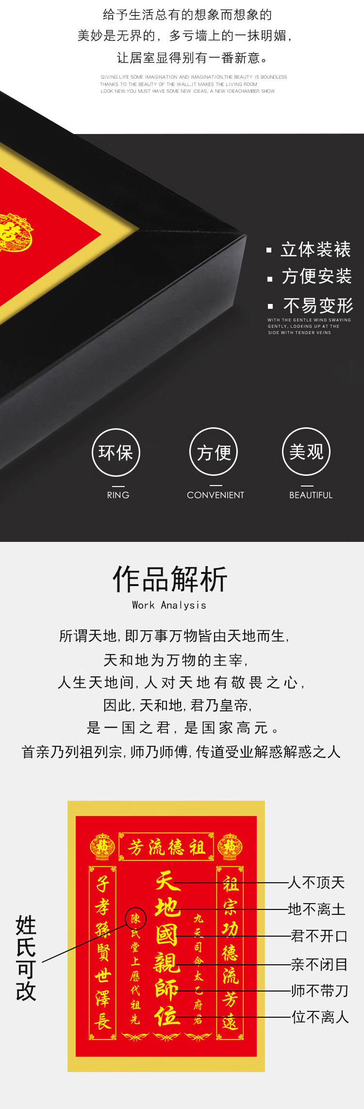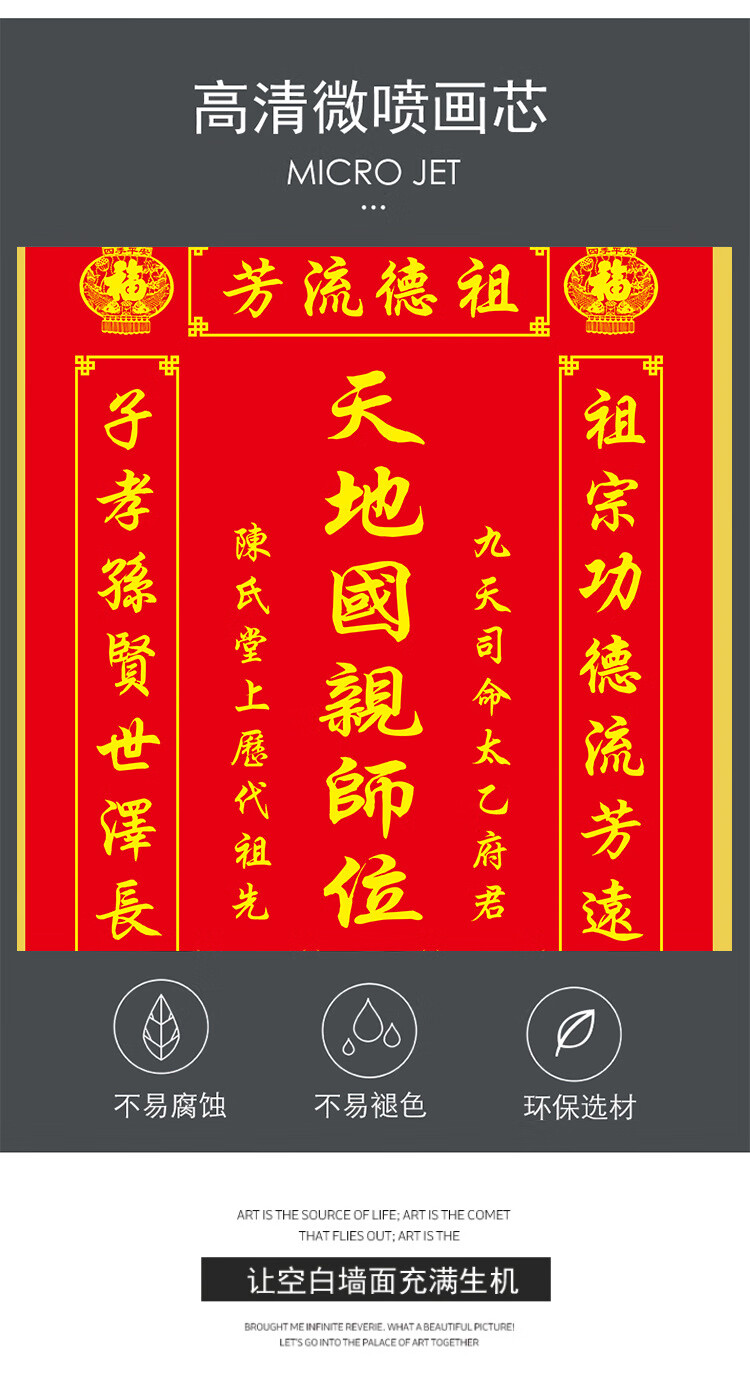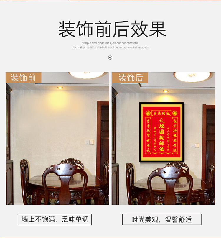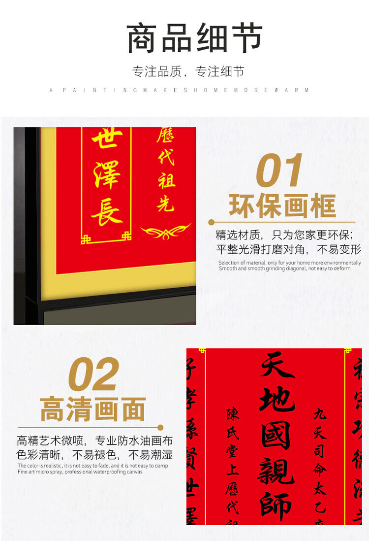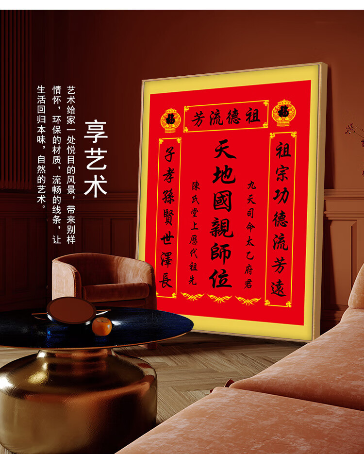 格绿美天地国亲师位天地君亲师位挂画中堂画香火祖宗牌位装饰画字画 LG441天地君亲师2(改姓氏) 含框尺寸30X40厘米