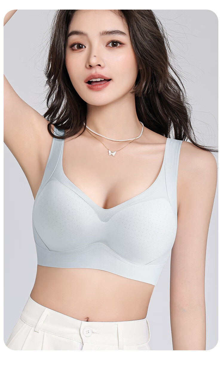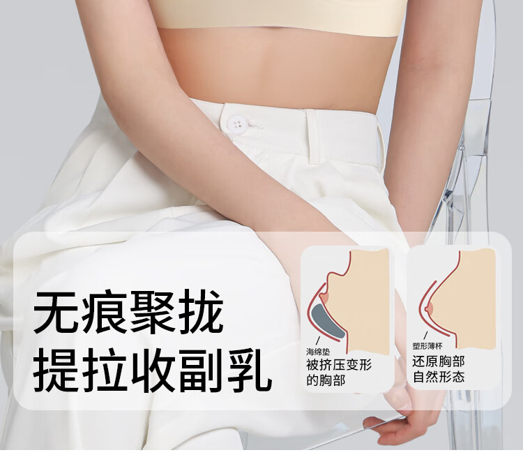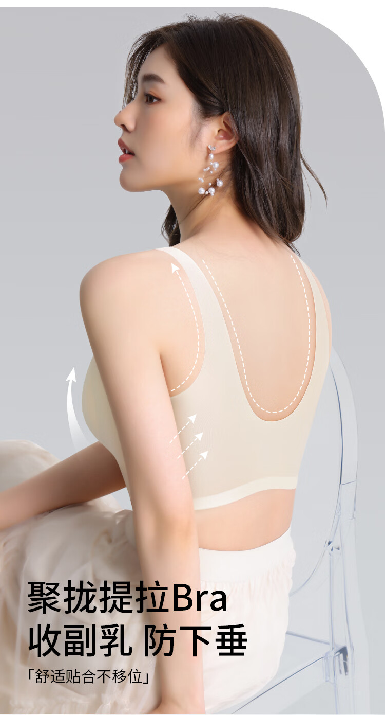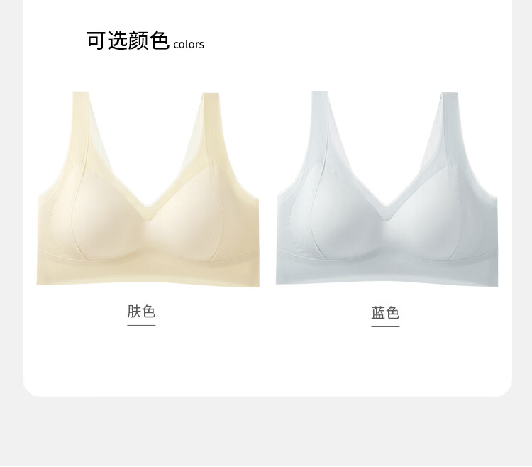 六月玫瑰【反重力提拉】2件装夏季无痕裸感聚拢内衣女侧收副乳美背文胸罩 混色 (肤色+蓝色)) XL