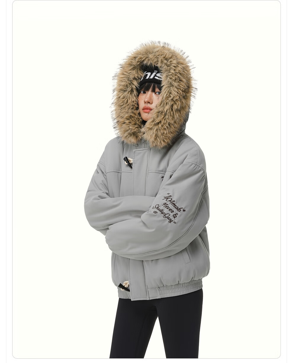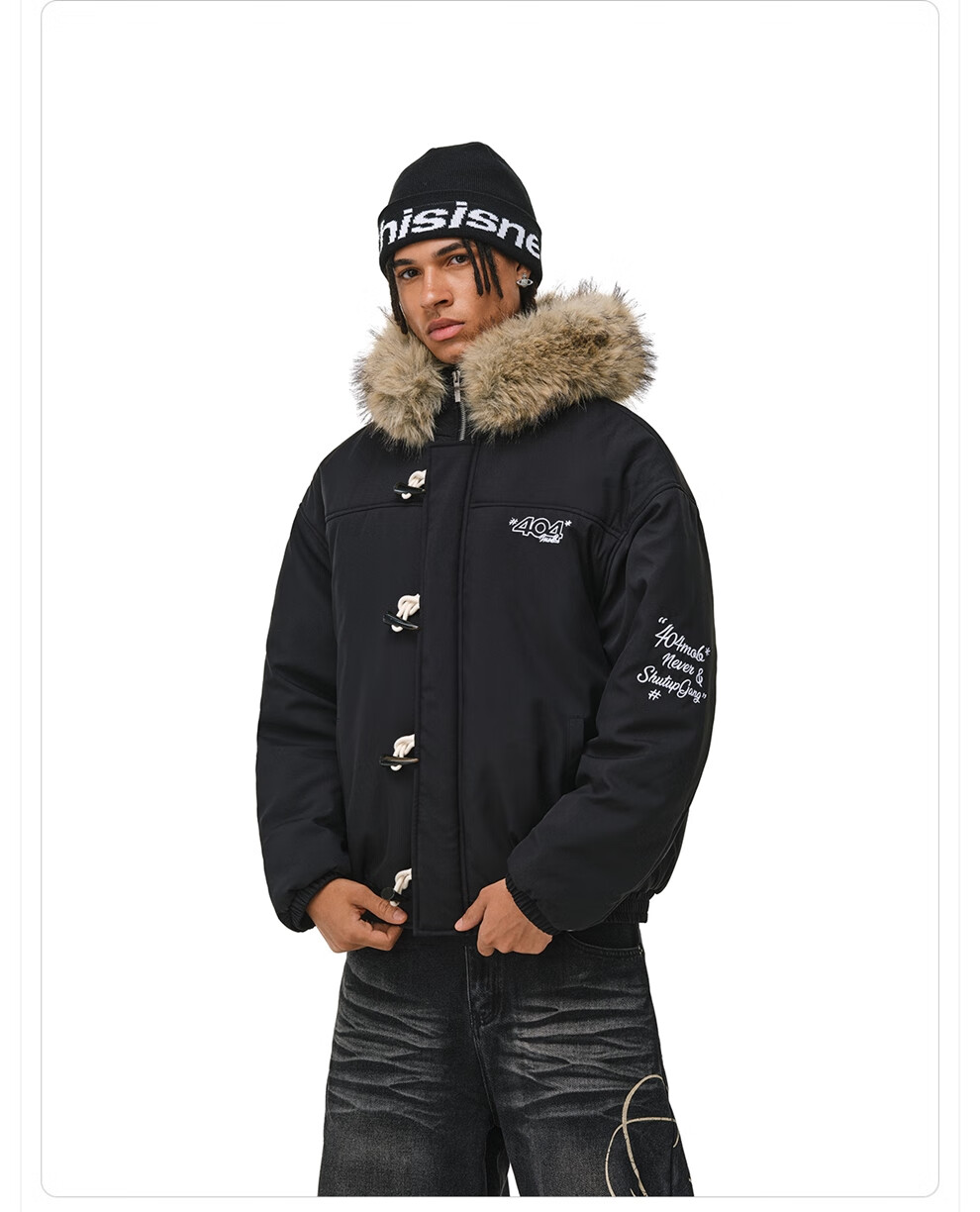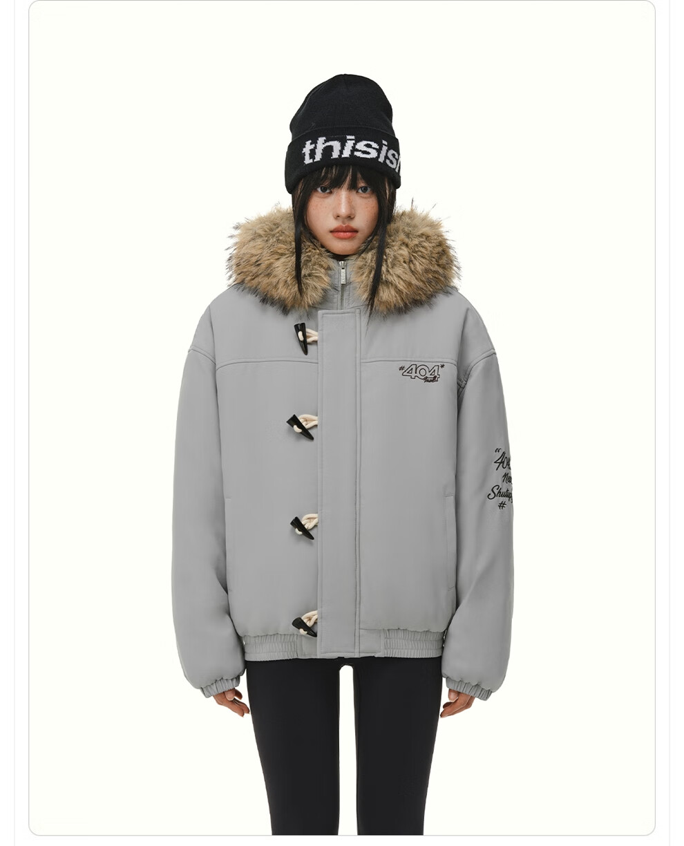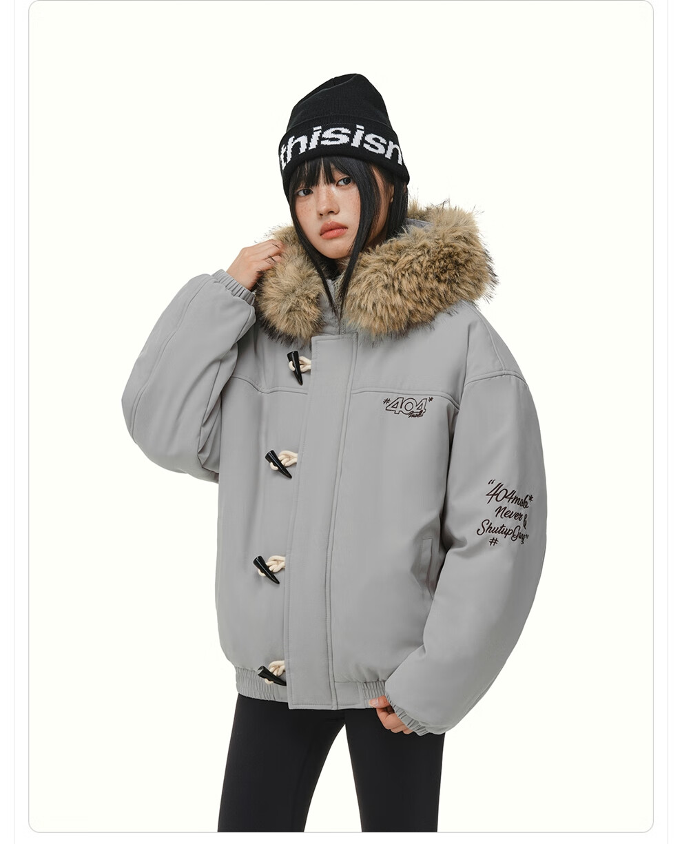 404MOBGANG大毛领牛角扣连帽空军夹克棉衣厚外套冬季男女2025休闲刺绣棉服 砂色 2XL