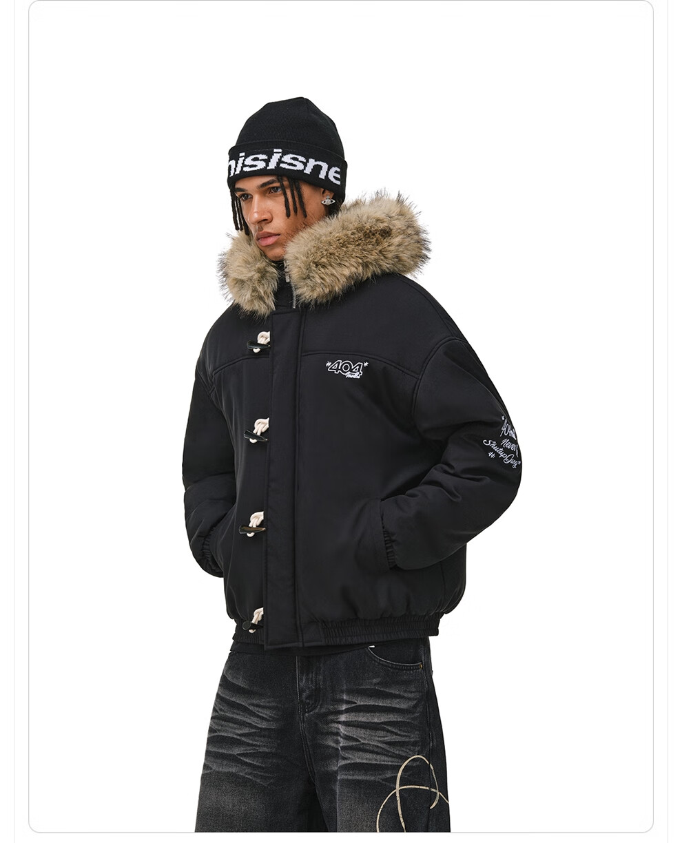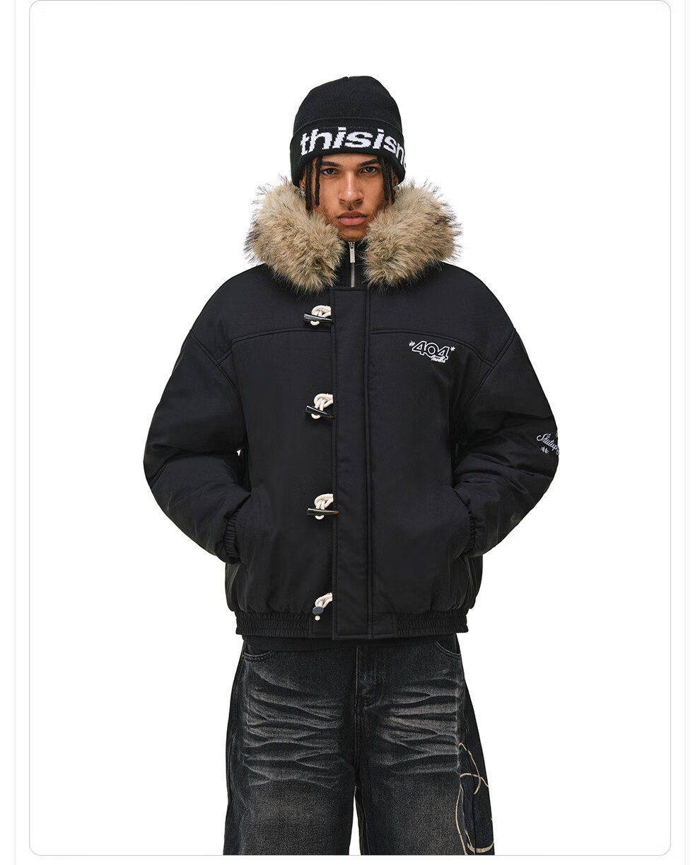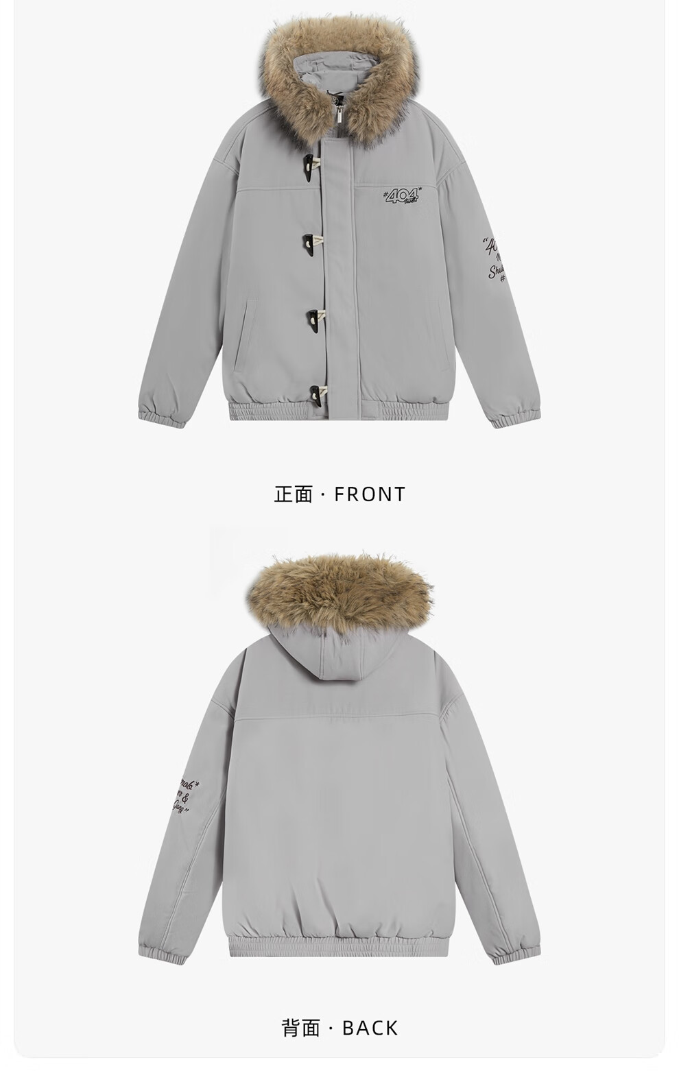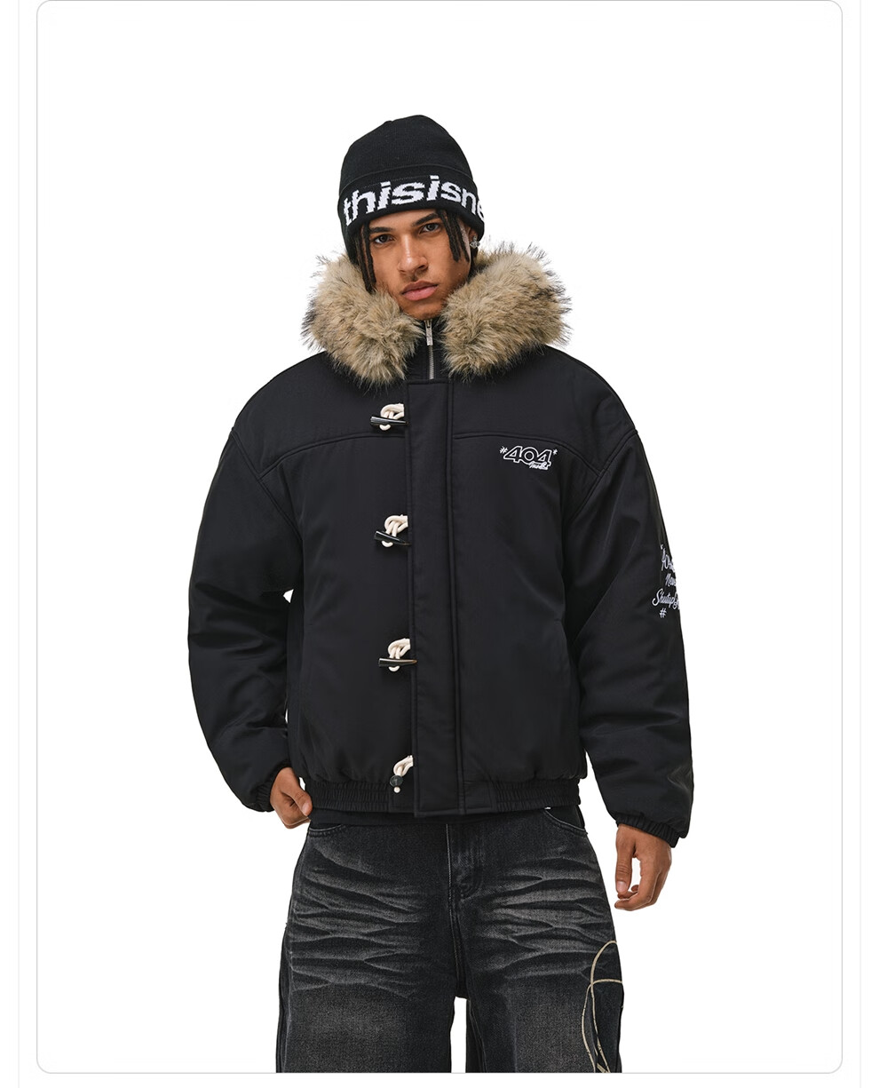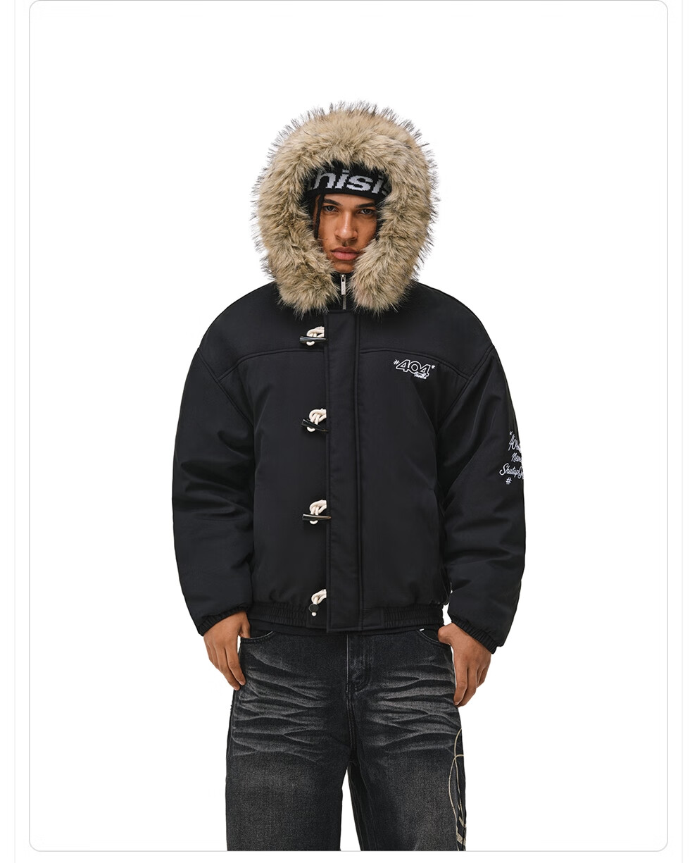 404MOBGANG大毛领牛角扣连帽空军夹克棉衣厚外套冬季男女2025休闲刺绣棉服 砂色 2XL