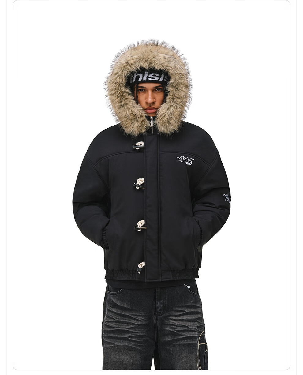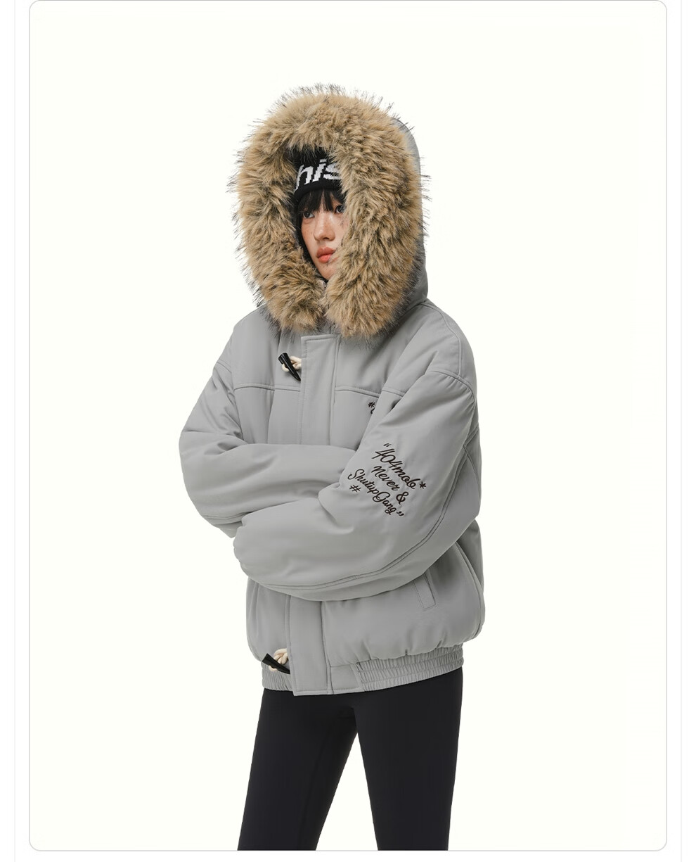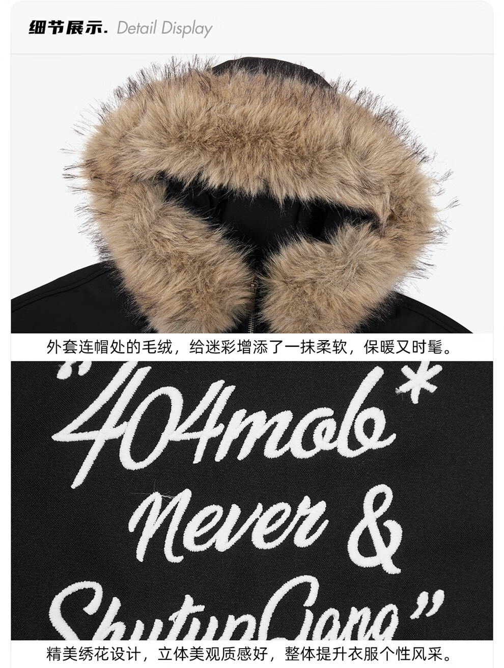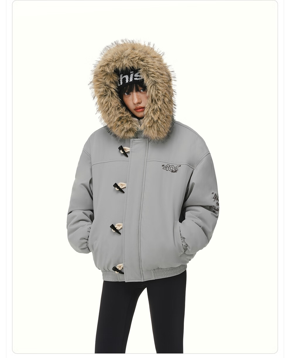 404MOBGANG大毛领牛角扣连帽空军夹克棉衣厚外套冬季男女2025休闲刺绣棉服 砂色 2XL