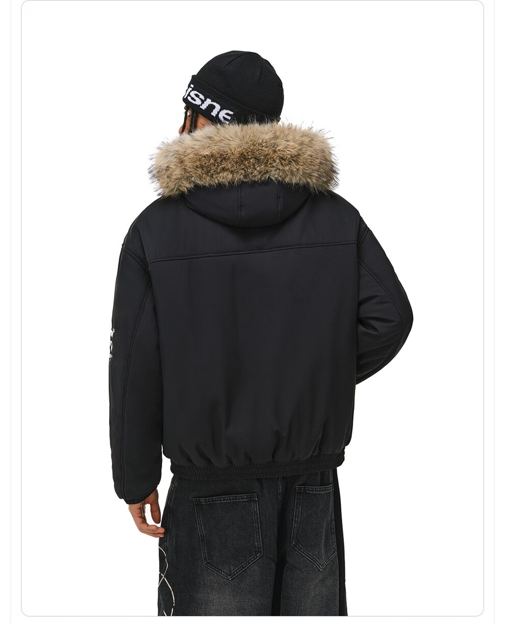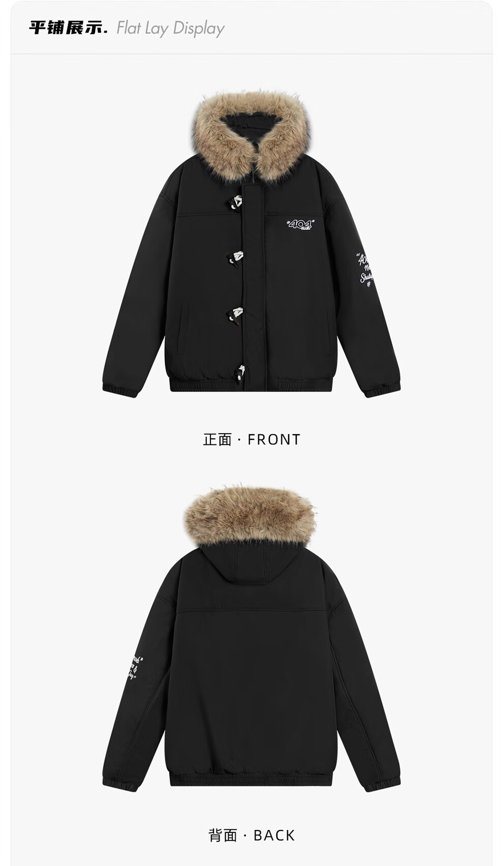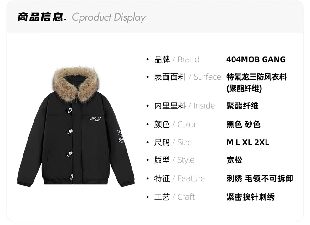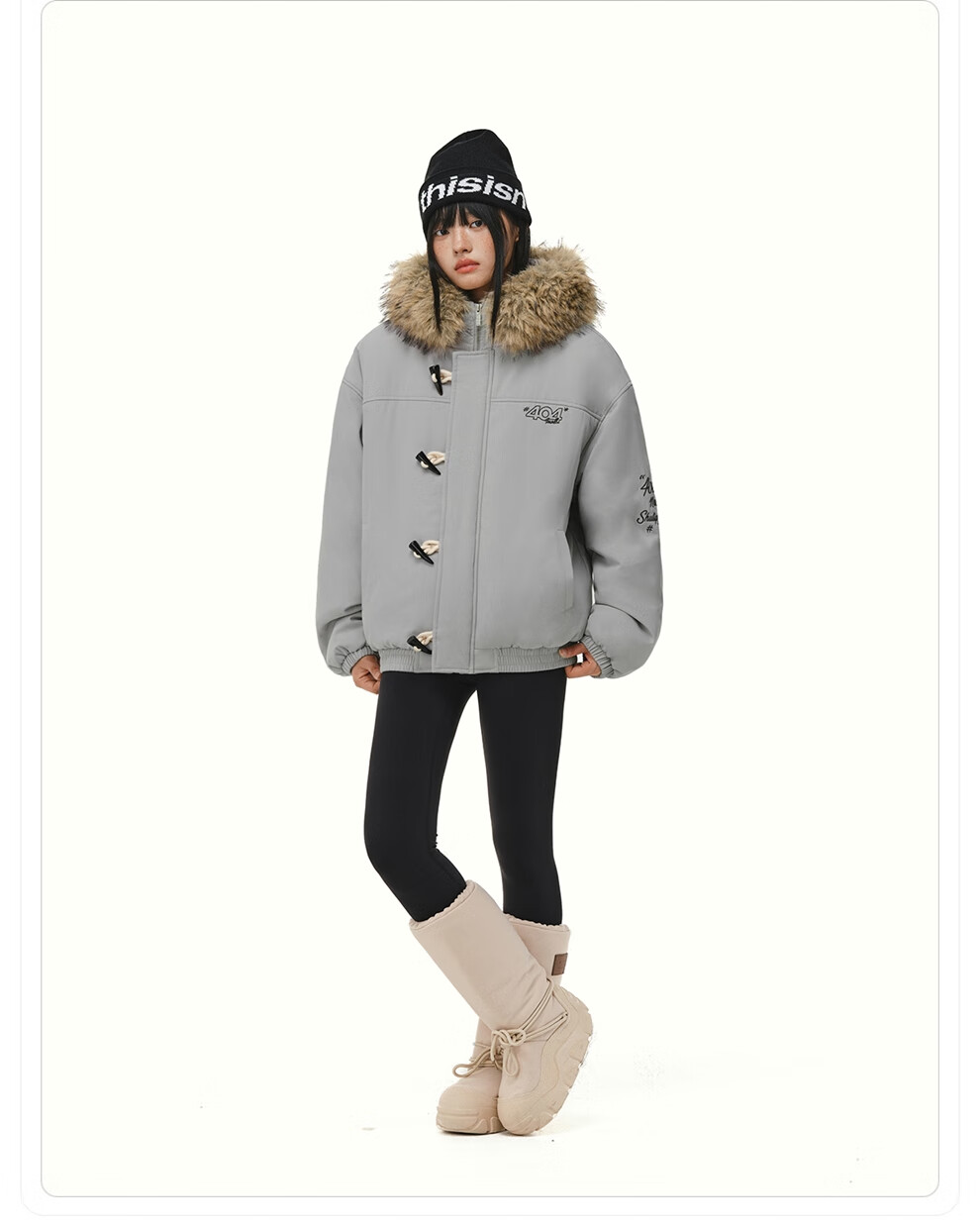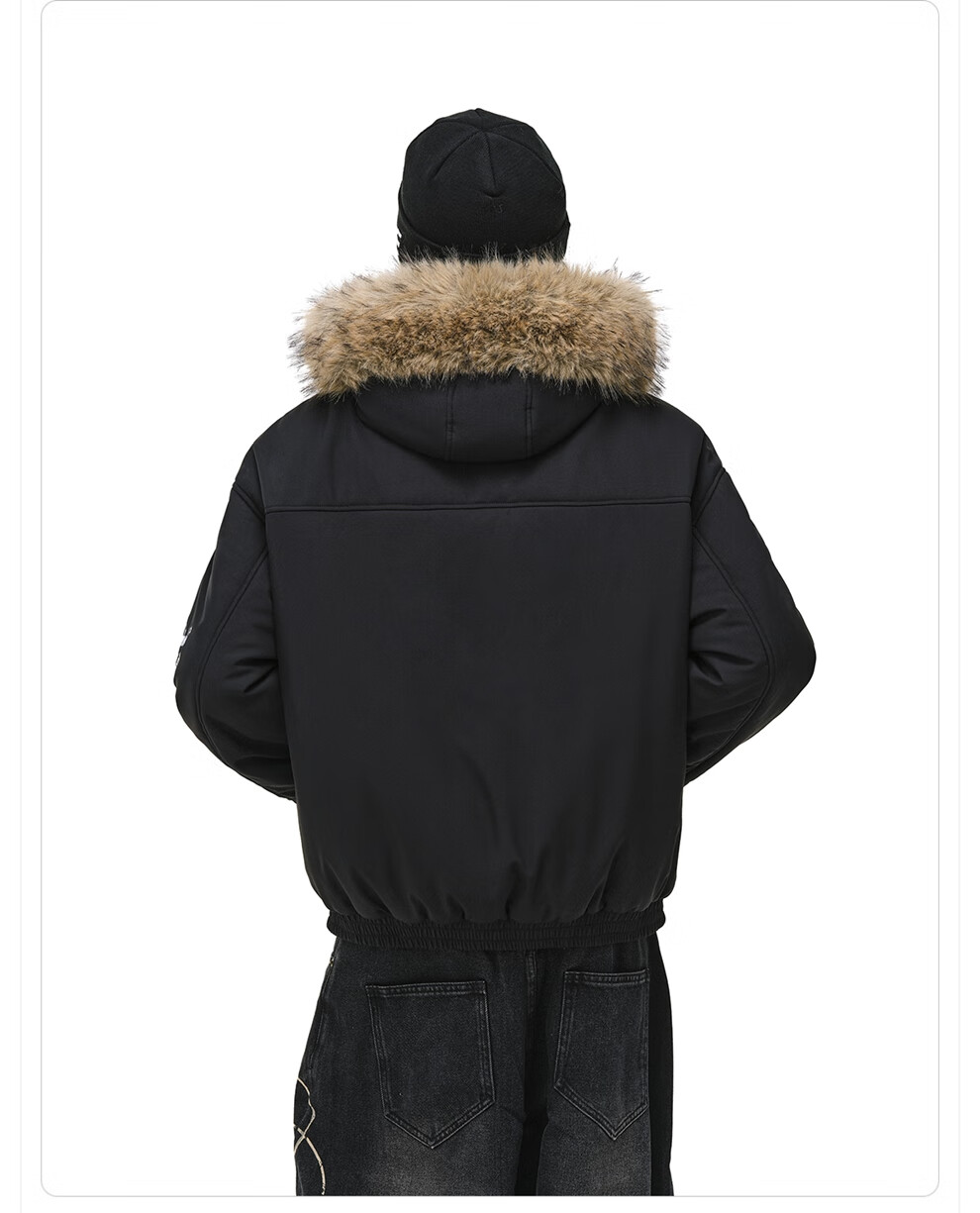 404MOBGANG大毛领牛角扣连帽空军夹克棉衣厚外套冬季男女2025休闲刺绣棉服 砂色 2XL
