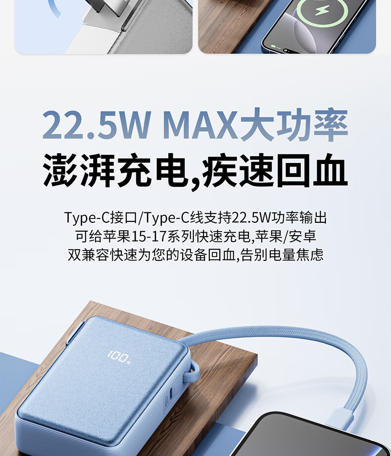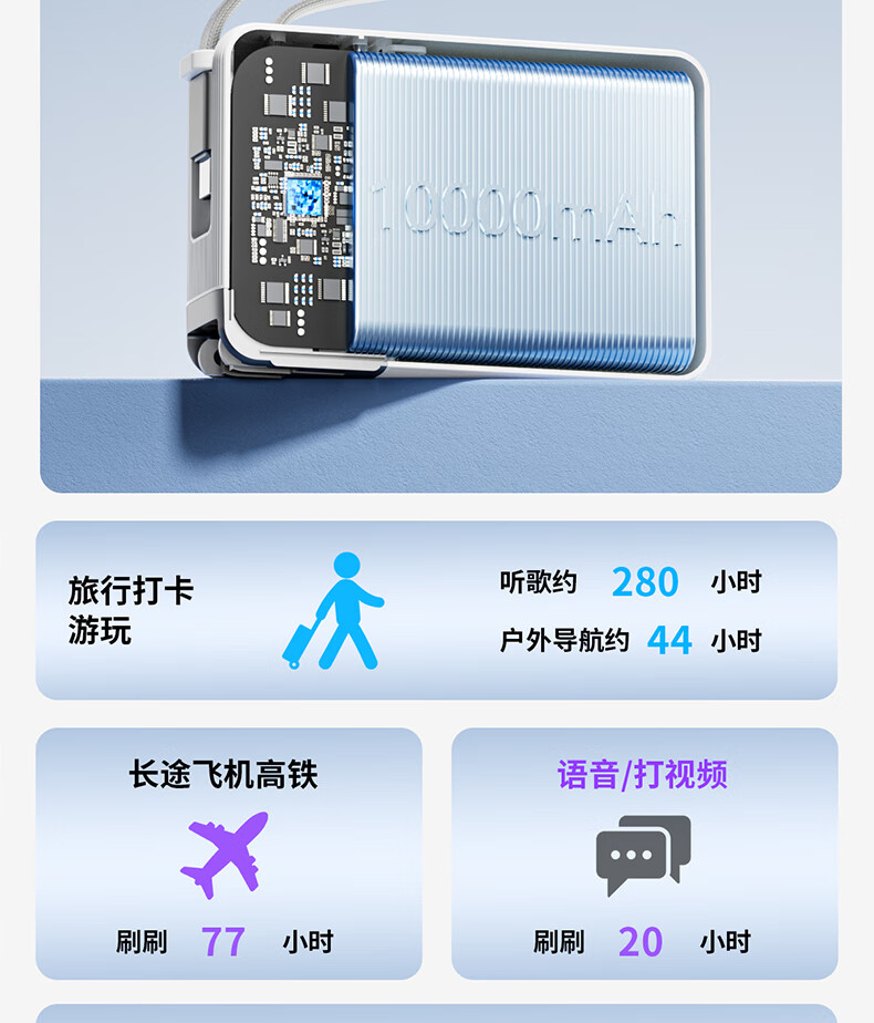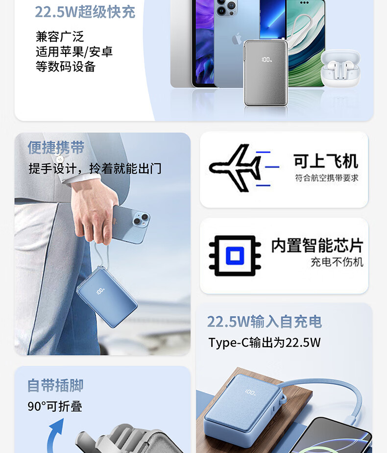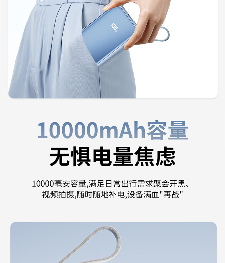 尊匠【国家3C安全认证】充电宝20000毫安自带线带插头66W极速快充可上飞机大容量移动电源苹果正品 【3C认证】极速快充充电宝自带快充线
