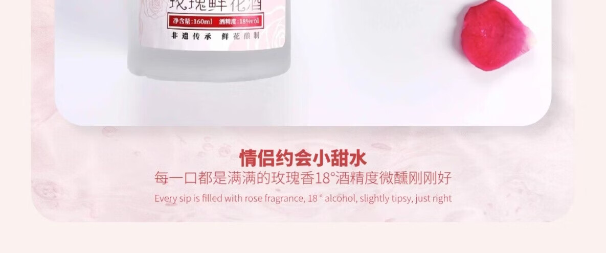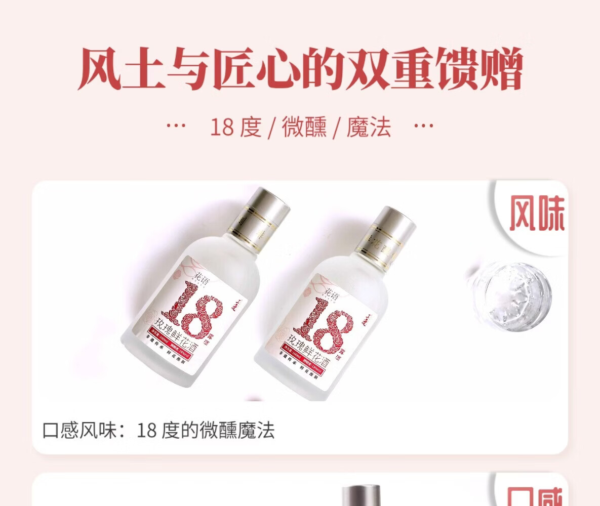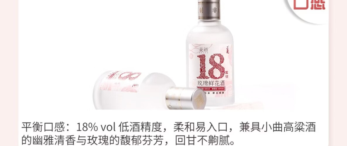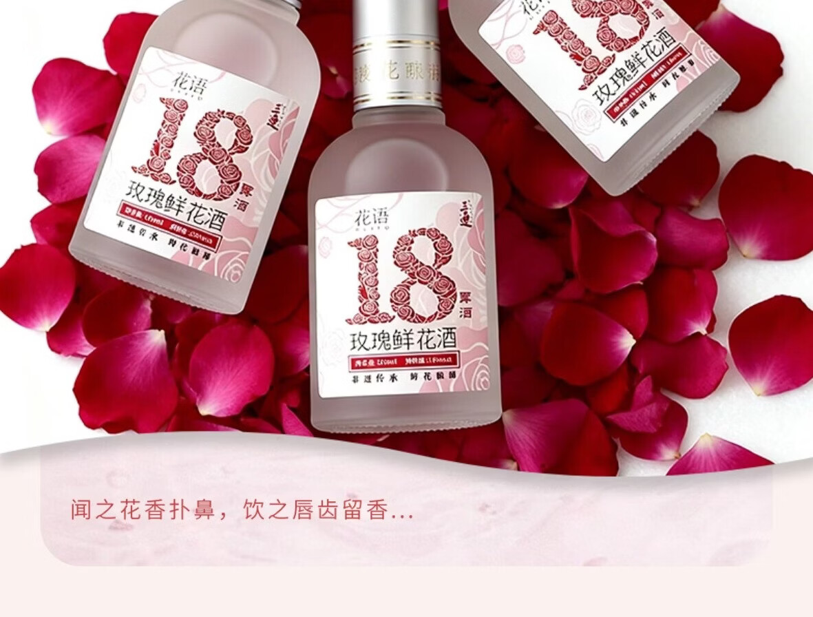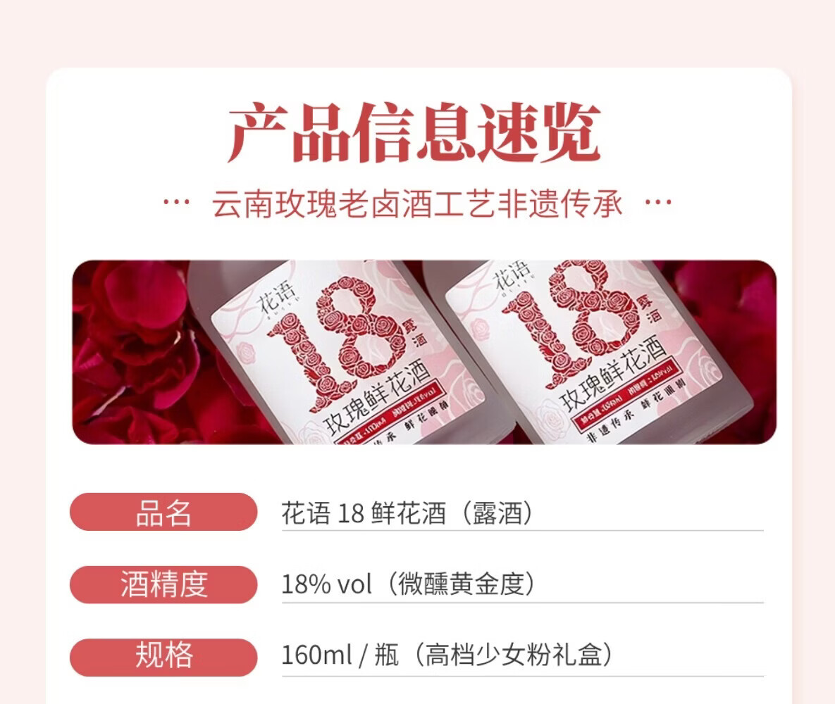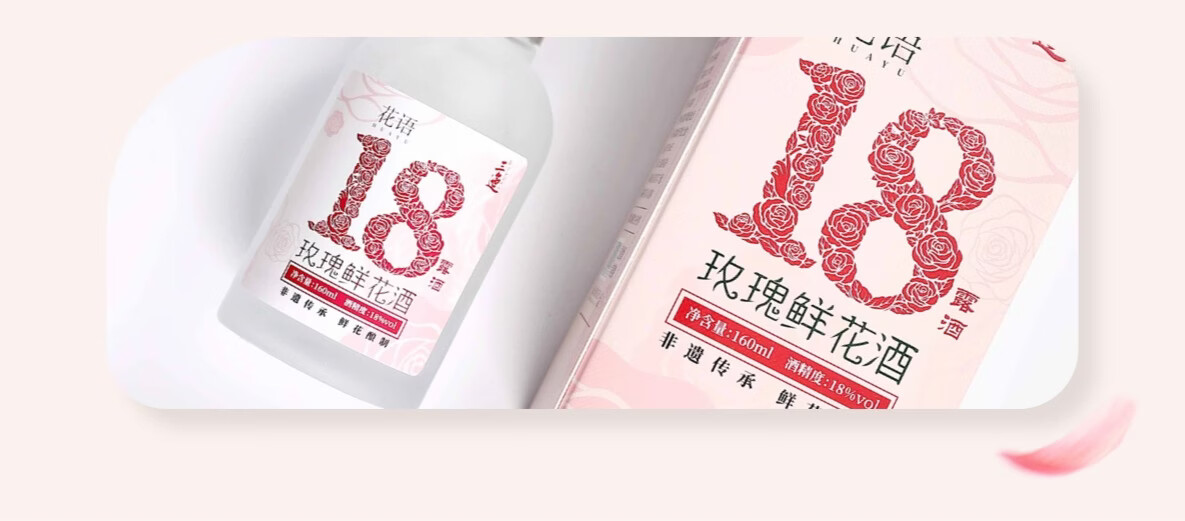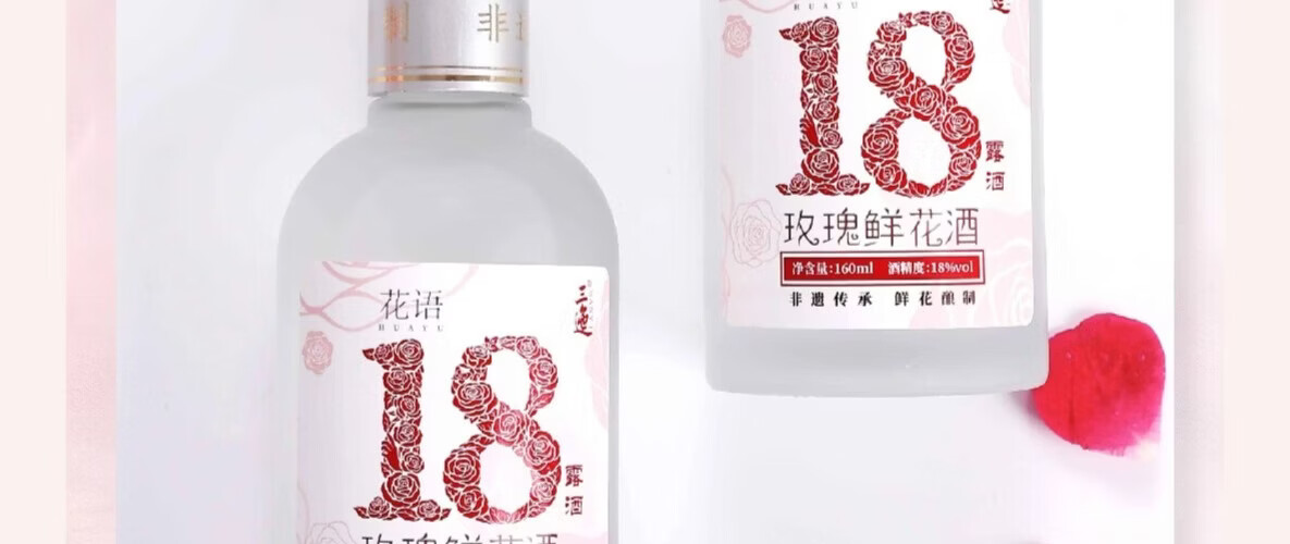 三迤花语十八 18度玫瑰花酒160ml*2瓶纯粮白酒睡前微醺女士露酒非礼盒 18%vol 160mL 2瓶 【微醺装】花语十八 玫瑰花酒(光瓶) 18度花语十八160ml*2瓶(光瓶装)