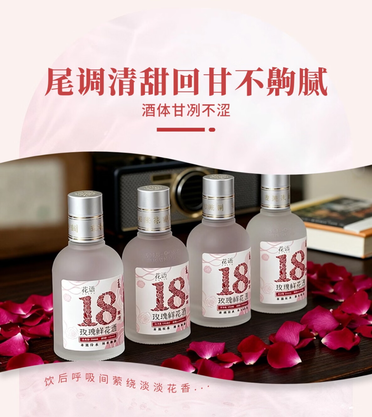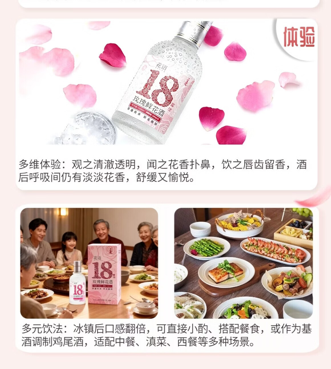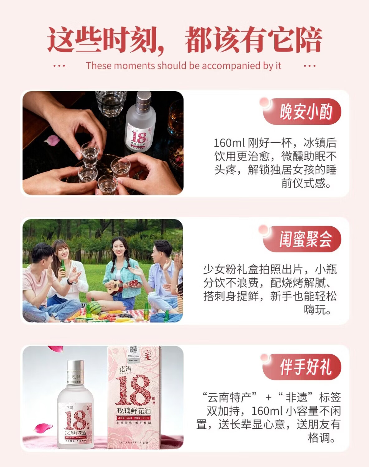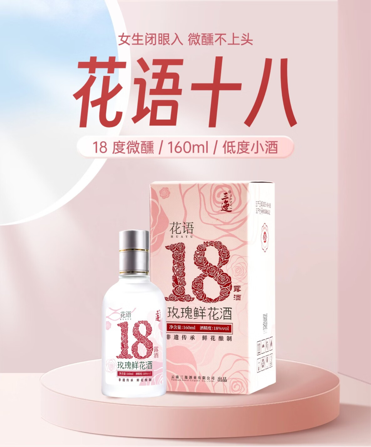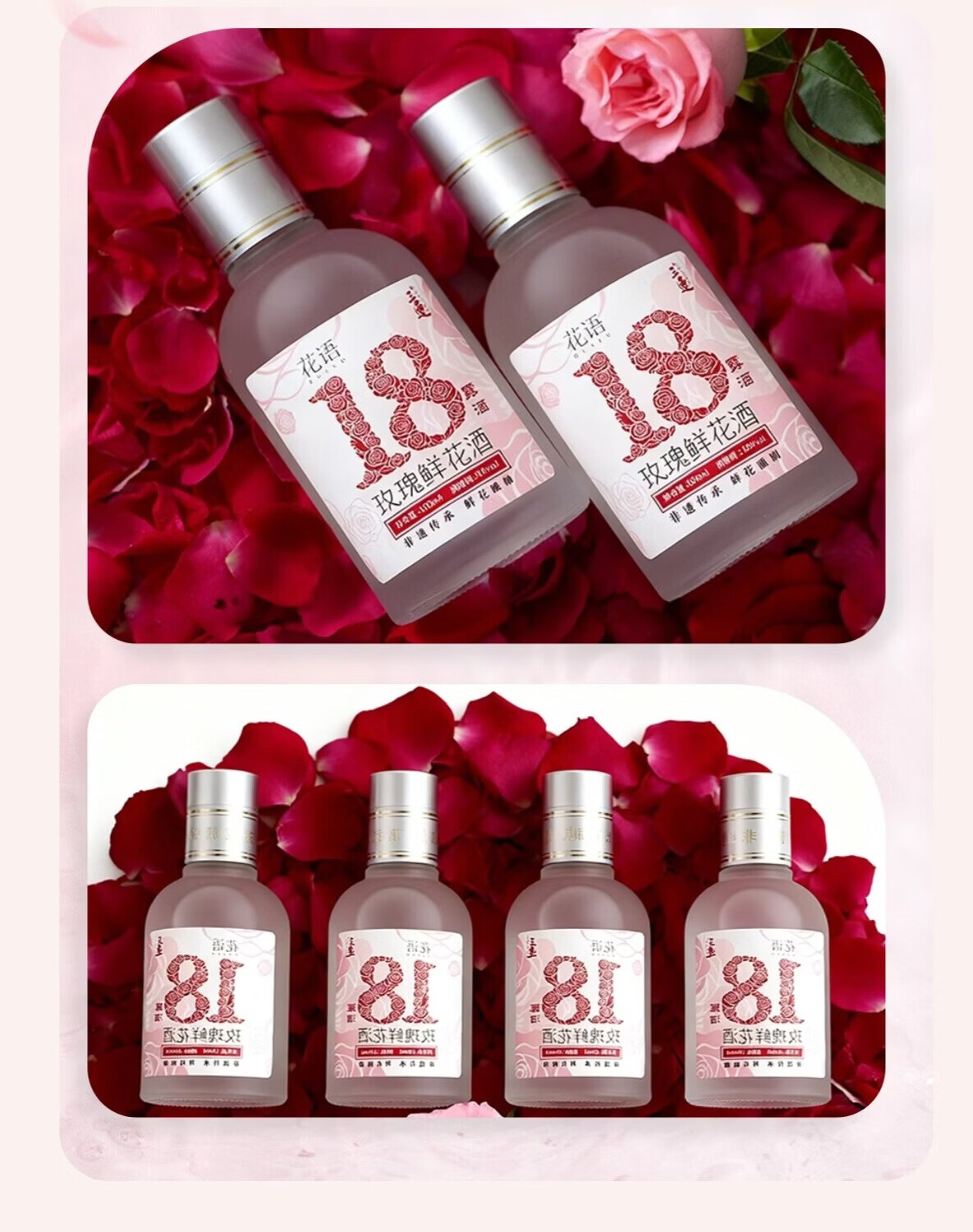 三迤花语十八 18度玫瑰花酒160ml*2瓶纯粮白酒睡前微醺女士露酒非礼盒 18%vol 160mL 2瓶 【微醺装】花语十八 玫瑰花酒(光瓶) 18度花语十八160ml*2瓶(光瓶装)