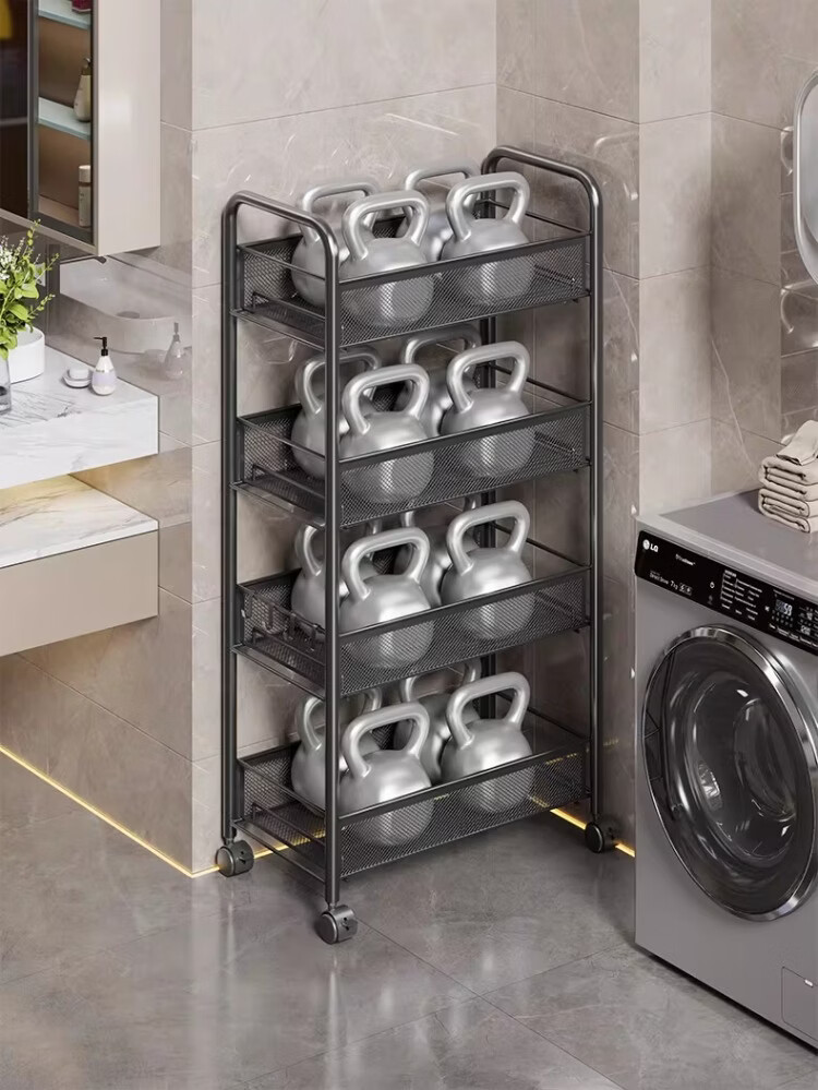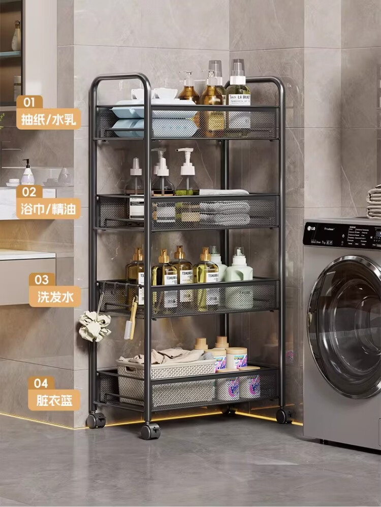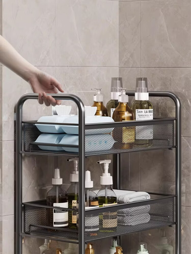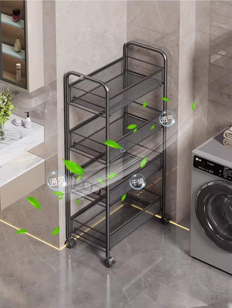 尔思家浴室置物架卫生间收纳柜多功能落地夹缝多功能柜浴室落地一体靠墙 3层黑-豪华加厚【滑轮+挂钩】