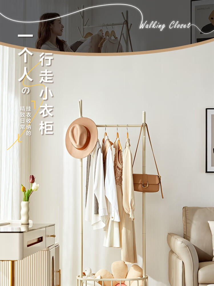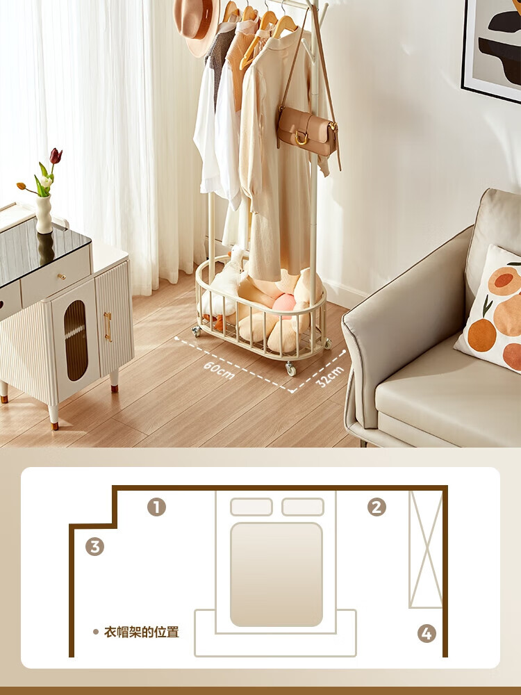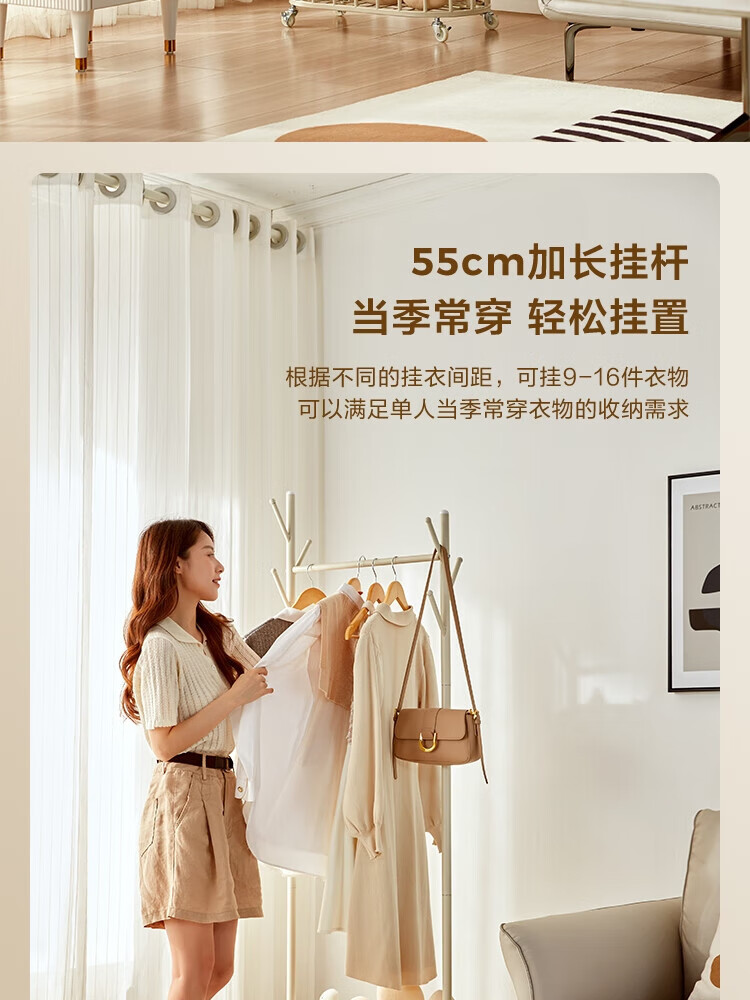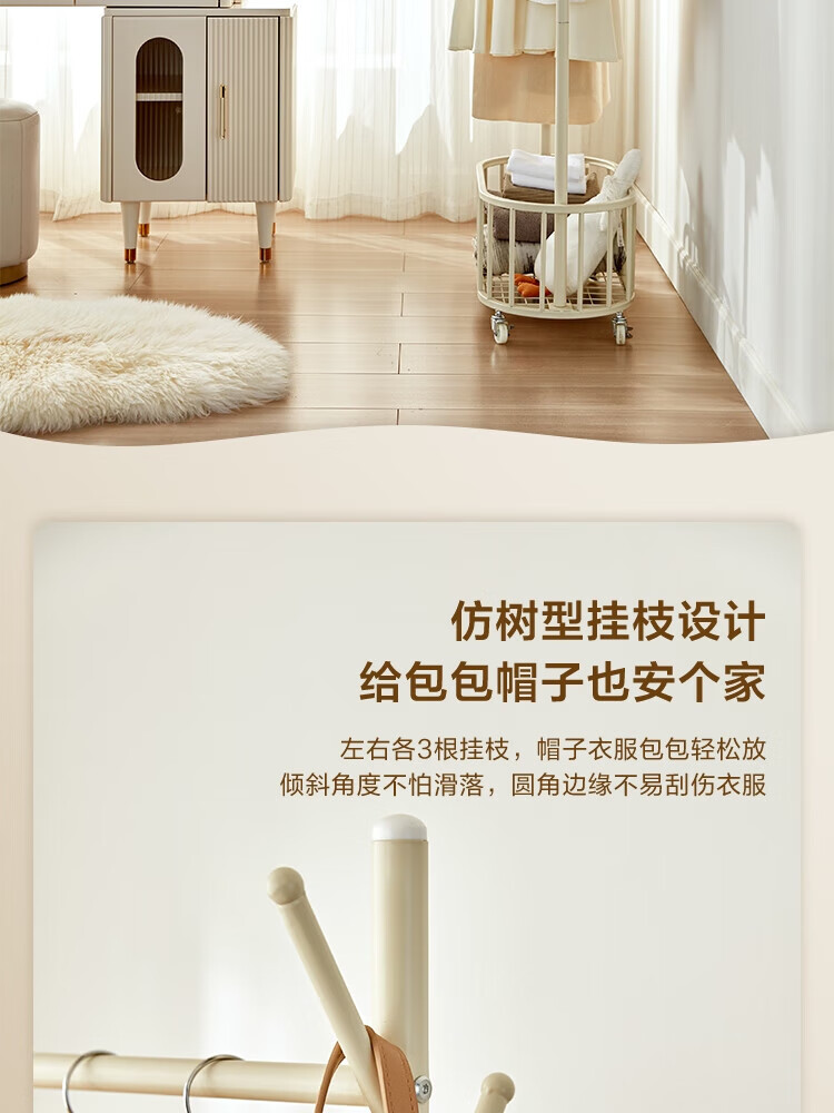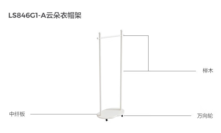 LINSY KIDS可移动挂衣架落地衣帽架卧室床边晚上放衣服神器林氏木业LS715P1 【奶油白|板木】云朵衣帽架