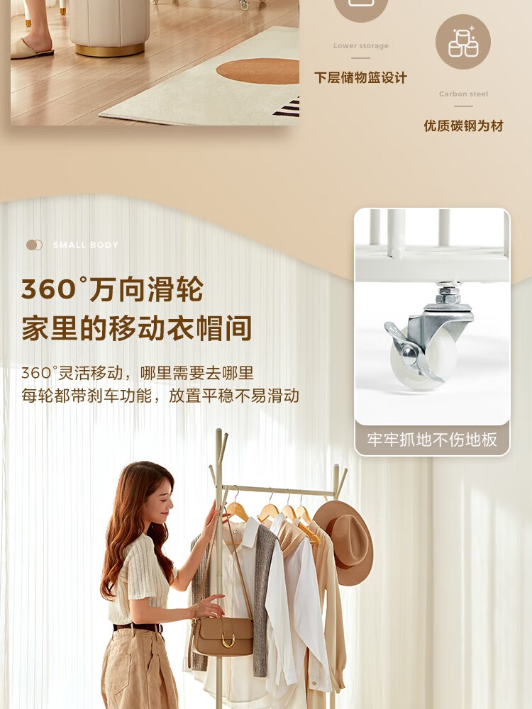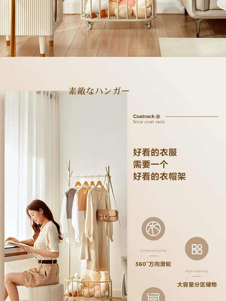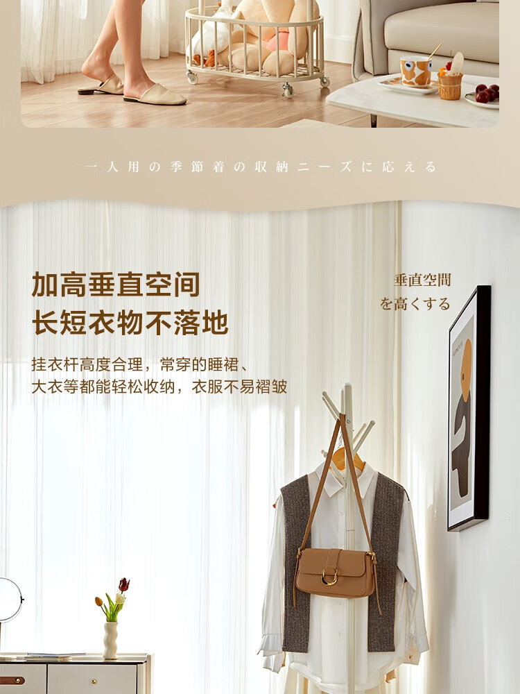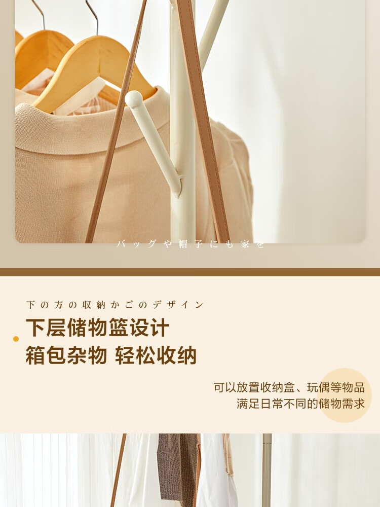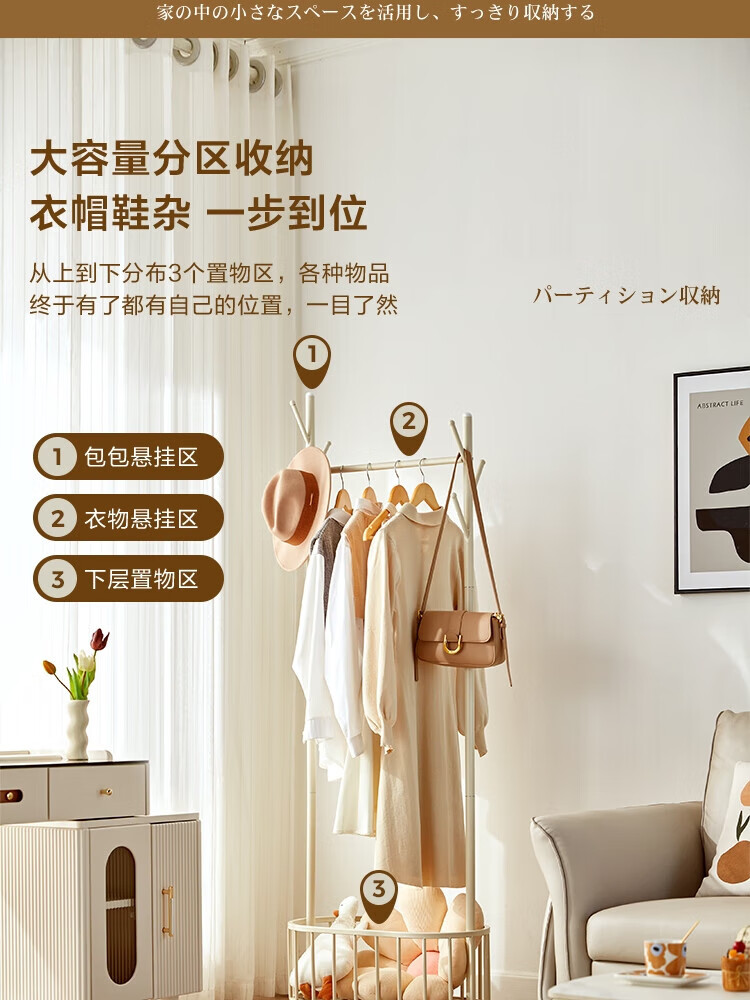 LINSY KIDS可移动挂衣架落地衣帽架卧室床边晚上放衣服神器林氏木业LS715P1 【奶油白|板木】云朵衣帽架