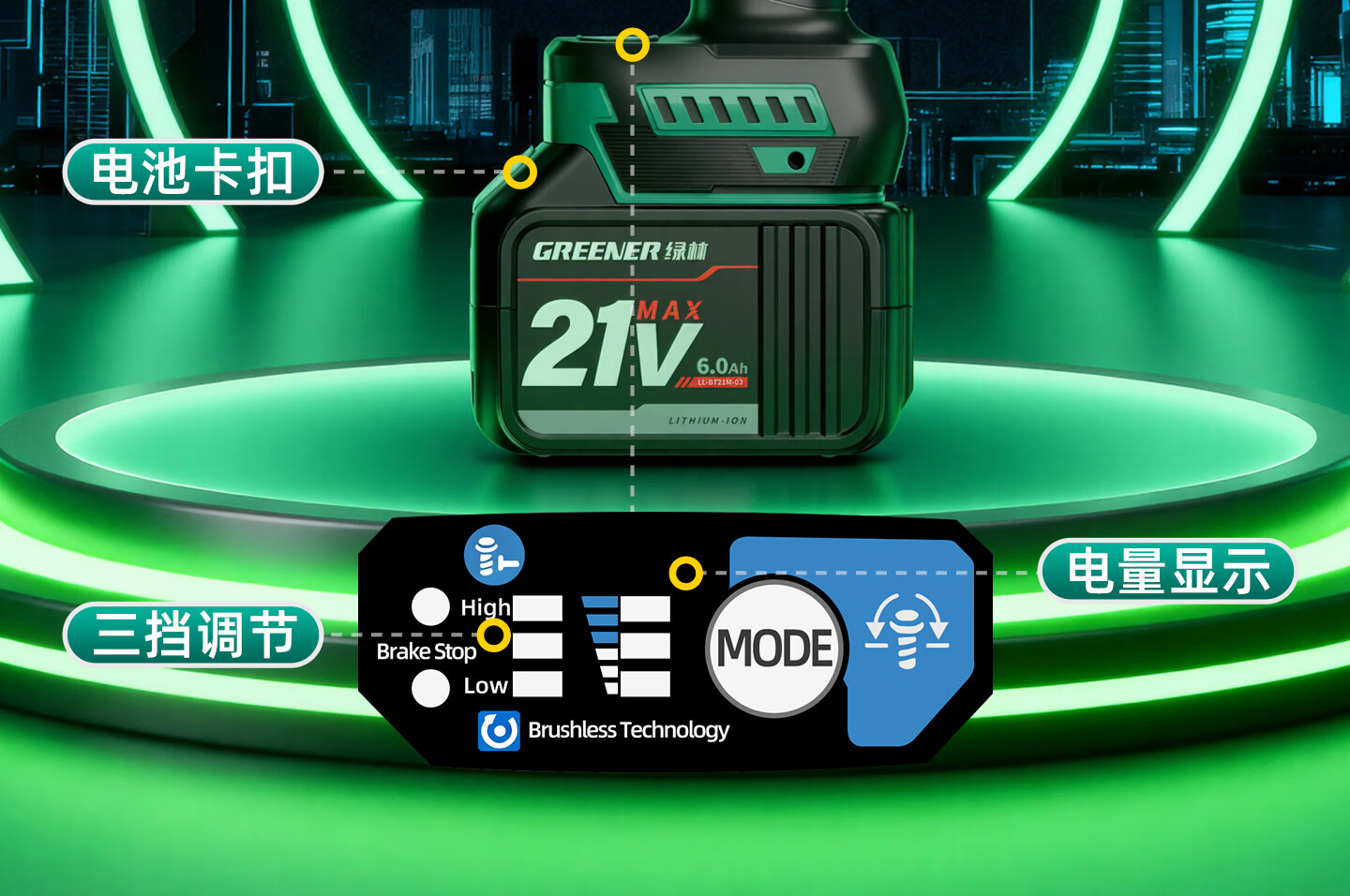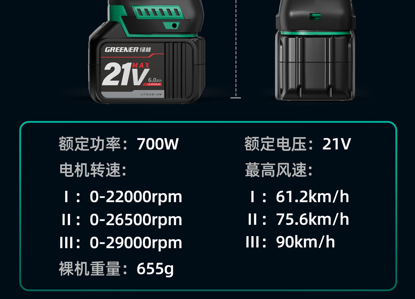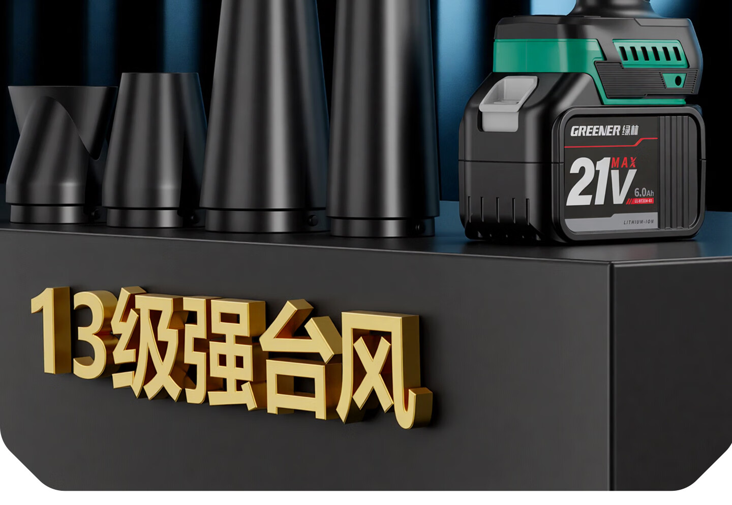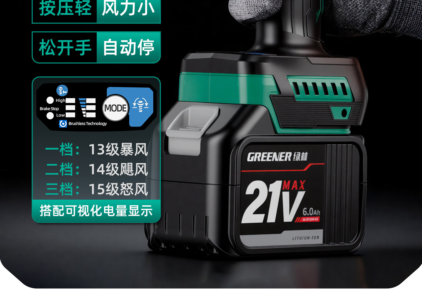 绿林(GREENER)暴力涡轮风扇大功率强力鼓风机锂电暴风枪工业神器无刷吹风机 数显强风款[10节4AH]一电+三档可调+风嘴四件套