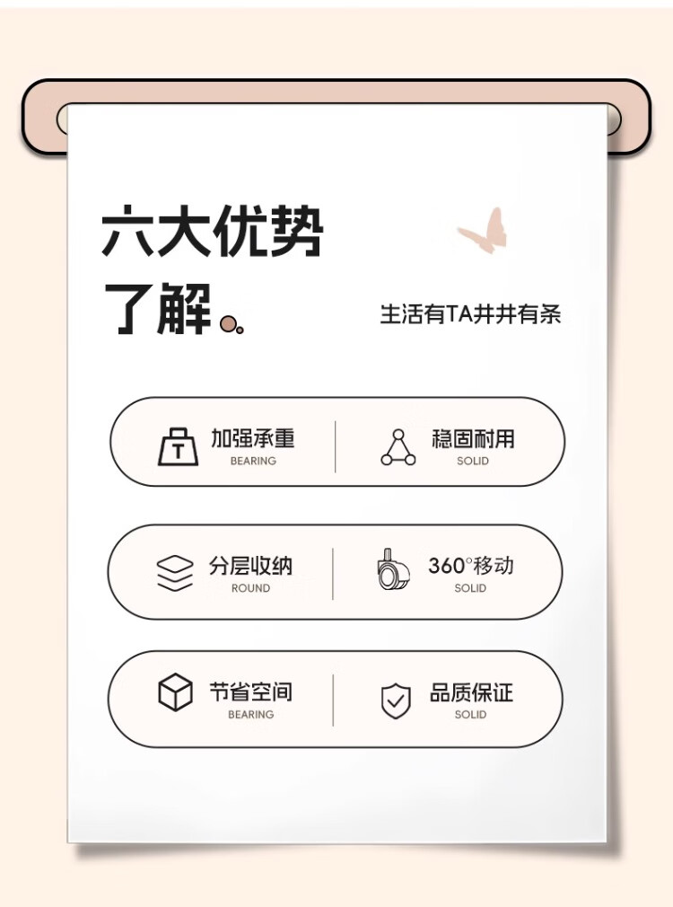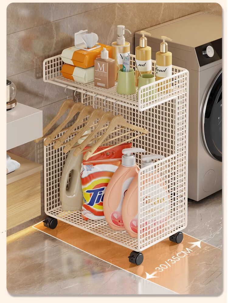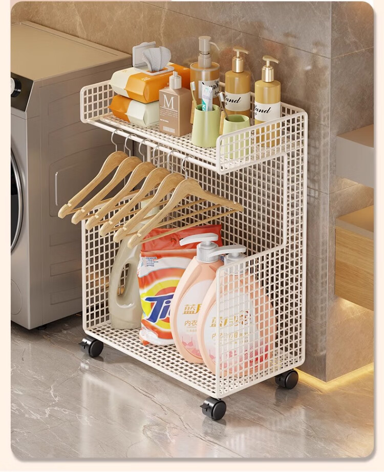 尔思家卫生间置物架可移动落地式浴室用品可移动小推车储物柜厕所收纳柜 白色大号
