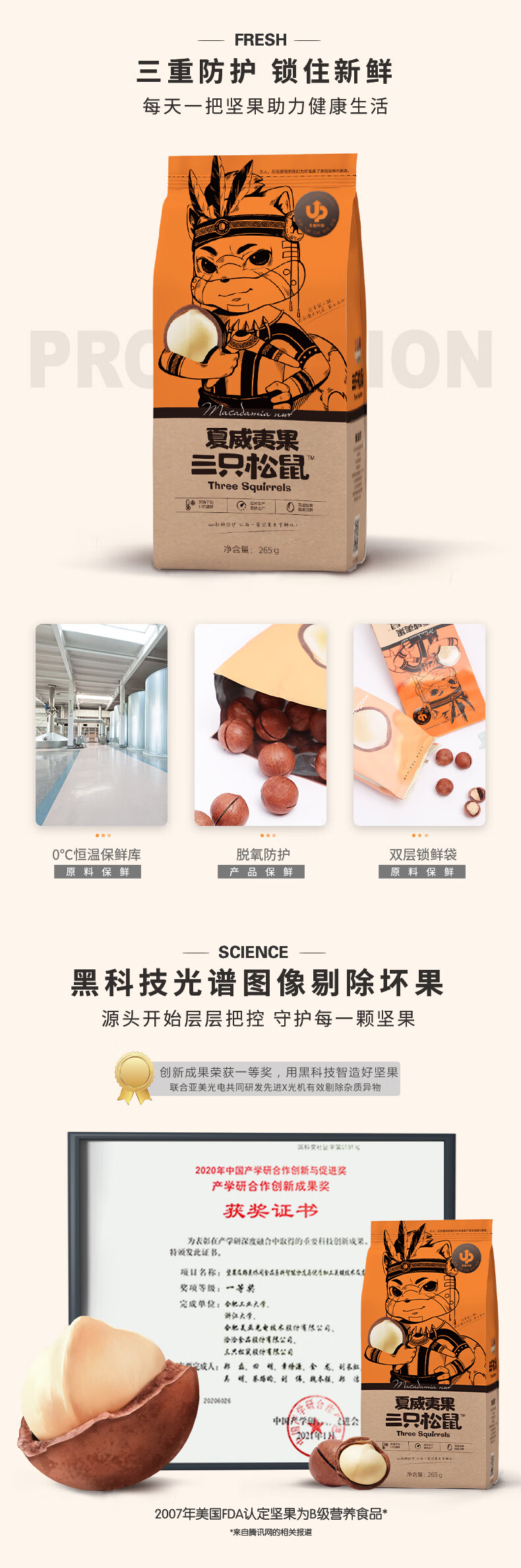 三只松鼠奶油味夏威夷果 坚果炒货干果孕妇休闲零食小吃265g/袋