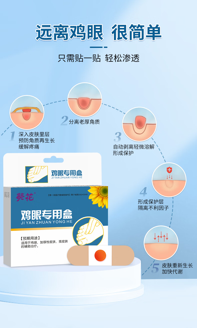 葵花鸡眼贴膏扁平疣跖疣去脚根肉刺无痛脱落专用足部手部脚底老茧瘊子