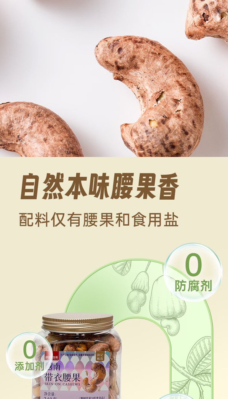 薛记炒货紫衣腰果240g罐A180紫皮腰果高端罐装坚果零食坚果炒货