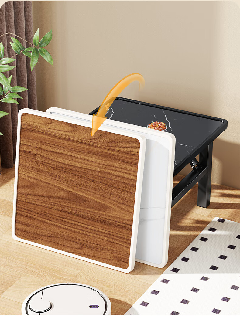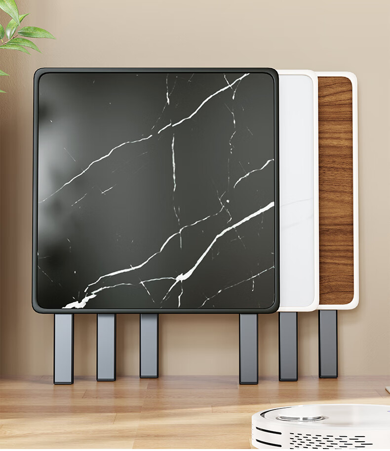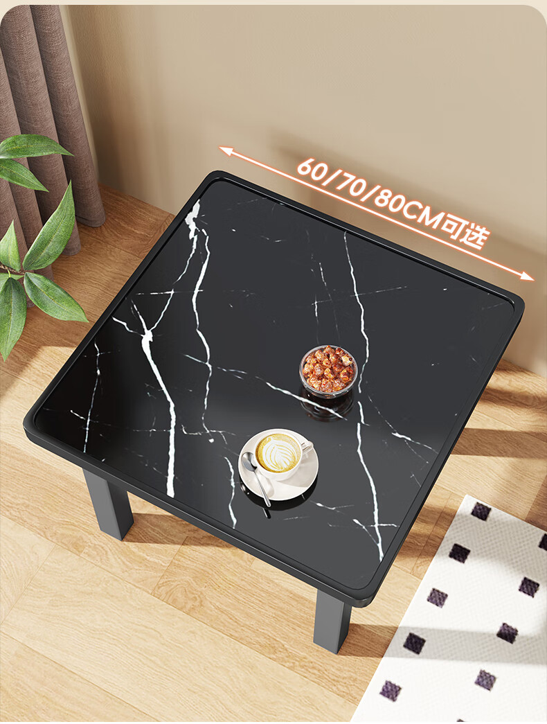 木格格折叠餐桌轻奢高级感2025新款现代简约风饭桌子家用小方桌阳台茶桌 黑纹理80*80*50