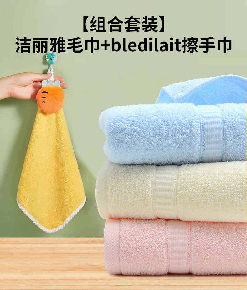 洁丽雅(Grace)毛巾纯棉儿童加大柔软洗澡擦脸巾男女士家用新疆长绒棉洗脸巾3条