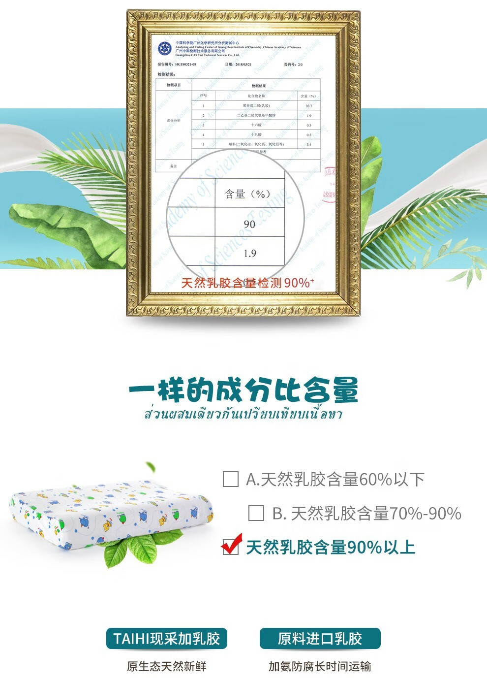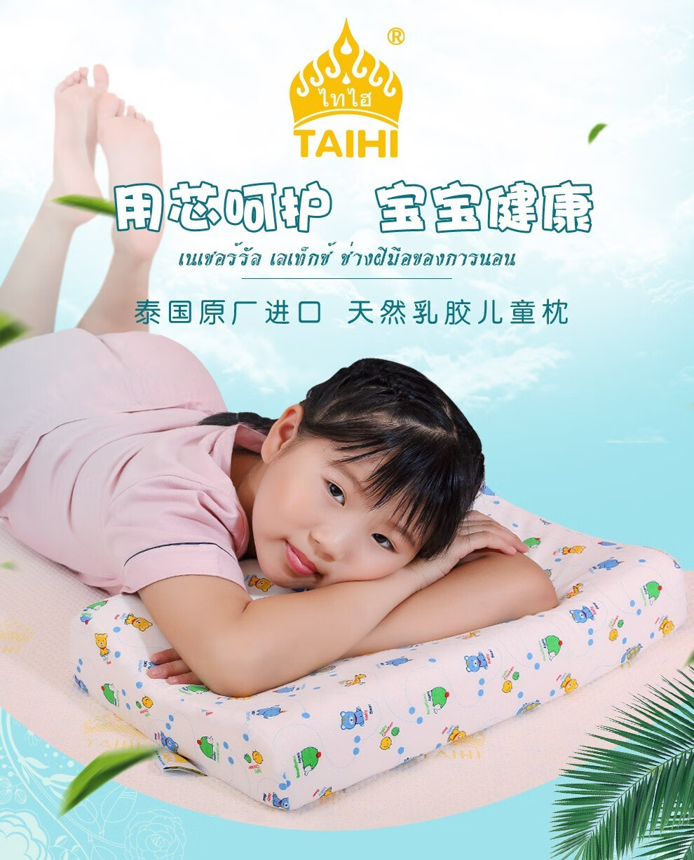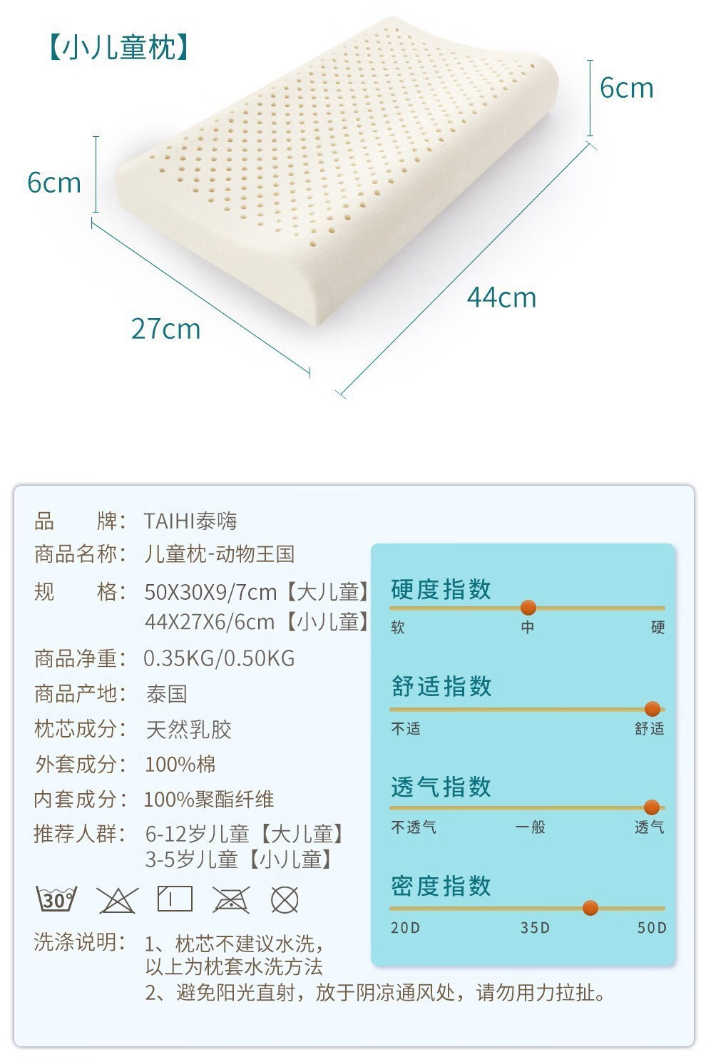 泰嗨(TAIHI) 乳胶枕头泰国原产进口 天然乳胶护颈枕 儿童乳胶枕 颈椎 带枕套 动物王国 大儿童枕单只装