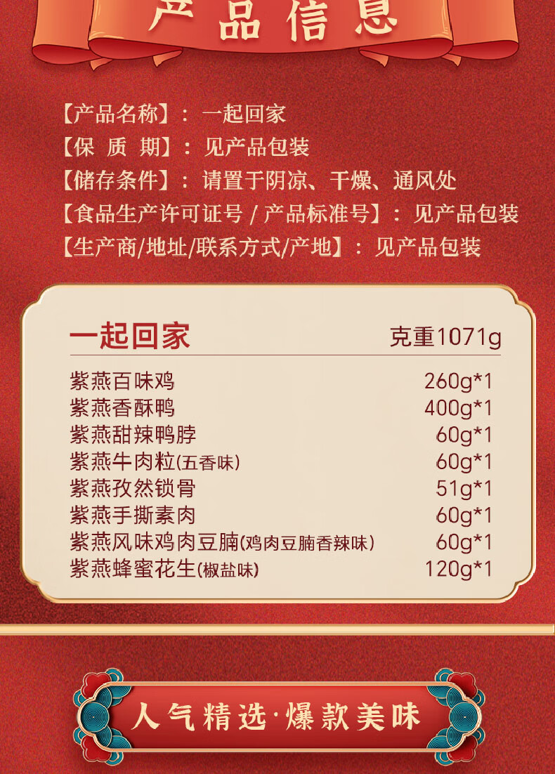紫燕百味鸡 荣华富贵熟食礼盒酱卤肉丸鸭脖下酒菜年夜饭春节年货送礼品1186g