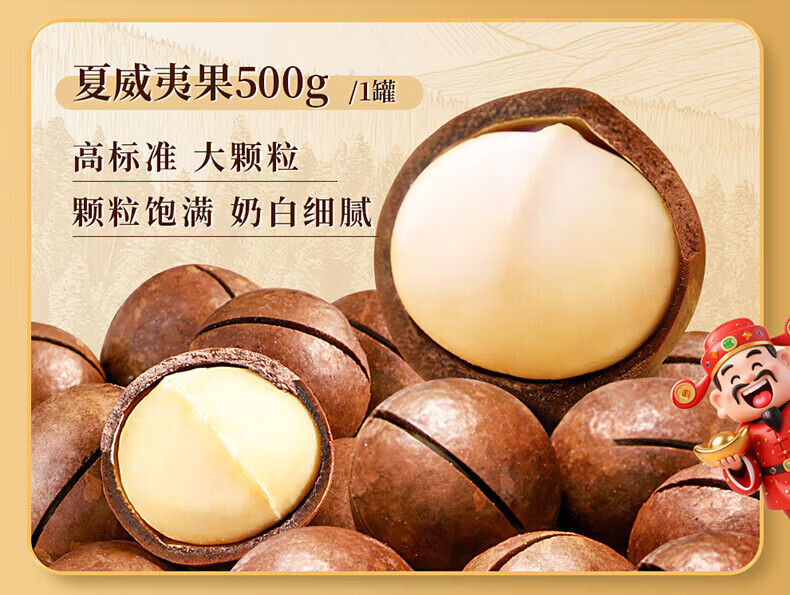 华味亨桶装混合坚果1kg 坚果炒货开心果腰果年货礼盒送礼零食休闲小吃 500g夏威夷果+500g盐焗巴旦木