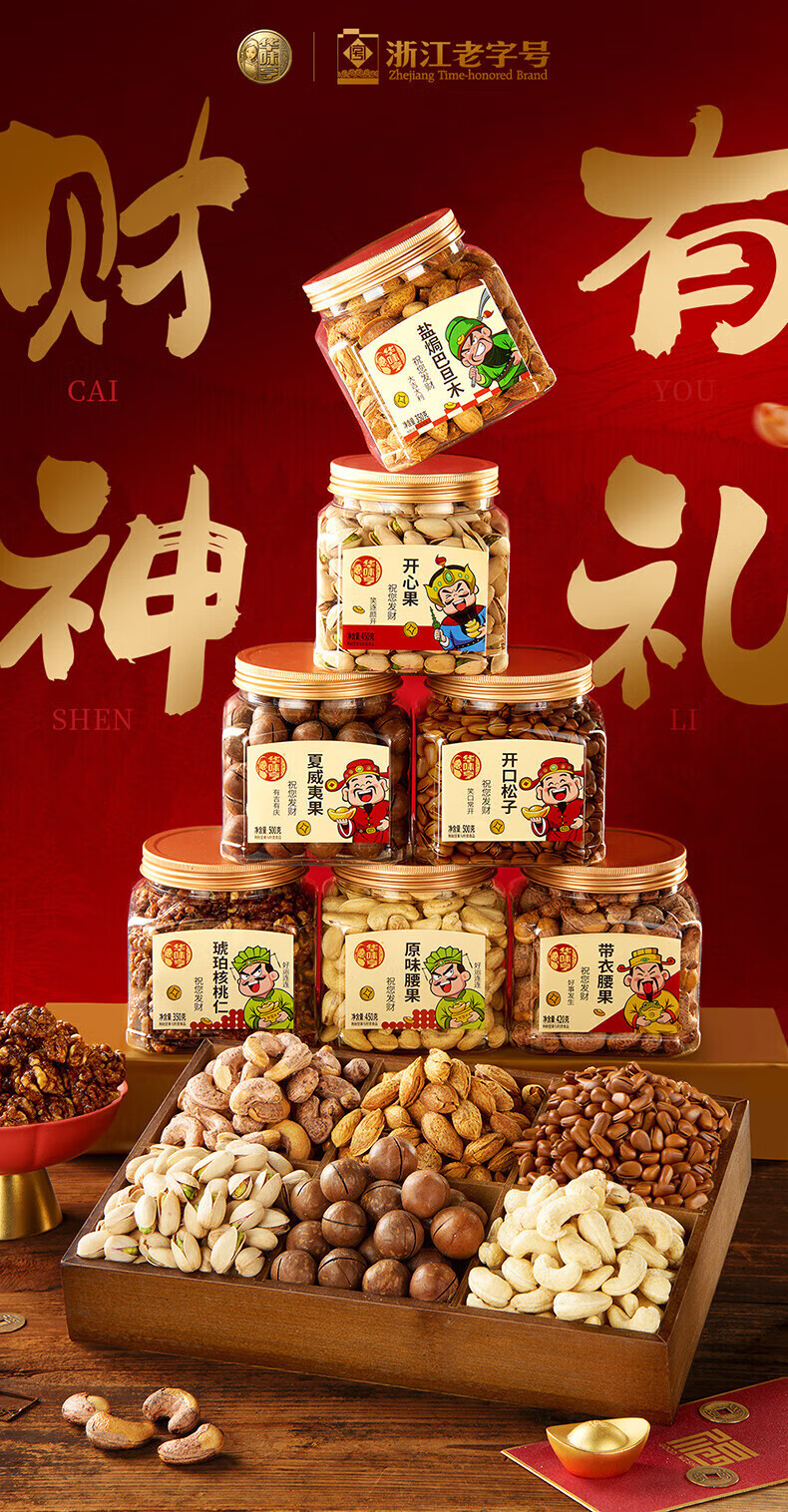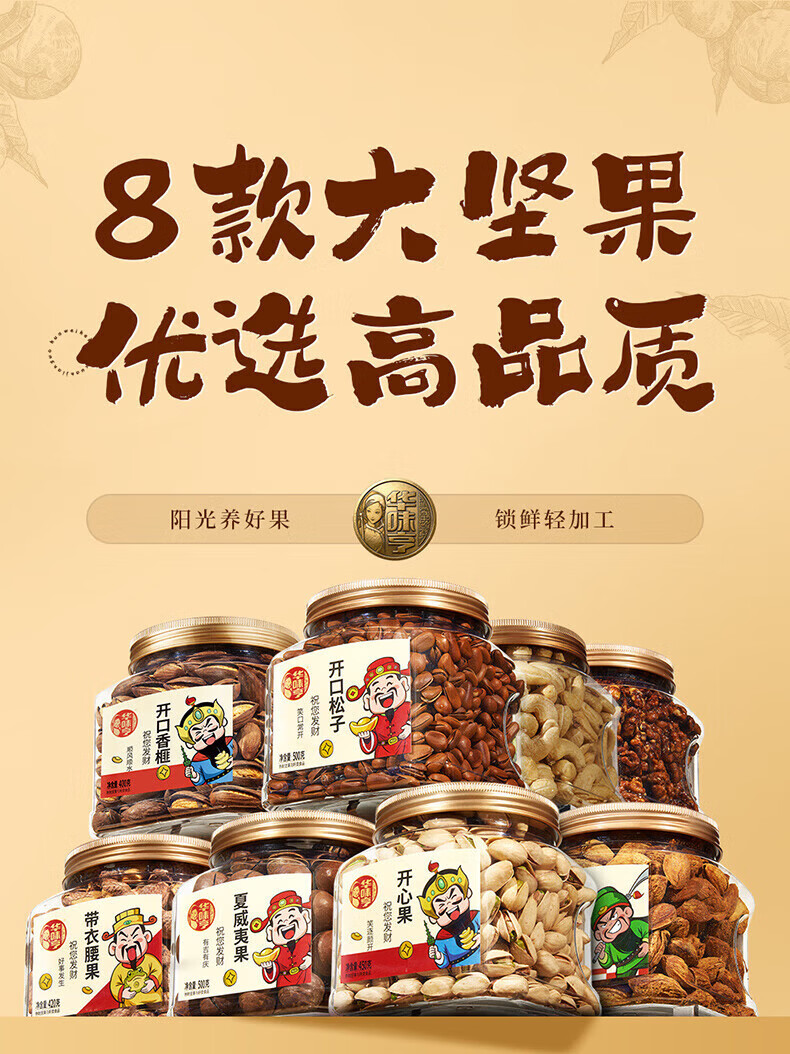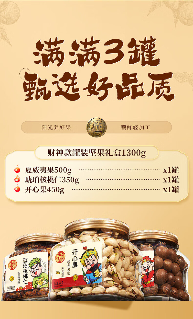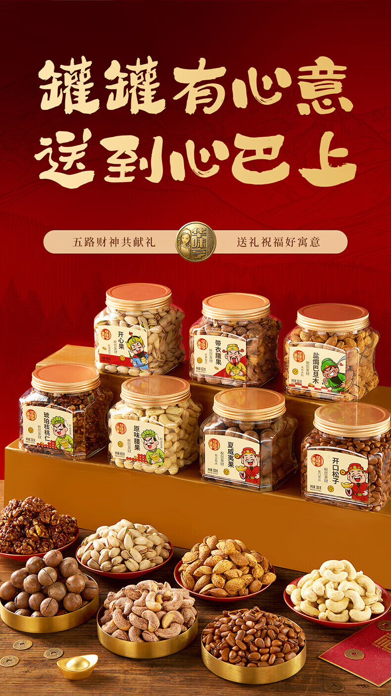 华味亨财神坚果1270g 企业团购罐装坚果腰果巴旦木贺岁年货送人礼品 【财神礼】1270g/3罐装