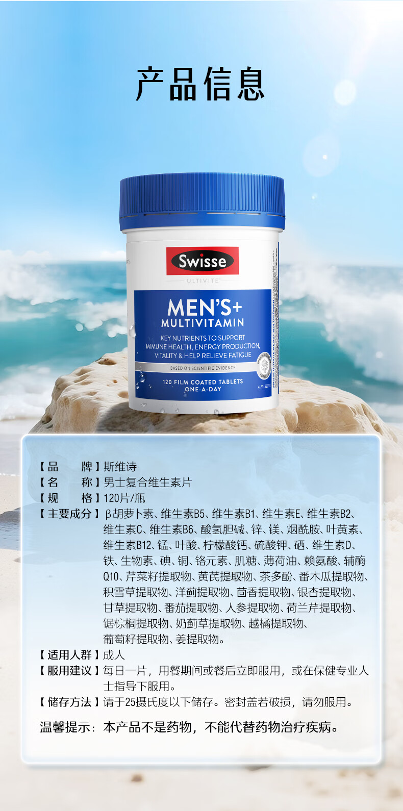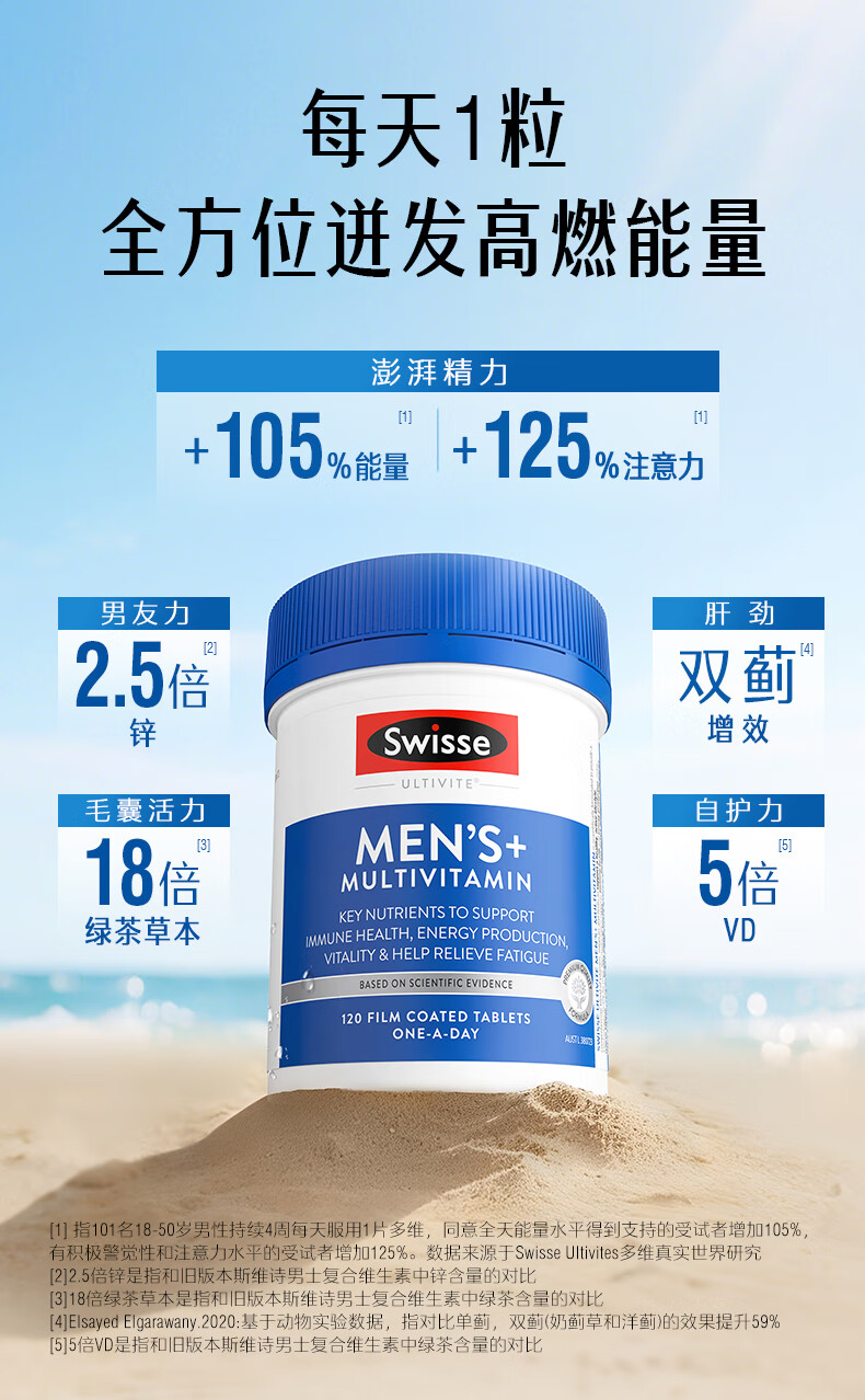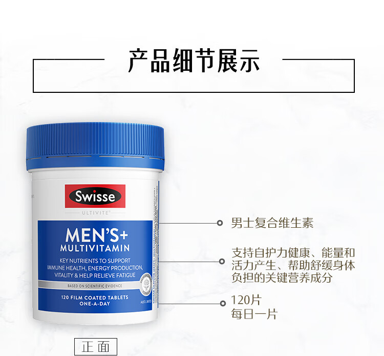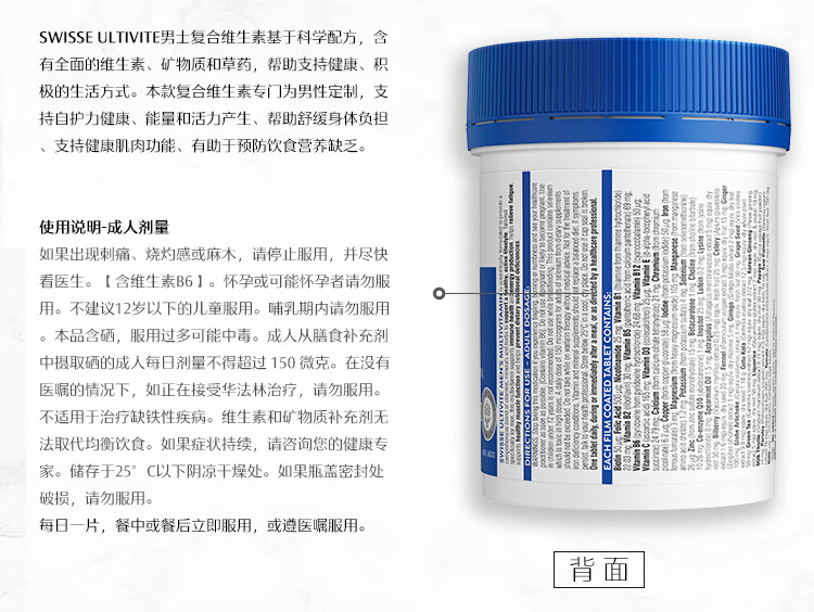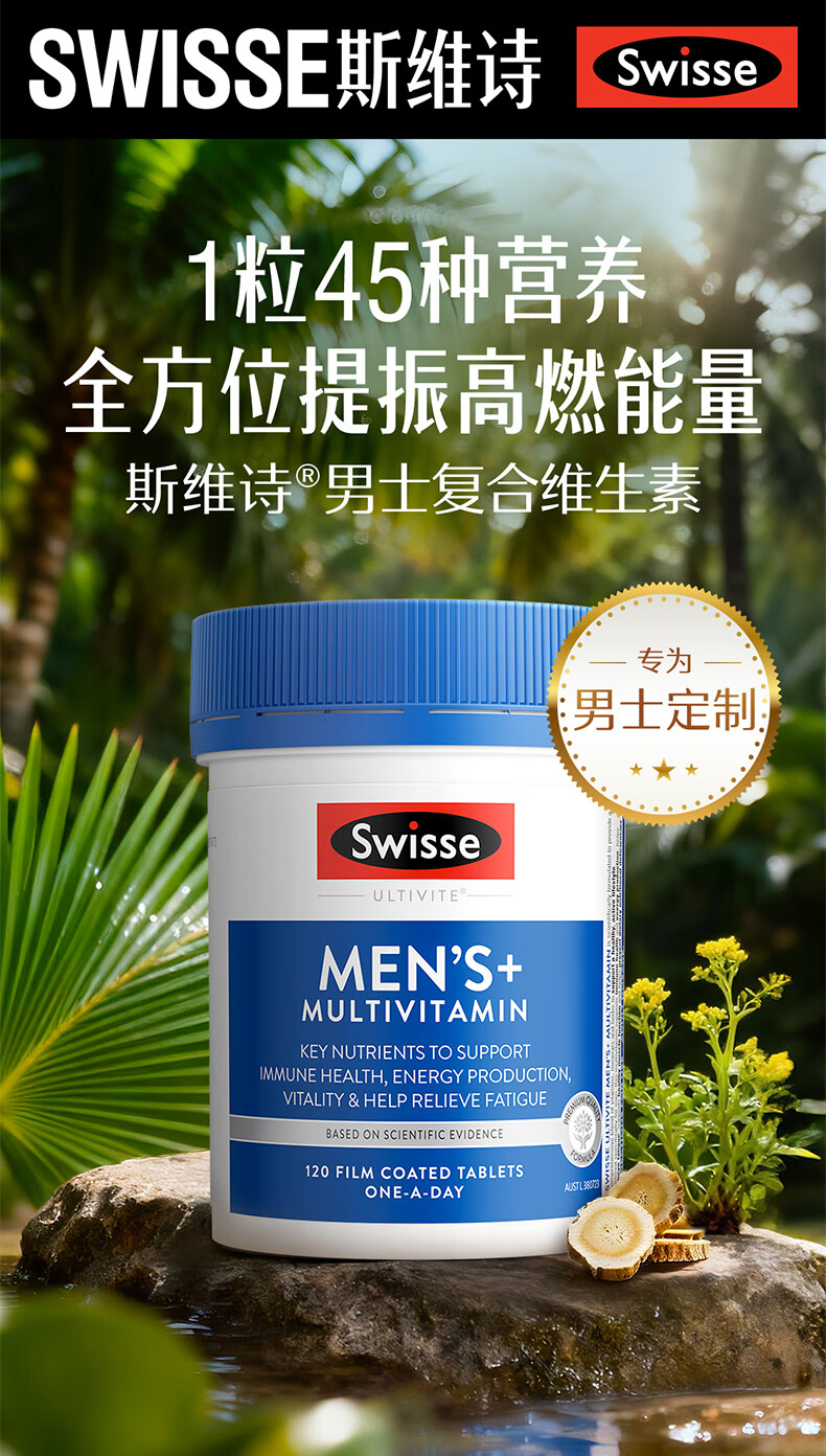 Swisse斯维诗 男士复合维生素 维B维C维E维D钙铁锌镁硒 营养包 120片/瓶