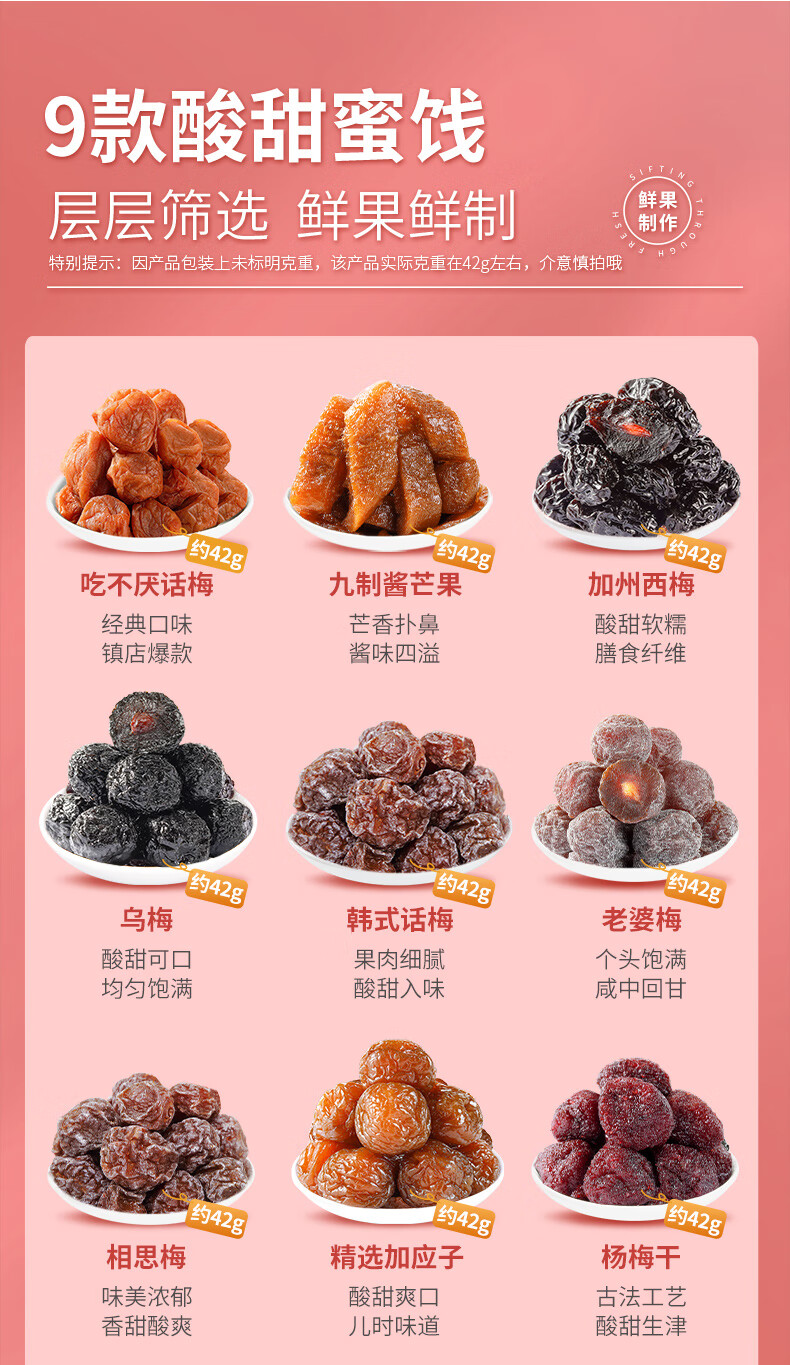 华味亨42g蜜饯梅子系列散装 蜜饯果脯果干酸甜梅子干零食小吃西梅干 42g杨梅干