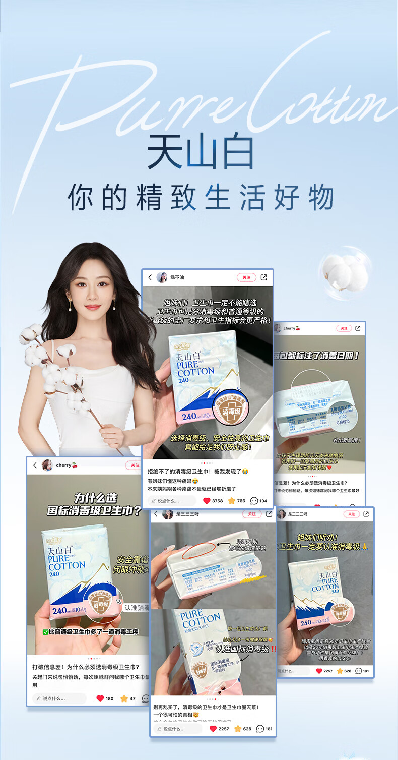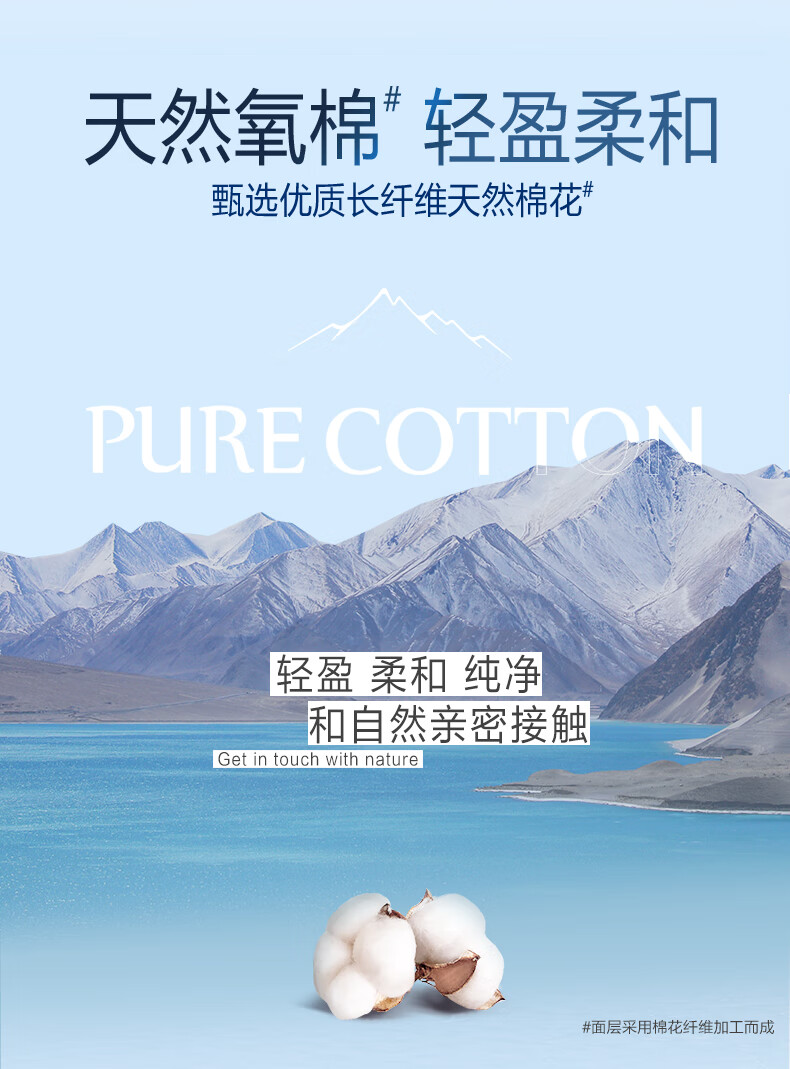 淘淘氧棉天山白纯棉消毒级日用卫生巾240mm8片京东自营