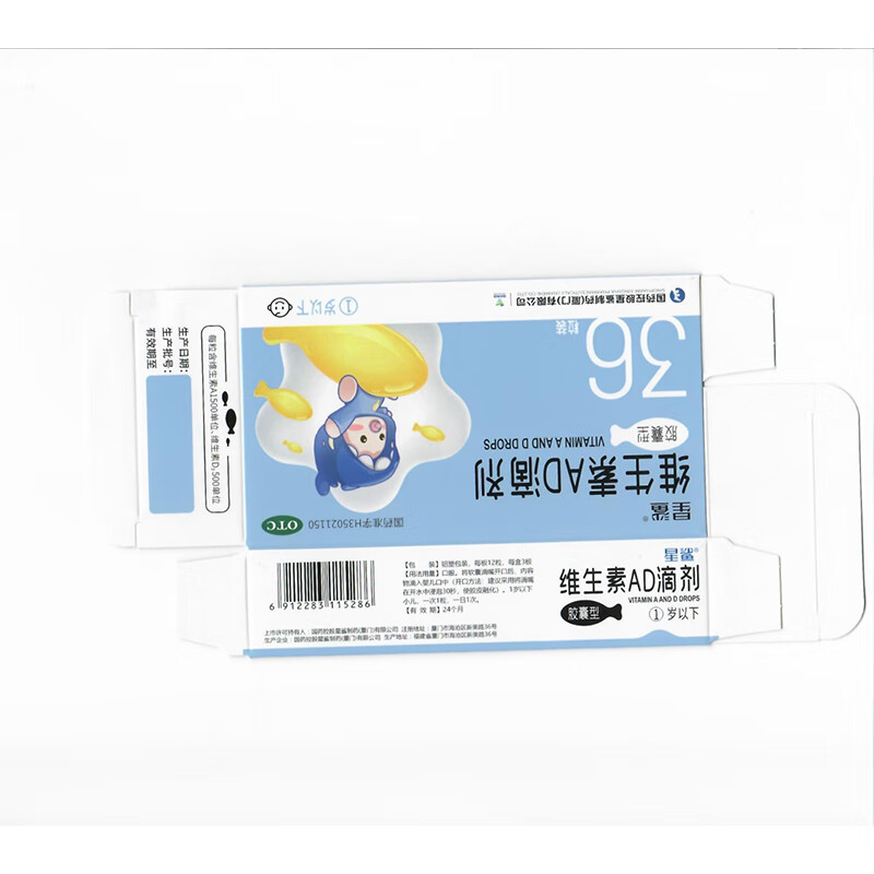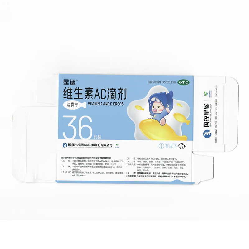 星鲨维生素AD滴剂(胶囊型)36粒ad滴剂0-1岁ad新生儿维生素ad婴幼儿 用于预防和治疗维生素A及D3缺乏症
