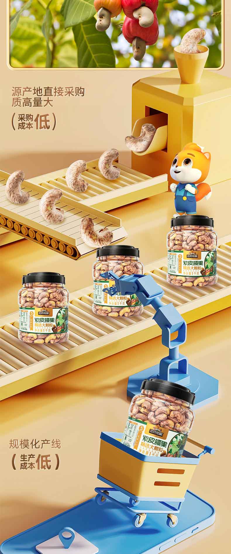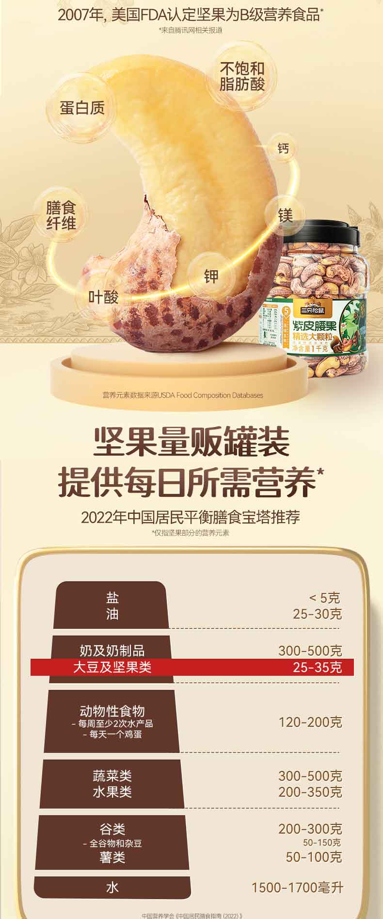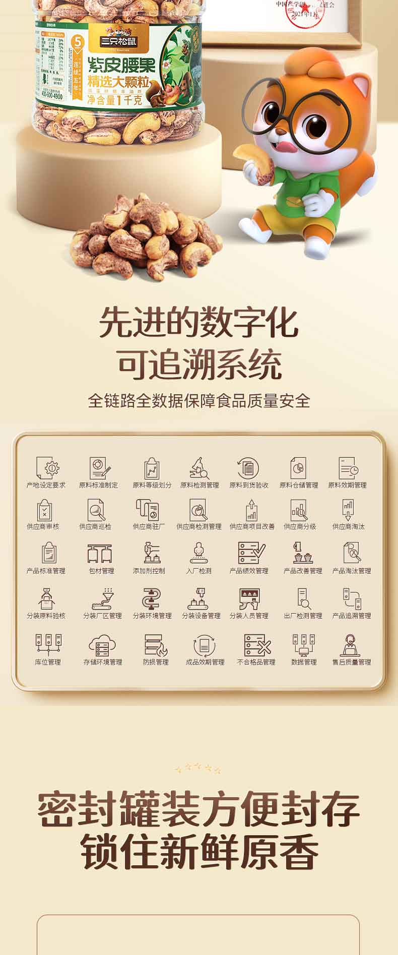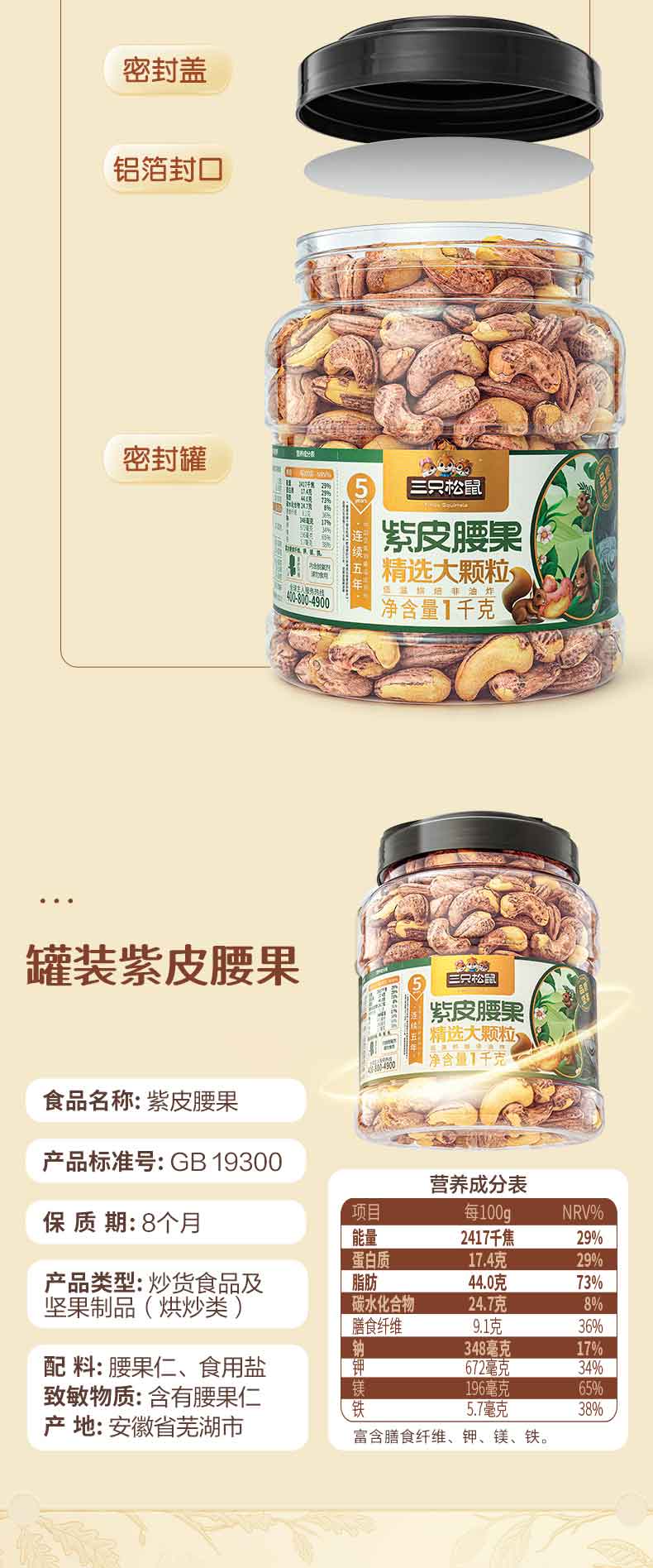 三只松鼠大颗粒紫皮腰果1000g 罐装坚果炒货干果腰果仁零食 团购送礼