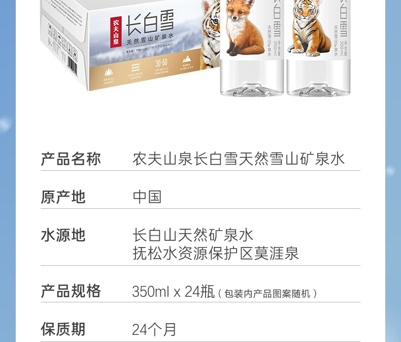 农夫山泉 长白山 天然矿泉水 饮用水长白雪350ml*24瓶 整箱