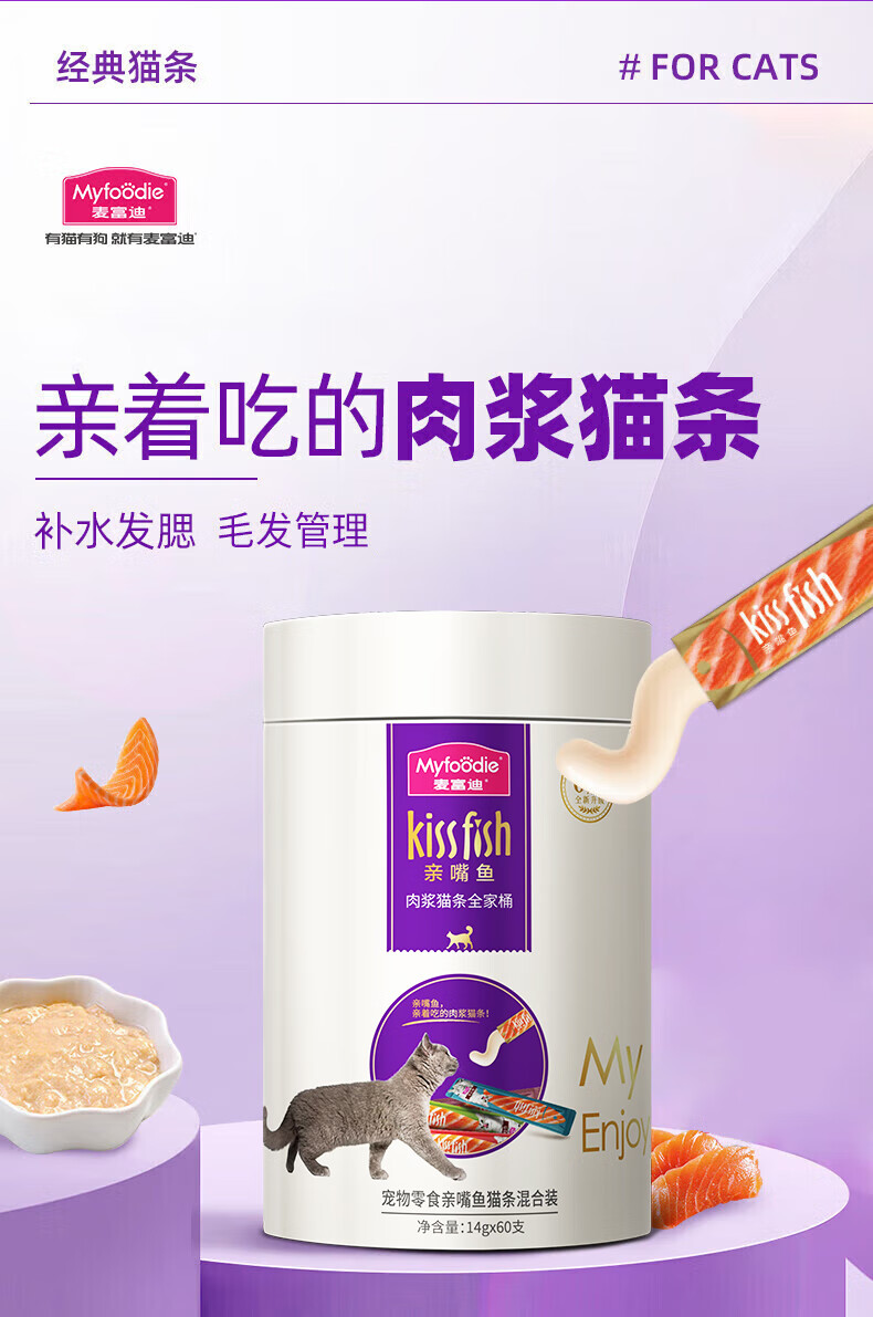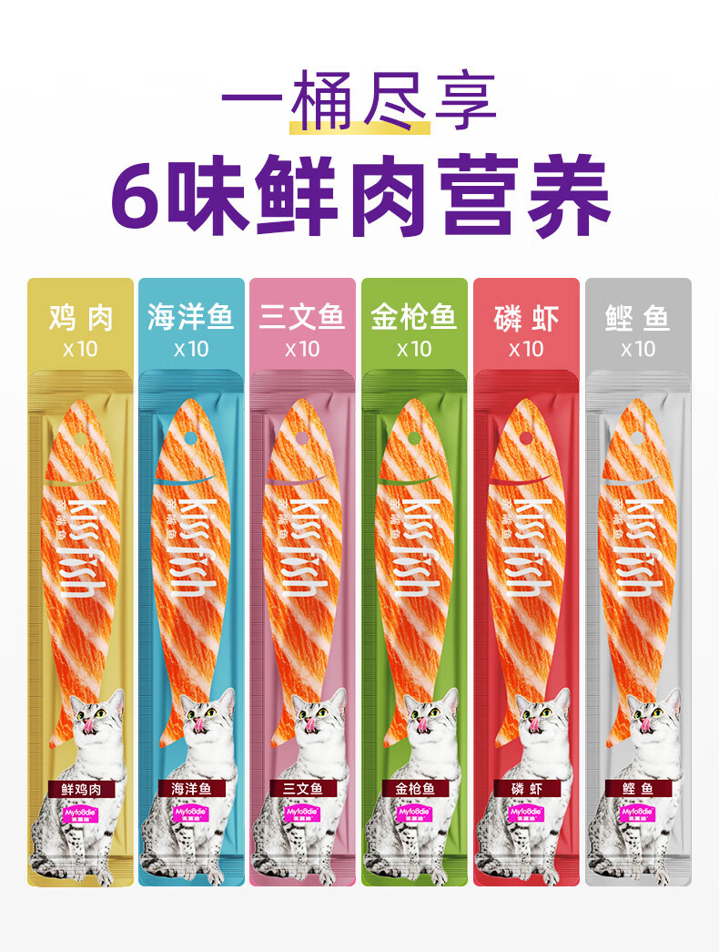 麦富迪猫条 猫咪零食亲嘴鱼猫条成幼猫补水发腮混合装14g*60支