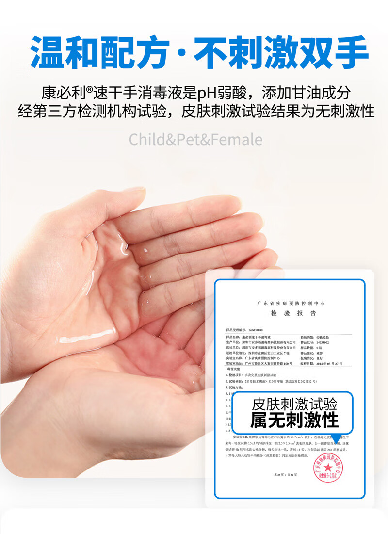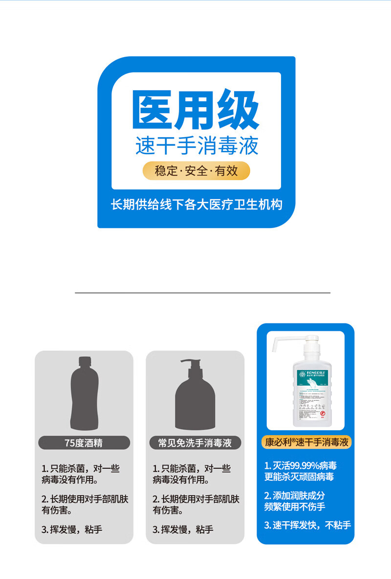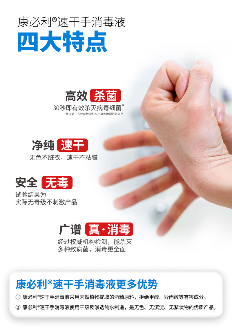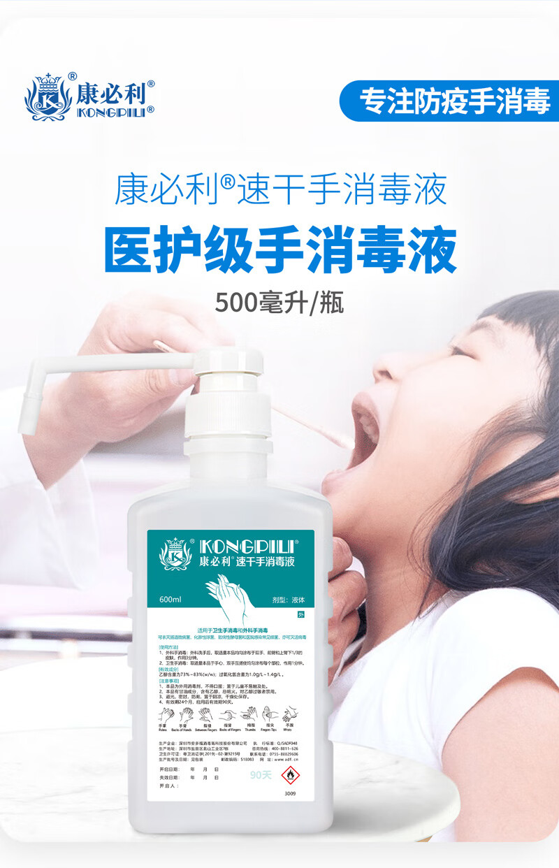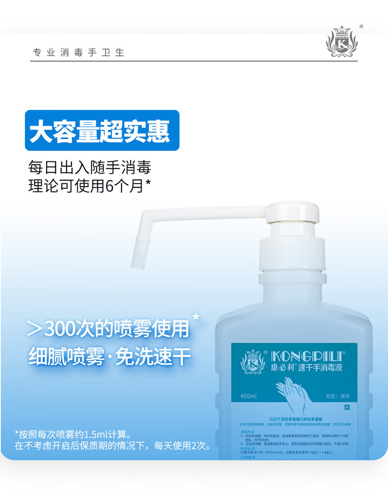 康必利速干免洗洗手液消毒液 75%酒精喷雾家用杀菌消毒速干消毒液猫狗 600ml*2瓶【速干手消毒液】