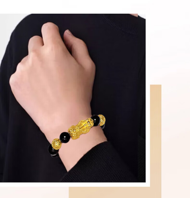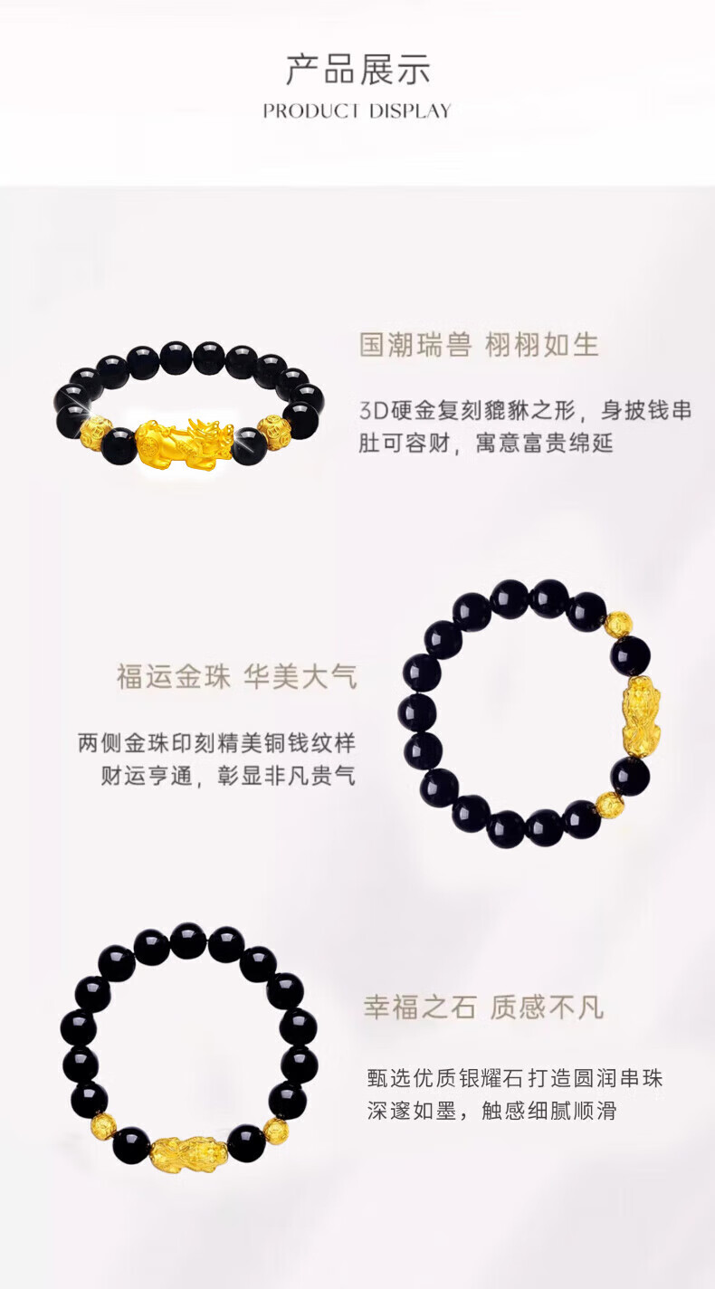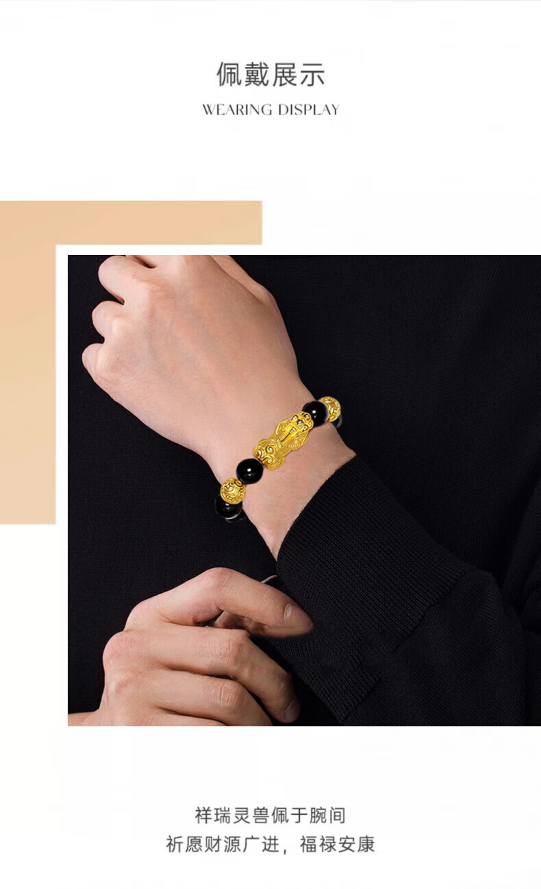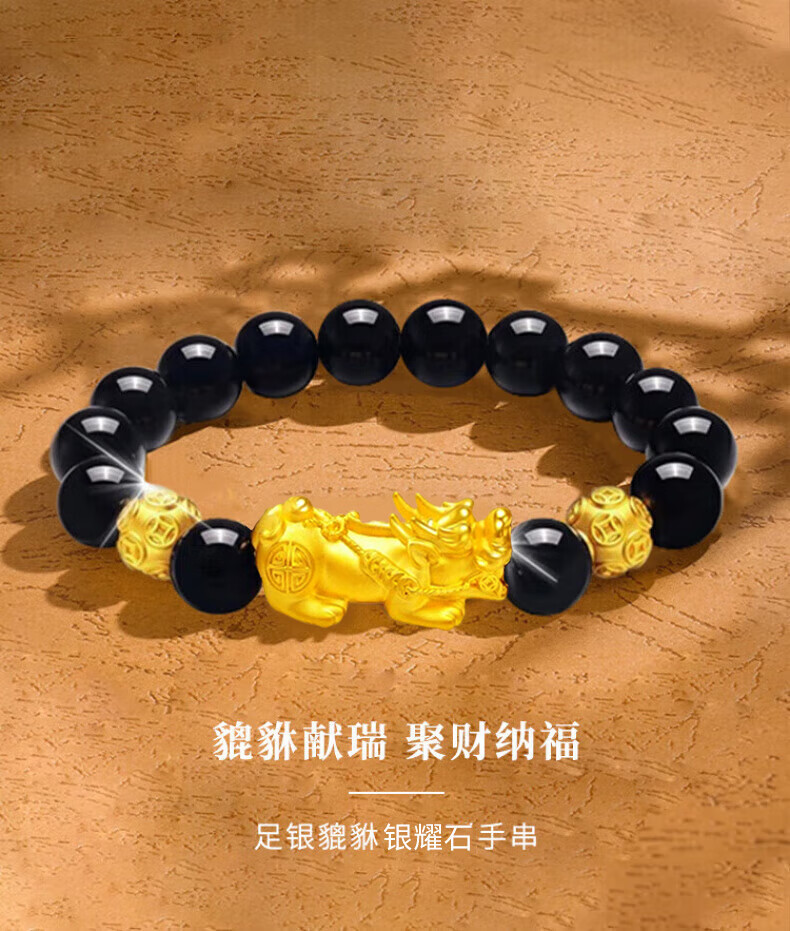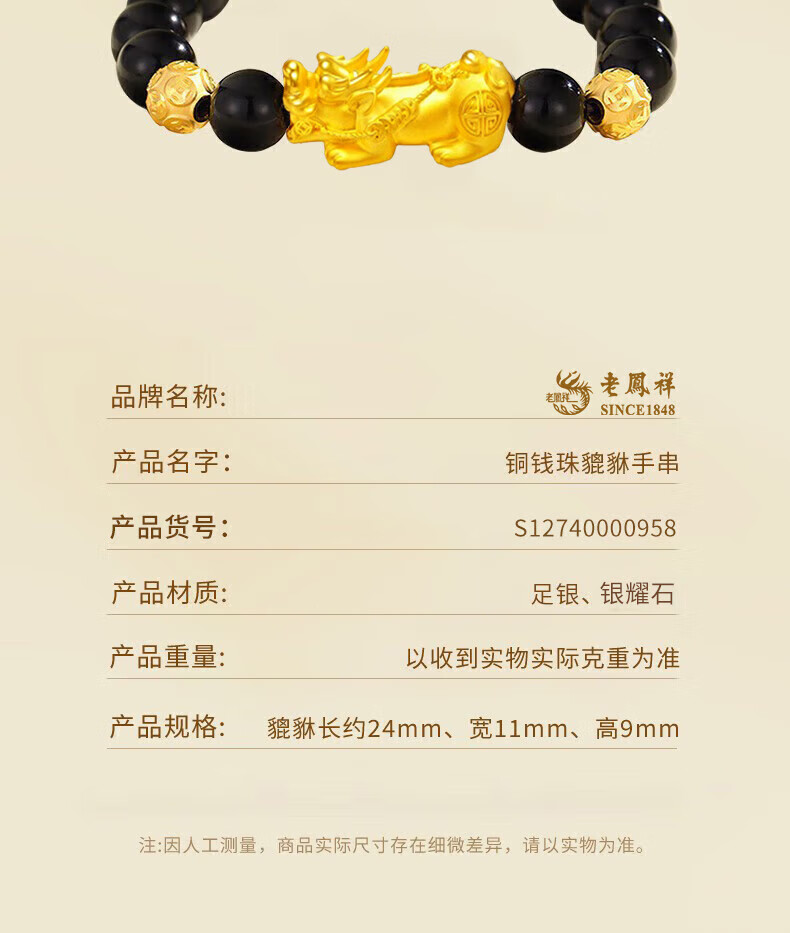老凤祥足银瑞兽貔貅手链男士本命年黑玛瑙手串时尚生情人节礼物送女朋友 今/次日达*A款*足银貔貅手串-约10MM【品牌礼盒】