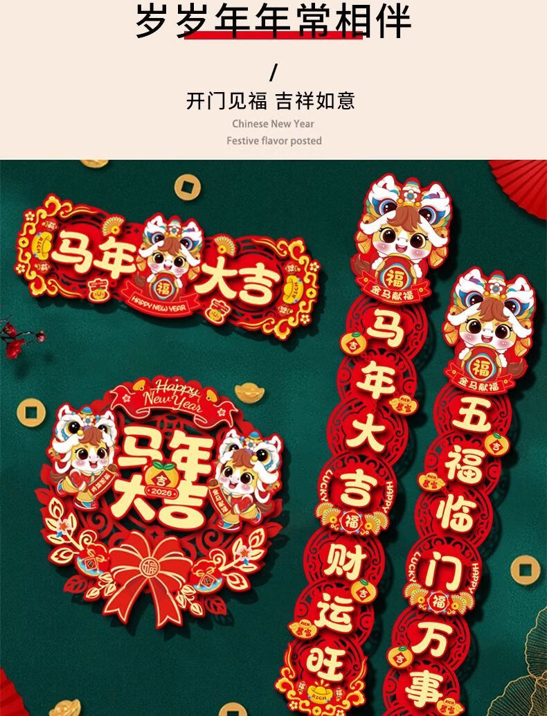 小红书同款2026新款马年AA 套装(五福临门+金马送福) 新年对联
