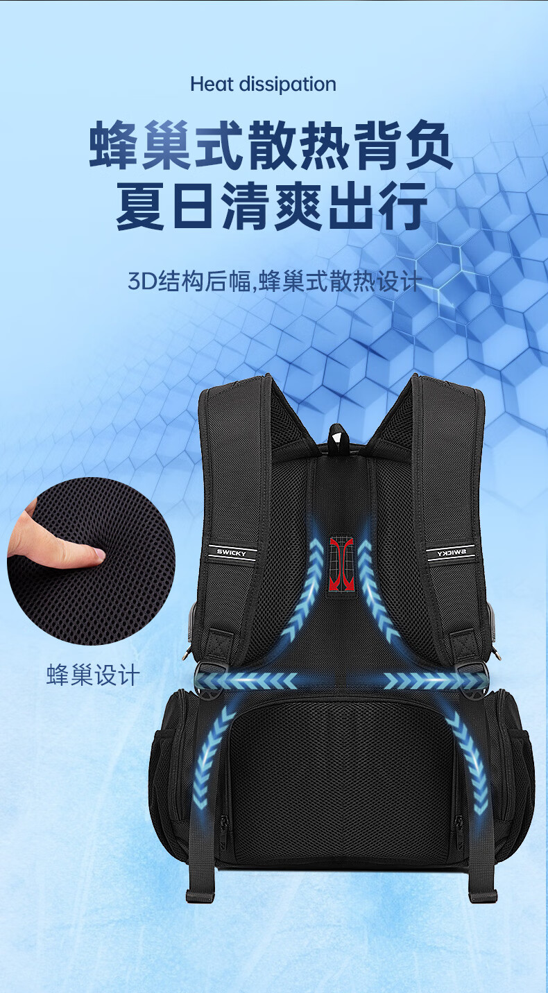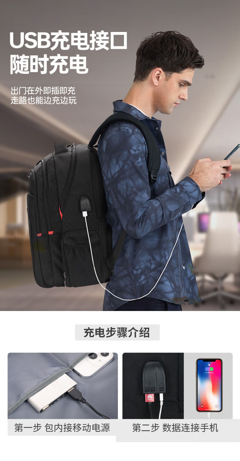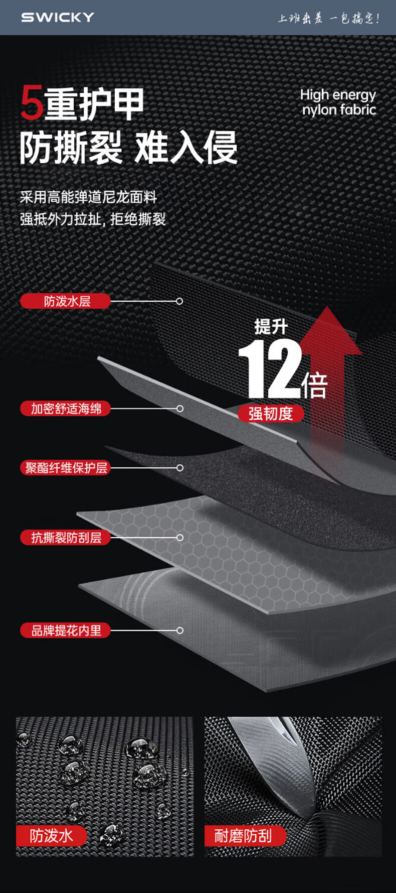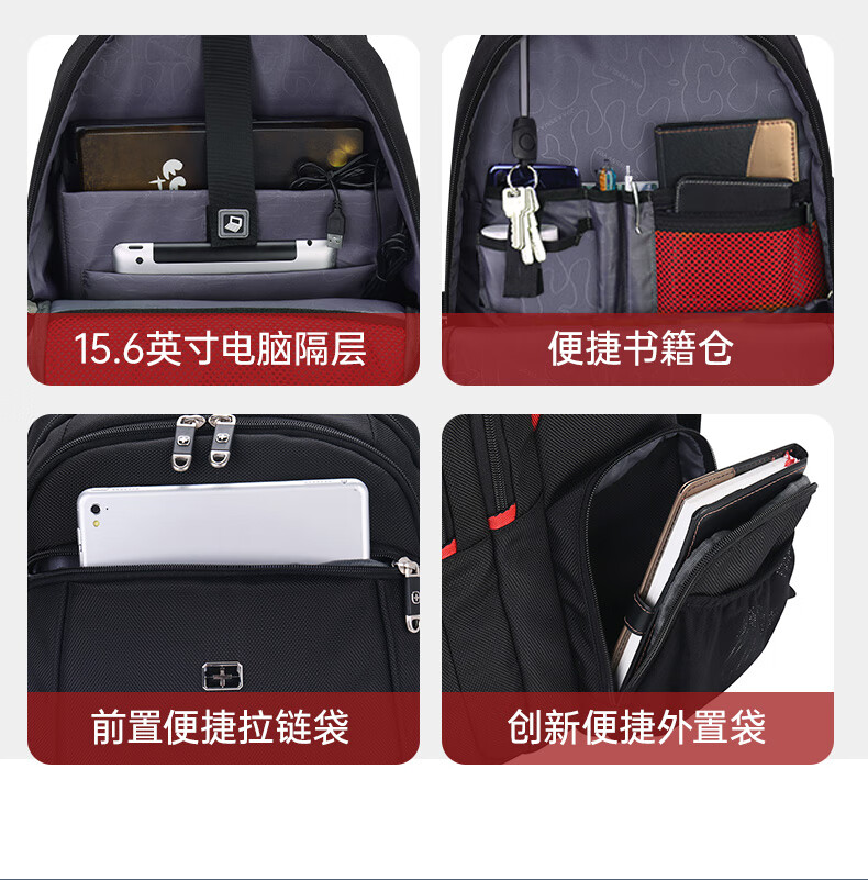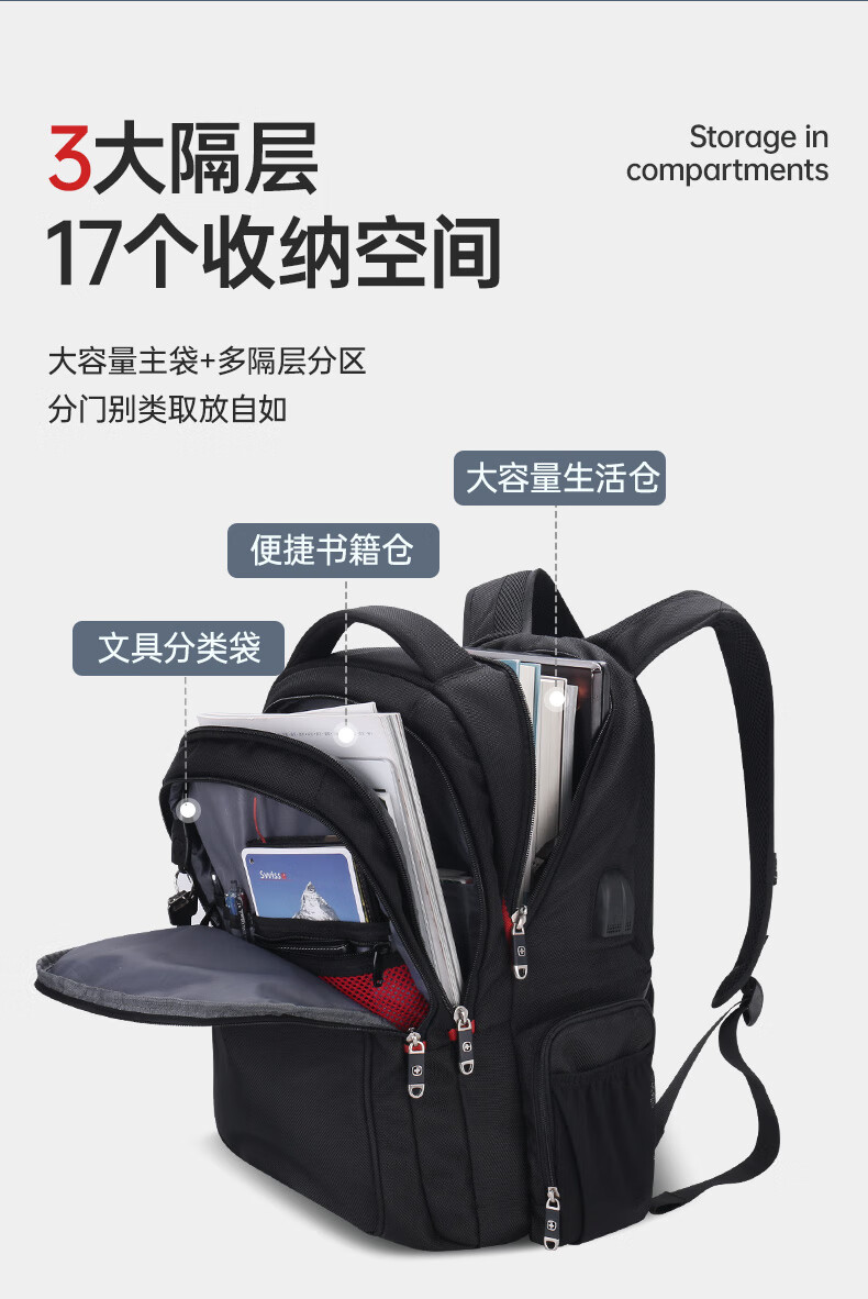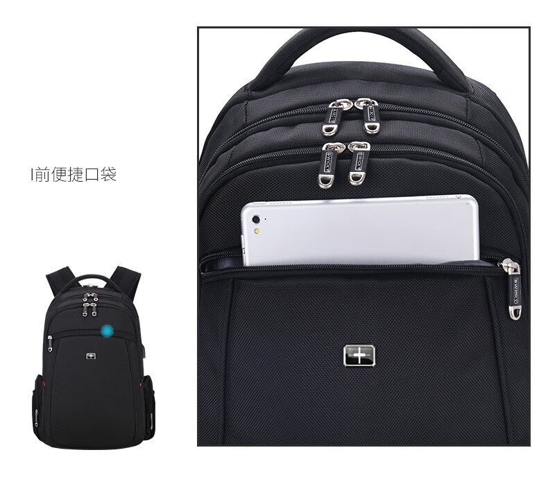 SWICKY瑞士男士背包旅游双肩包商务旅行出差笔记本电脑背包大容量双肩包 黑色【40L加厚设计】