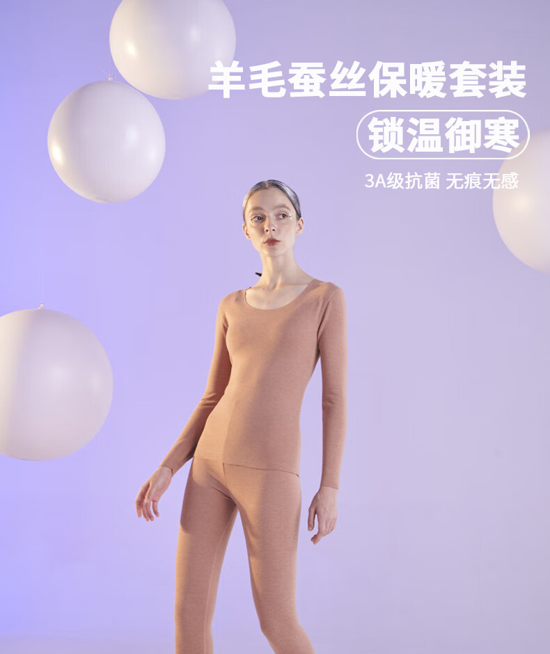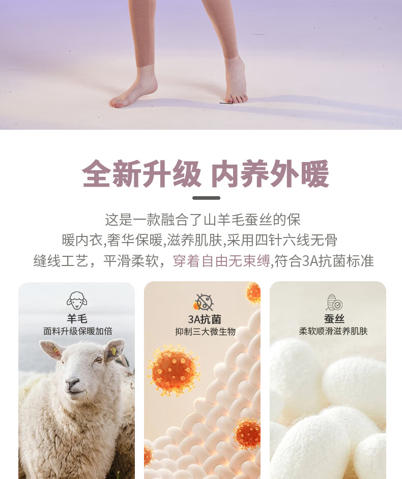 都市丽人女士秋衣秋裤套装保暖内衣女生保暖裤保暖衣纯棉秋衣秋裤女士套装 羊毛蚕丝女士秋衣秋裤套装-肤色 2XL ( 建议120-140斤)