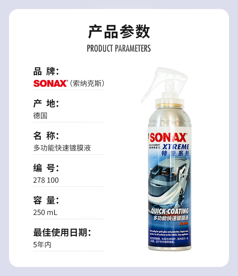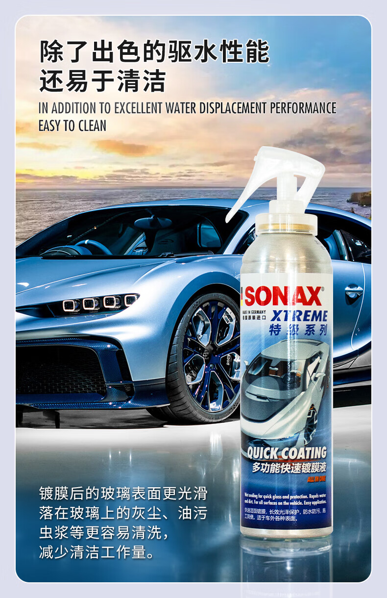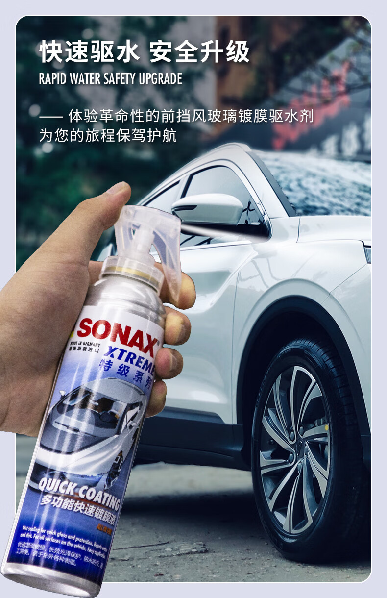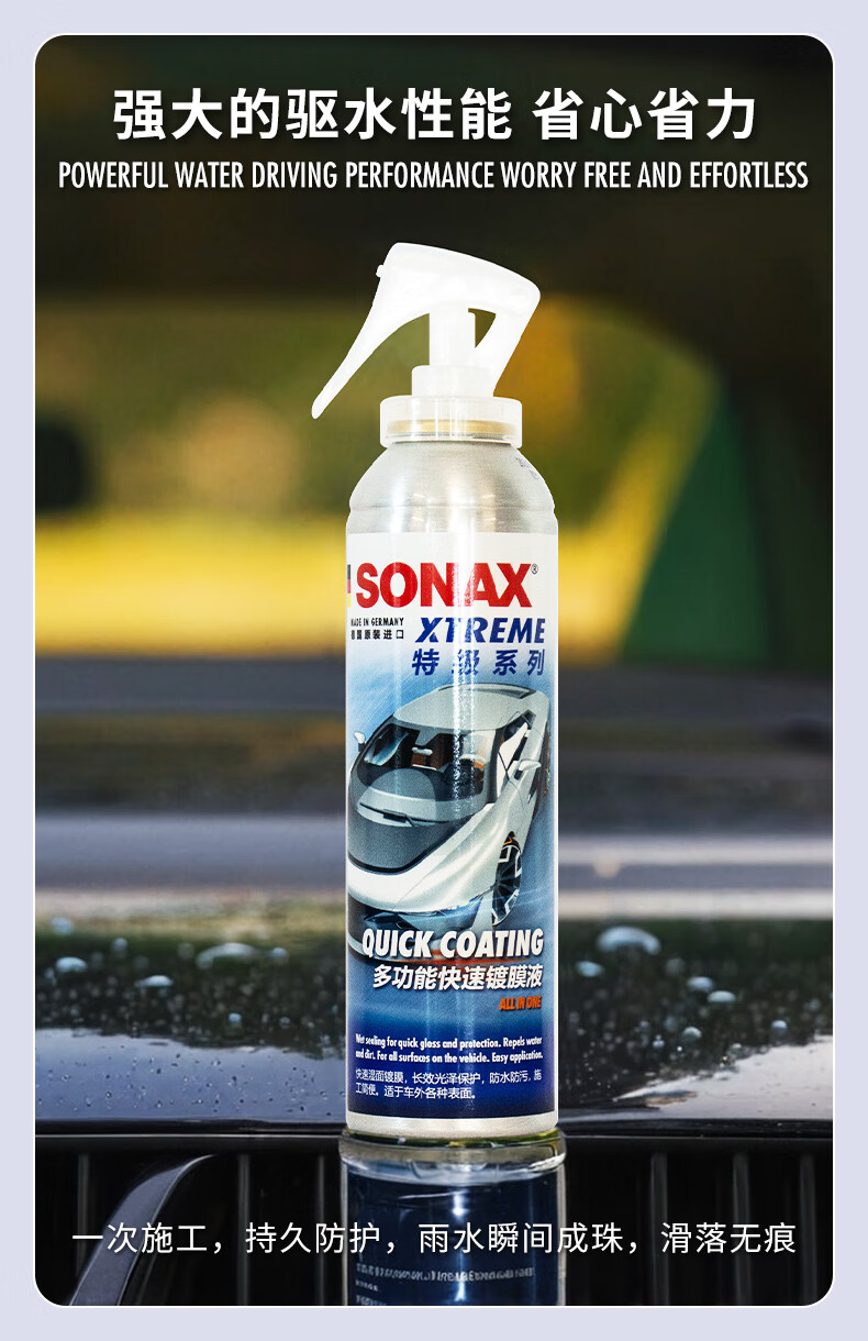 索纳克斯(SONAX)德国进口前挡玻璃镀膜驱水剂玻璃雨敌镀膜型防雨剂超疏水清晰视野 【除油膜】镀膜驱水+油膜去除剂