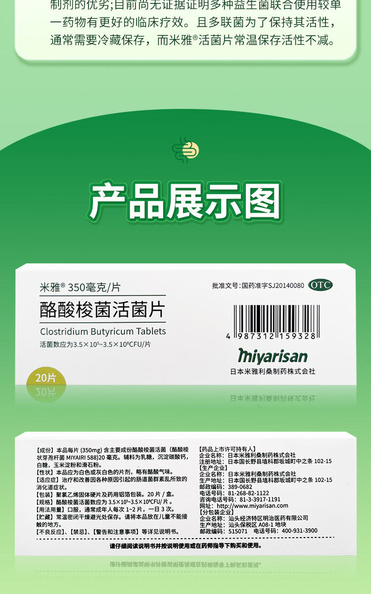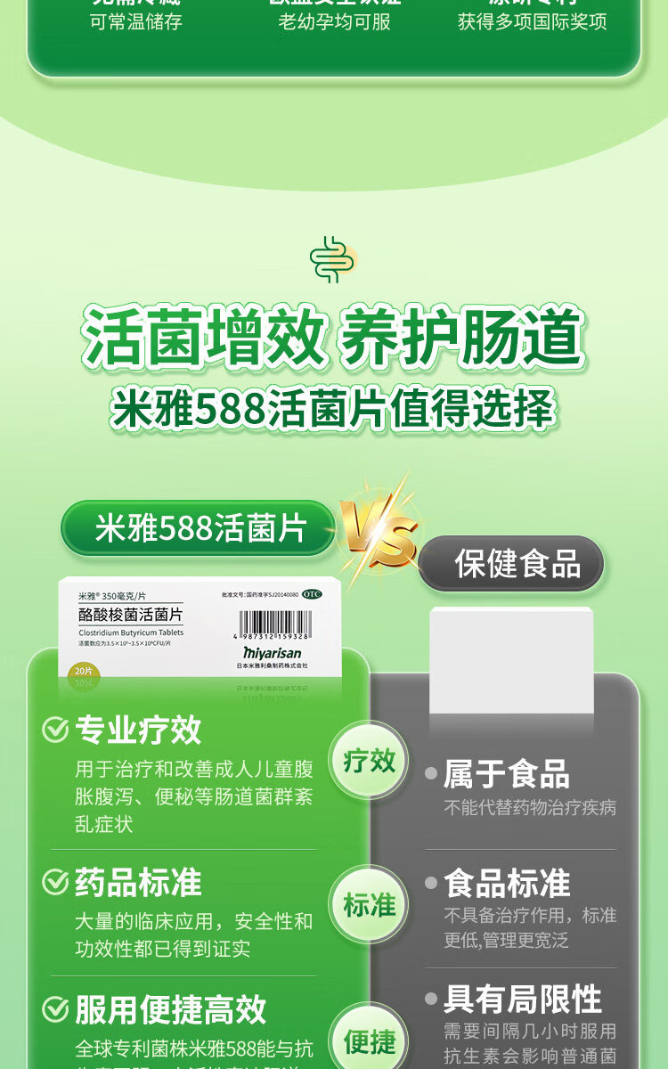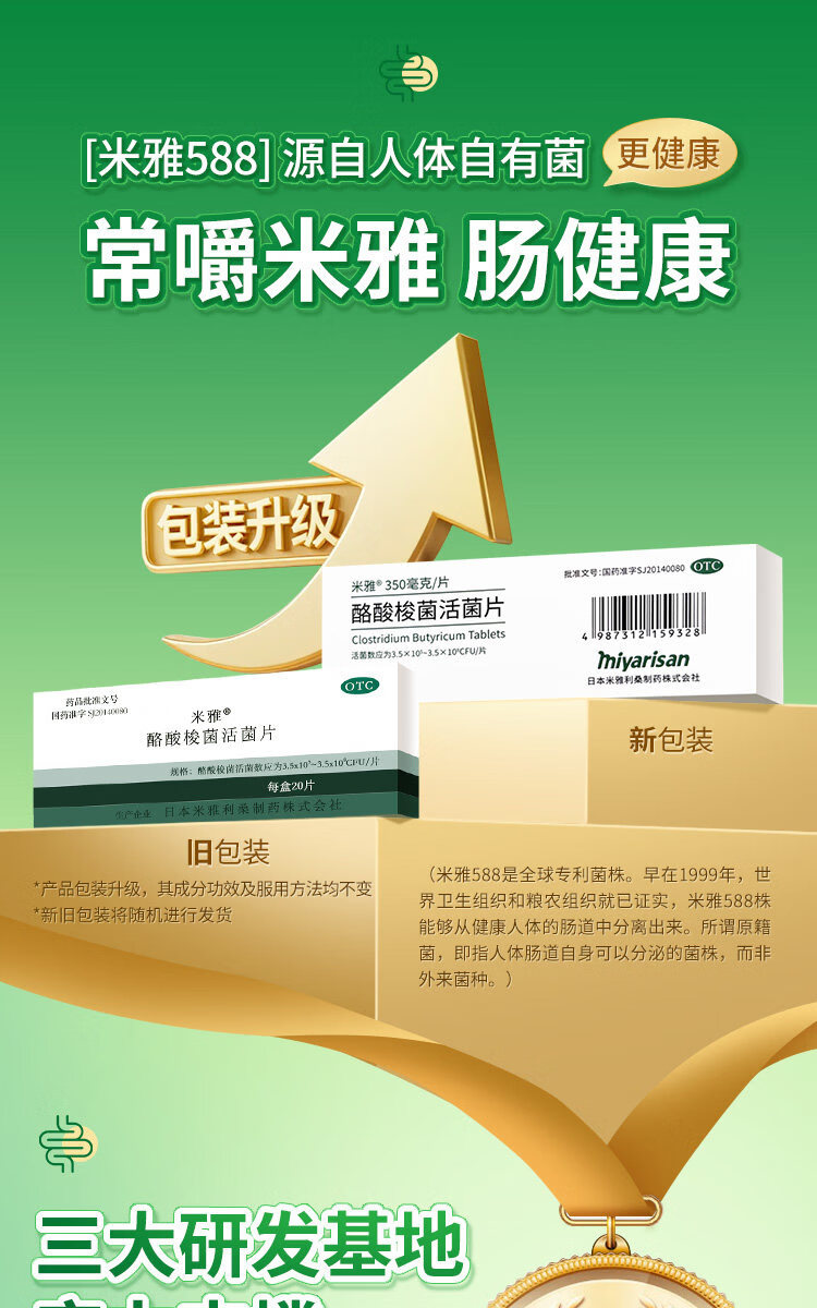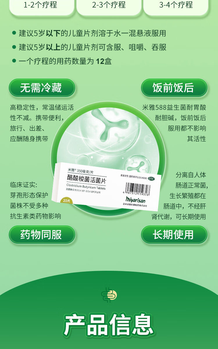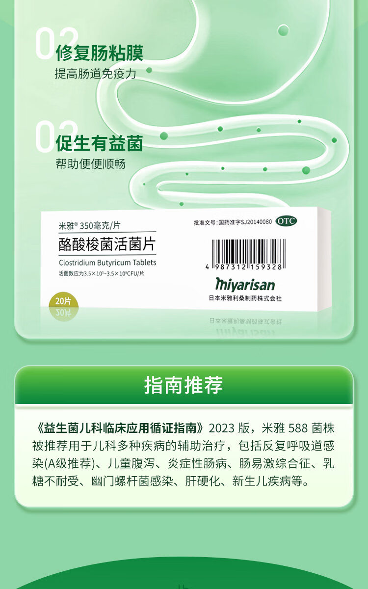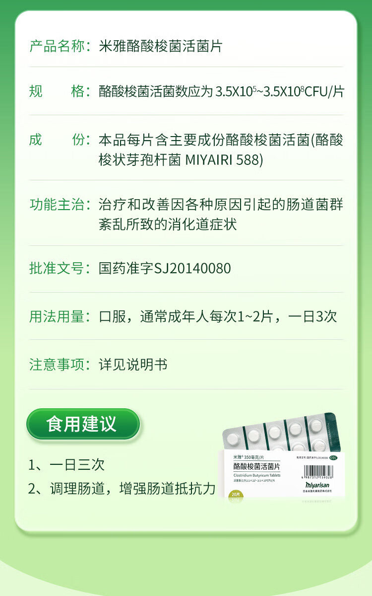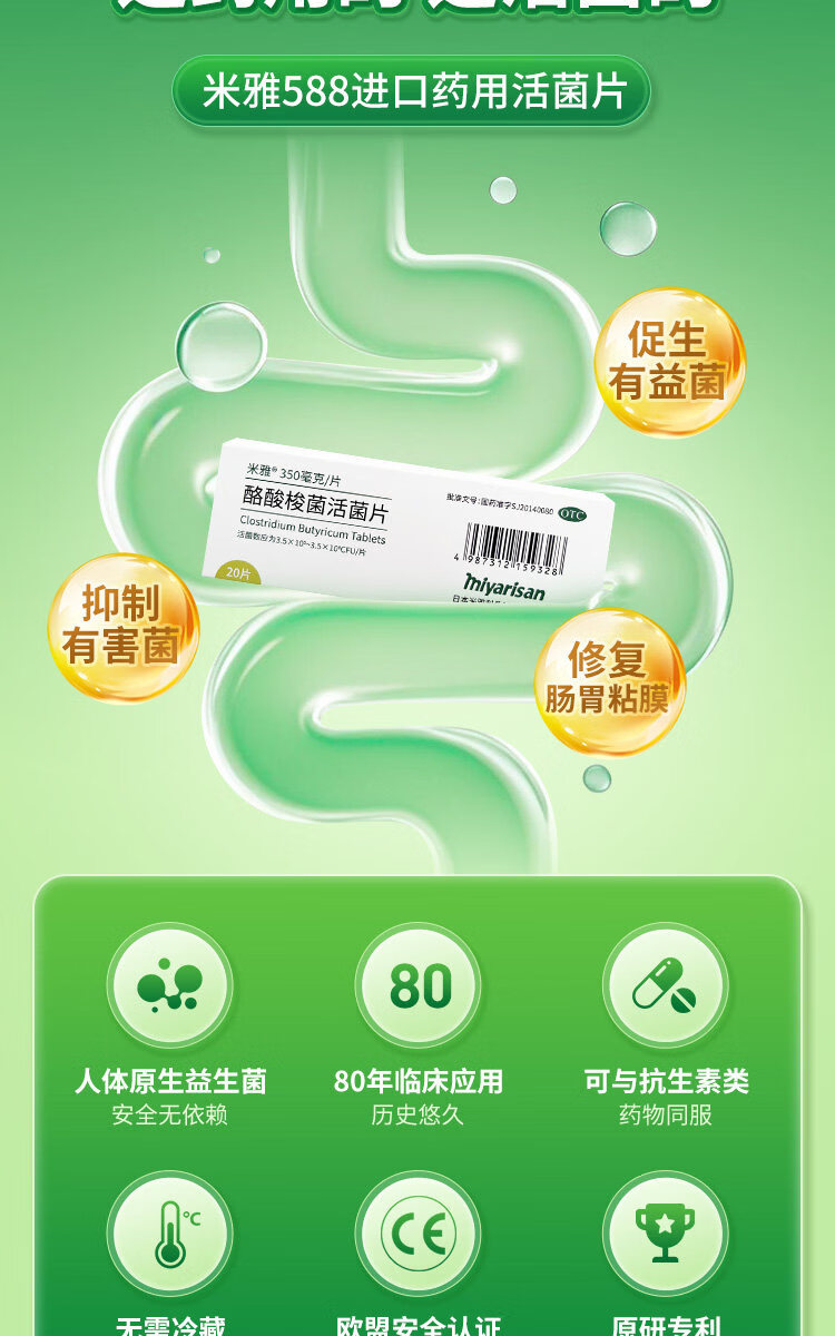 [米雅]酪酸梭菌活菌片 30片 3盒装 原研进口益生菌胃药益生菌儿童成人便秘腹泻调理肠胃肠道消化不良非胶囊 咨询客服下单立减14%