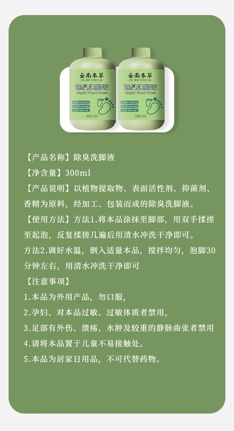 洗脚液(除臭型)适用脚气痒汗臭酸干脱皮 泡搓脚去异味 300ml装