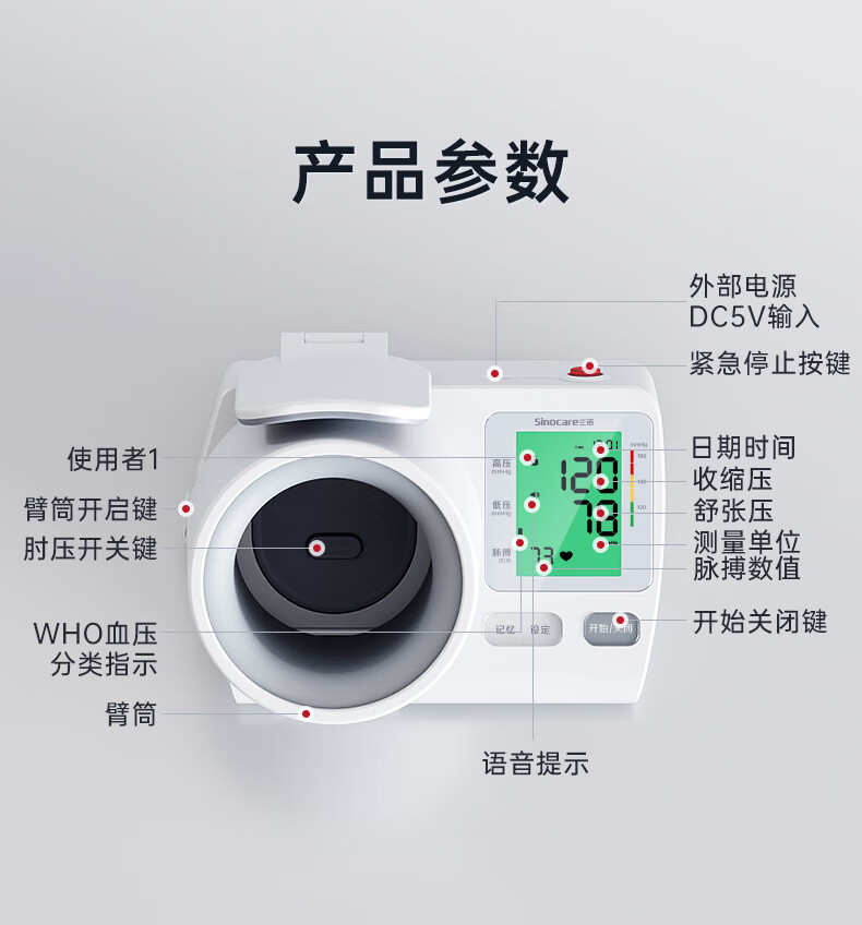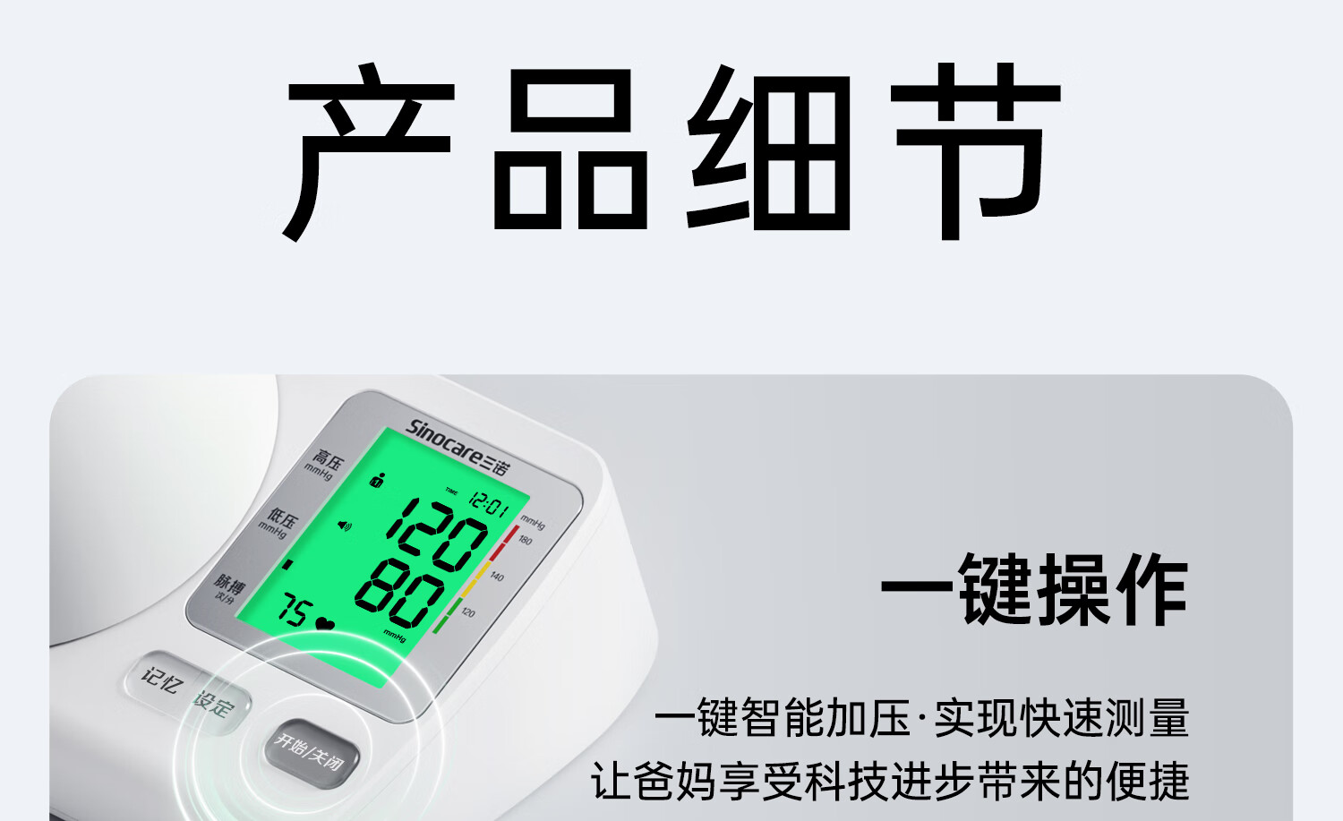 三诺电子血压仪家用臂筒式血压计老人血压测量仪医用高精准语音款年货