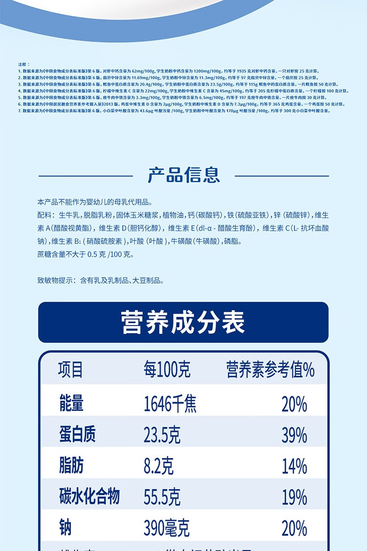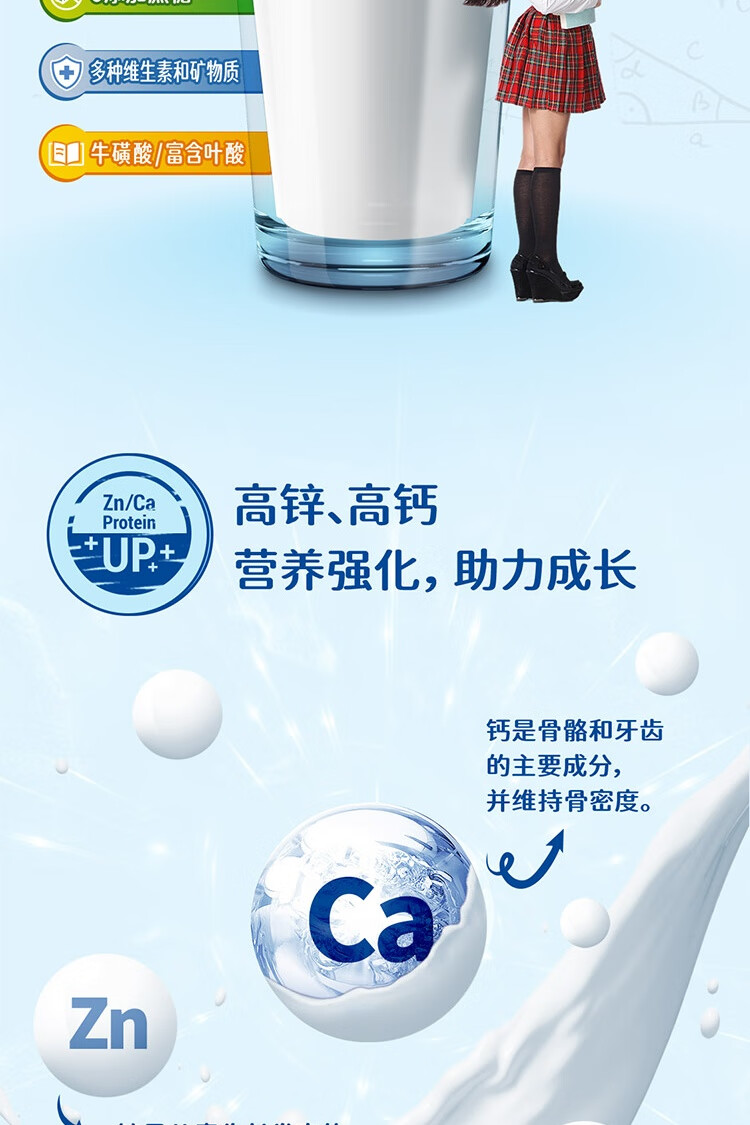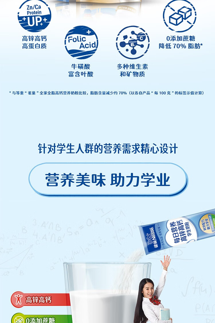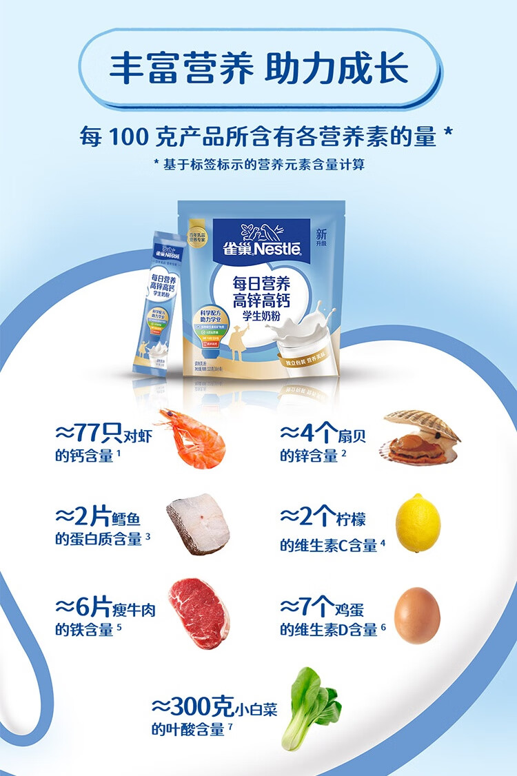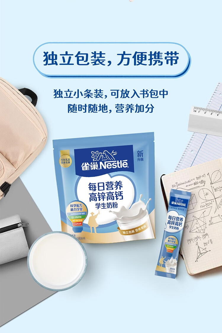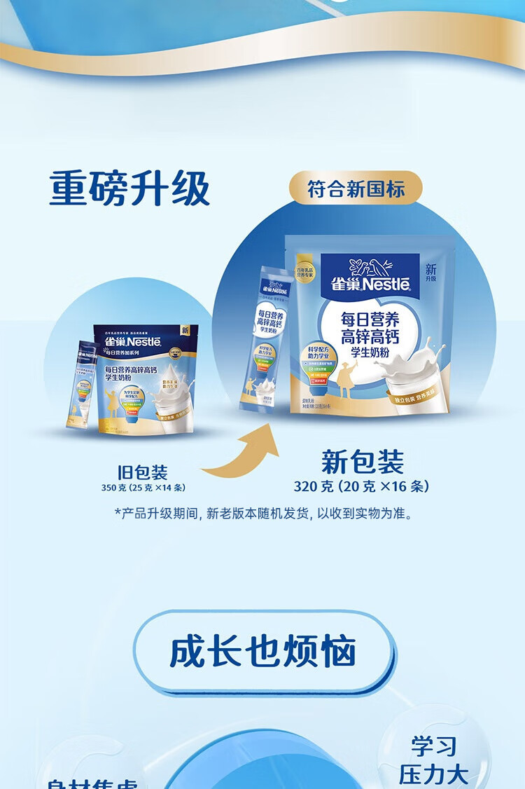 雀巢(Nestle)每日营养学生奶粉高锌高钙320g青少年早餐营养奶粉独立包装