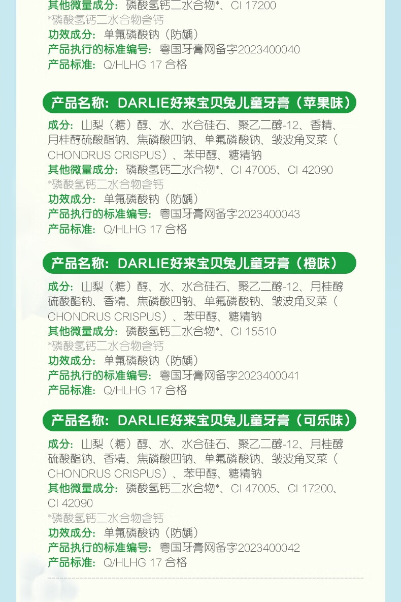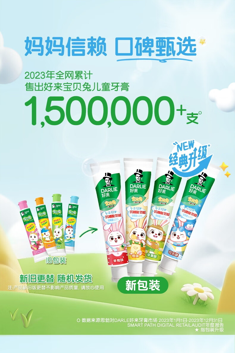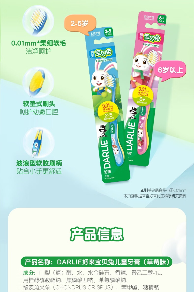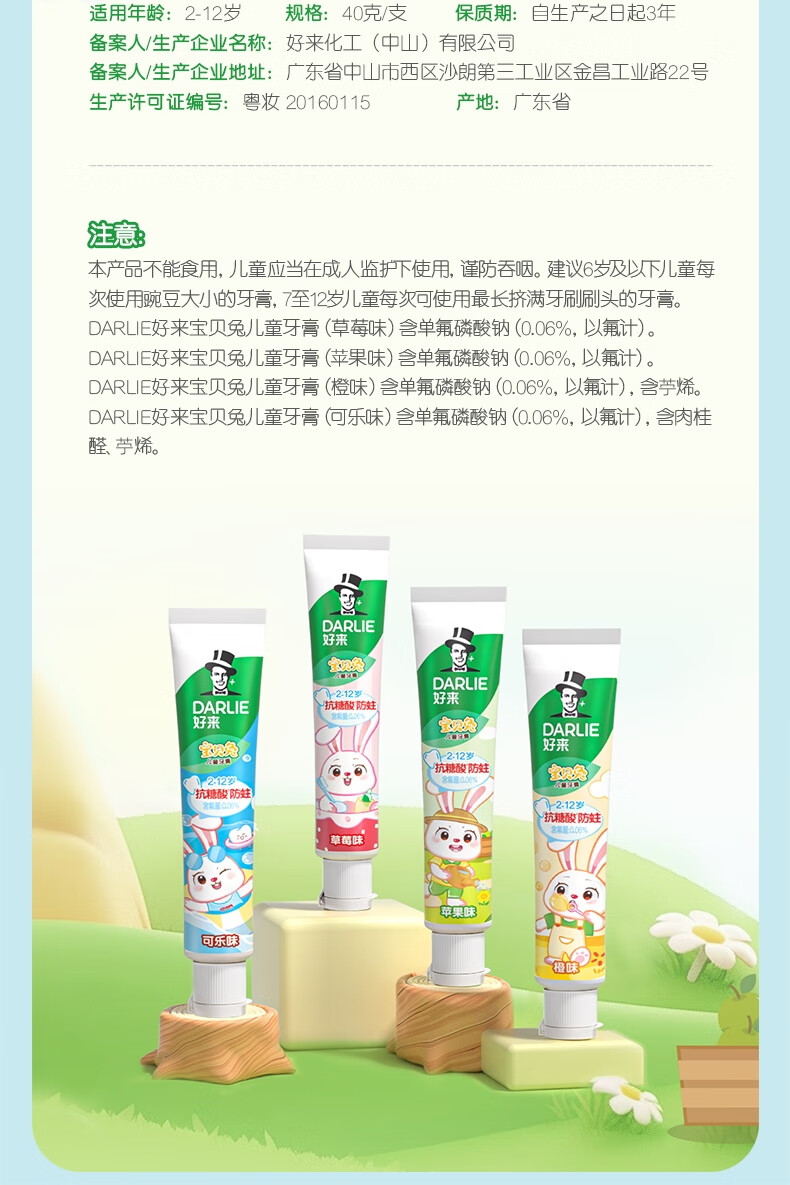DARLIE好来(原黑人)宝贝兔儿童牙膏2-3-6-12岁橙味40g 含氟防蛀抗糖酸