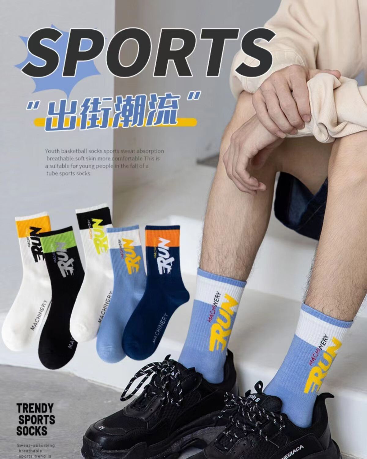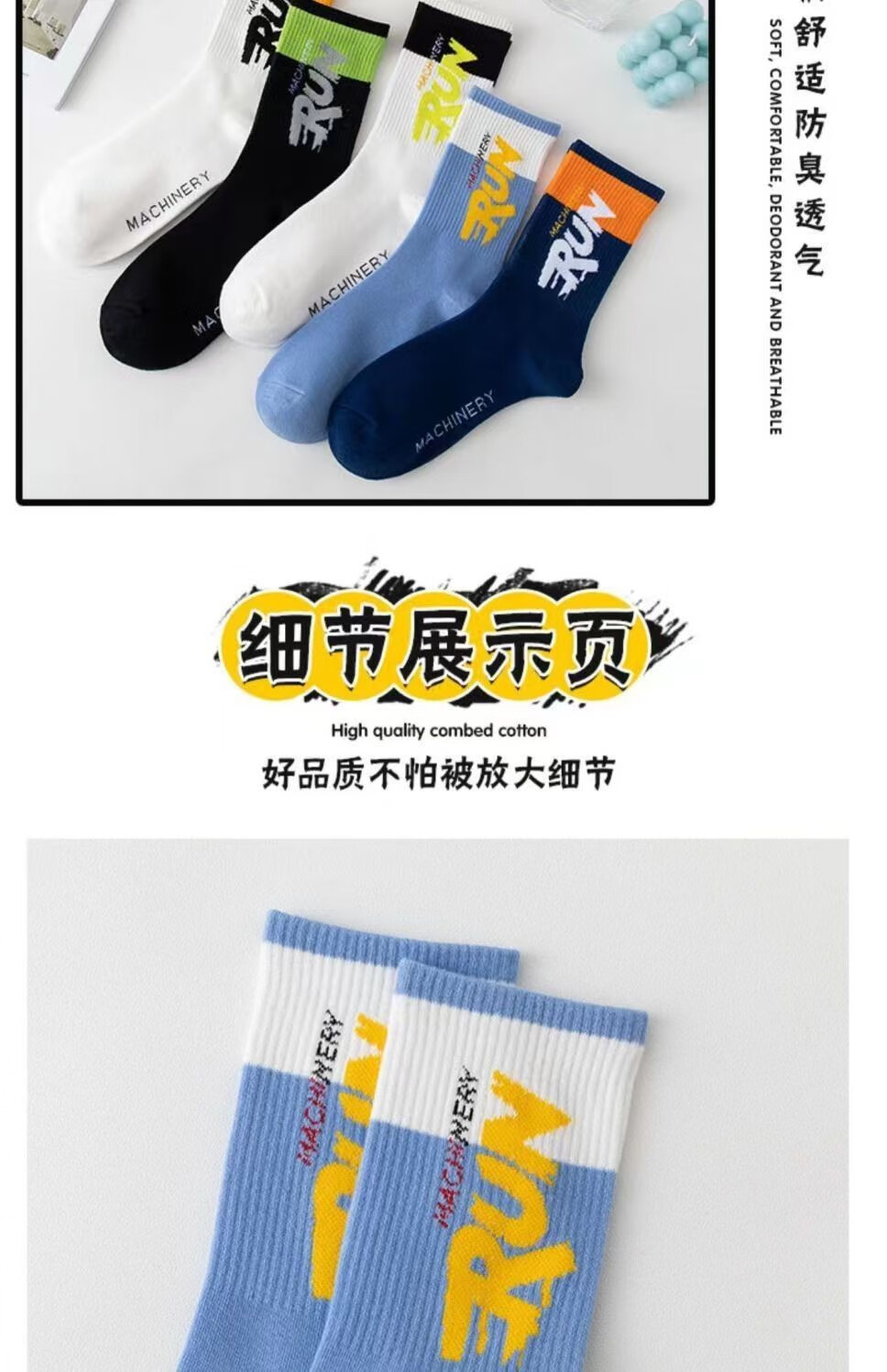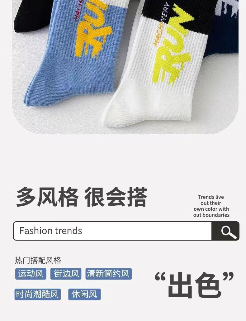 RUN篮球袜运动袜男款中筒春夏季透气吸汗青少年学生训练跑步袜子 【1双装】颜色随机发 均码